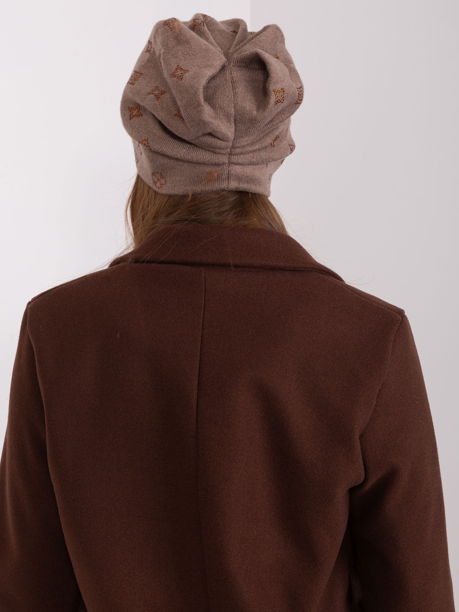 Brązowa damska czapka zimowa z dżetami .
