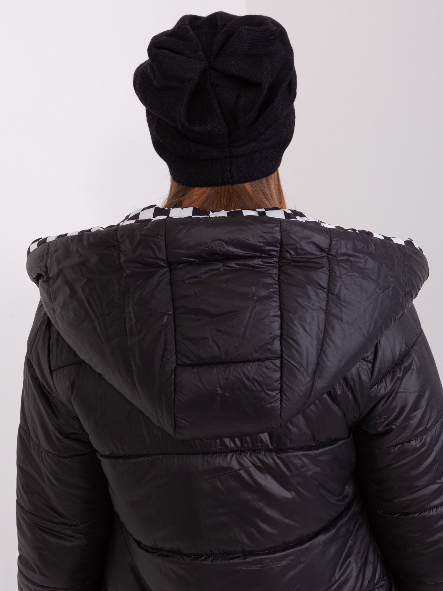 Czarna damska czapka dzianinowa.