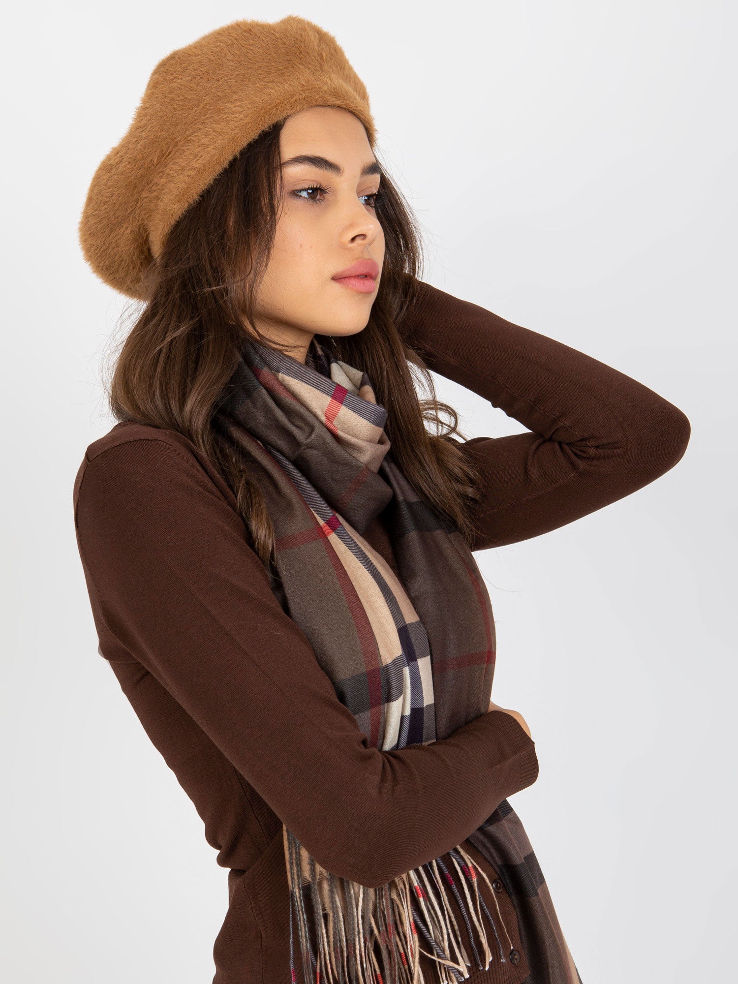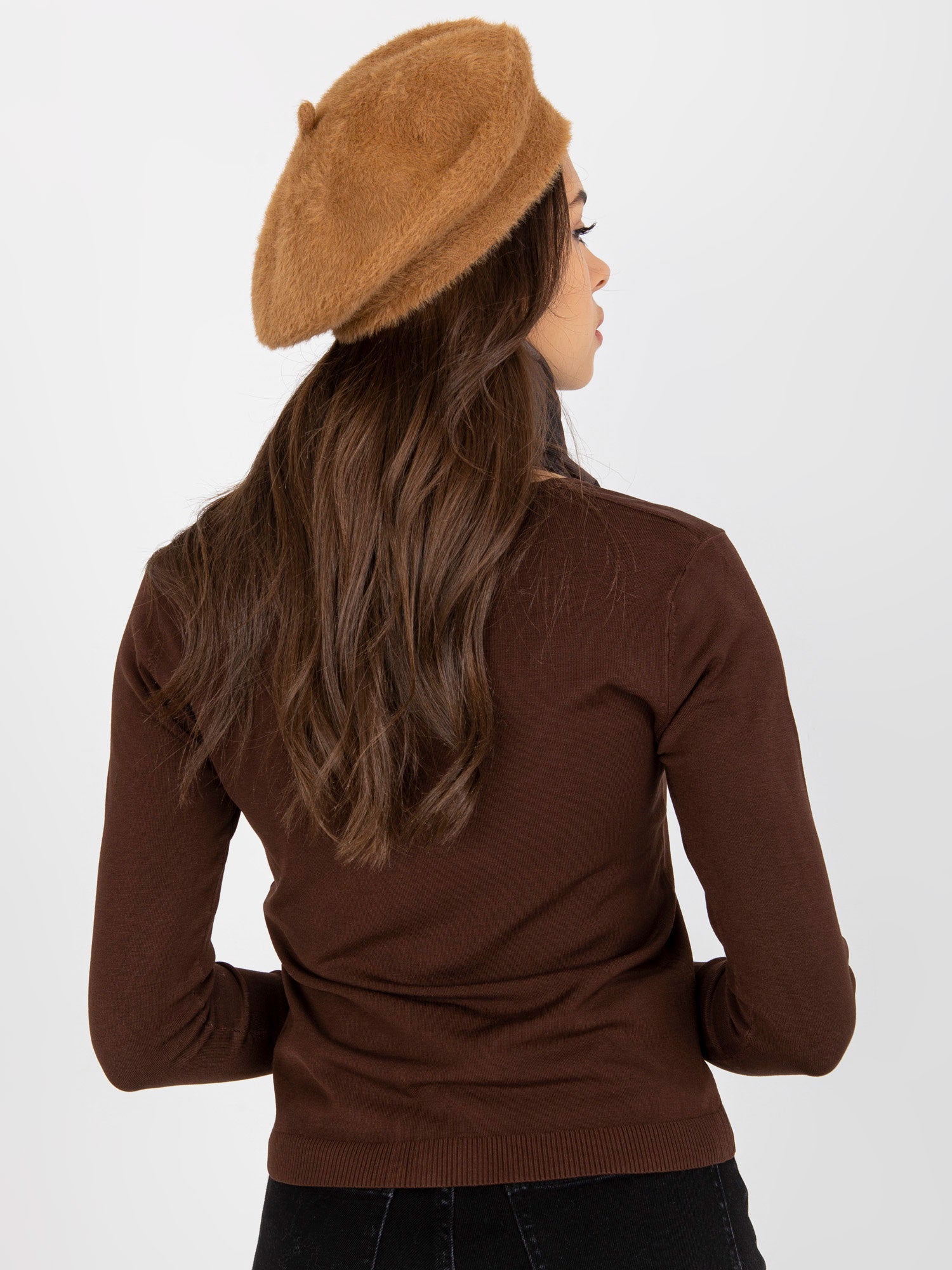 Camelowa damska czapka zimowa beret .