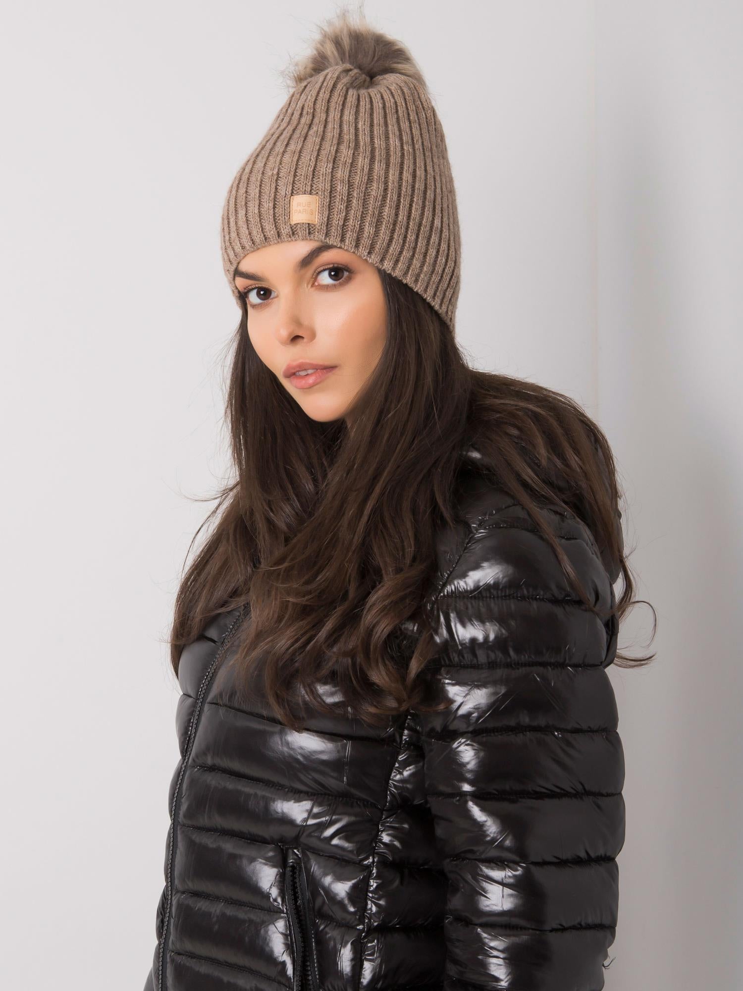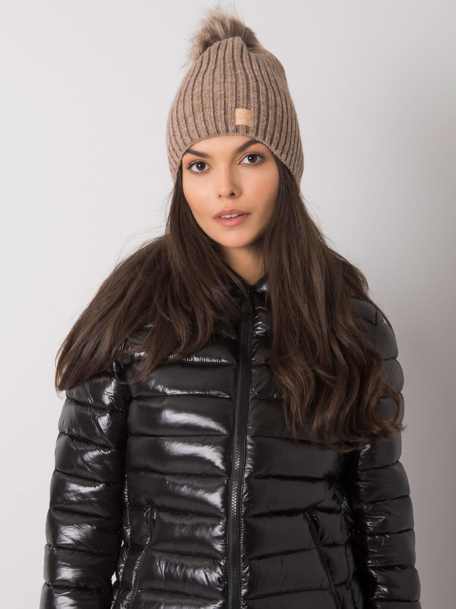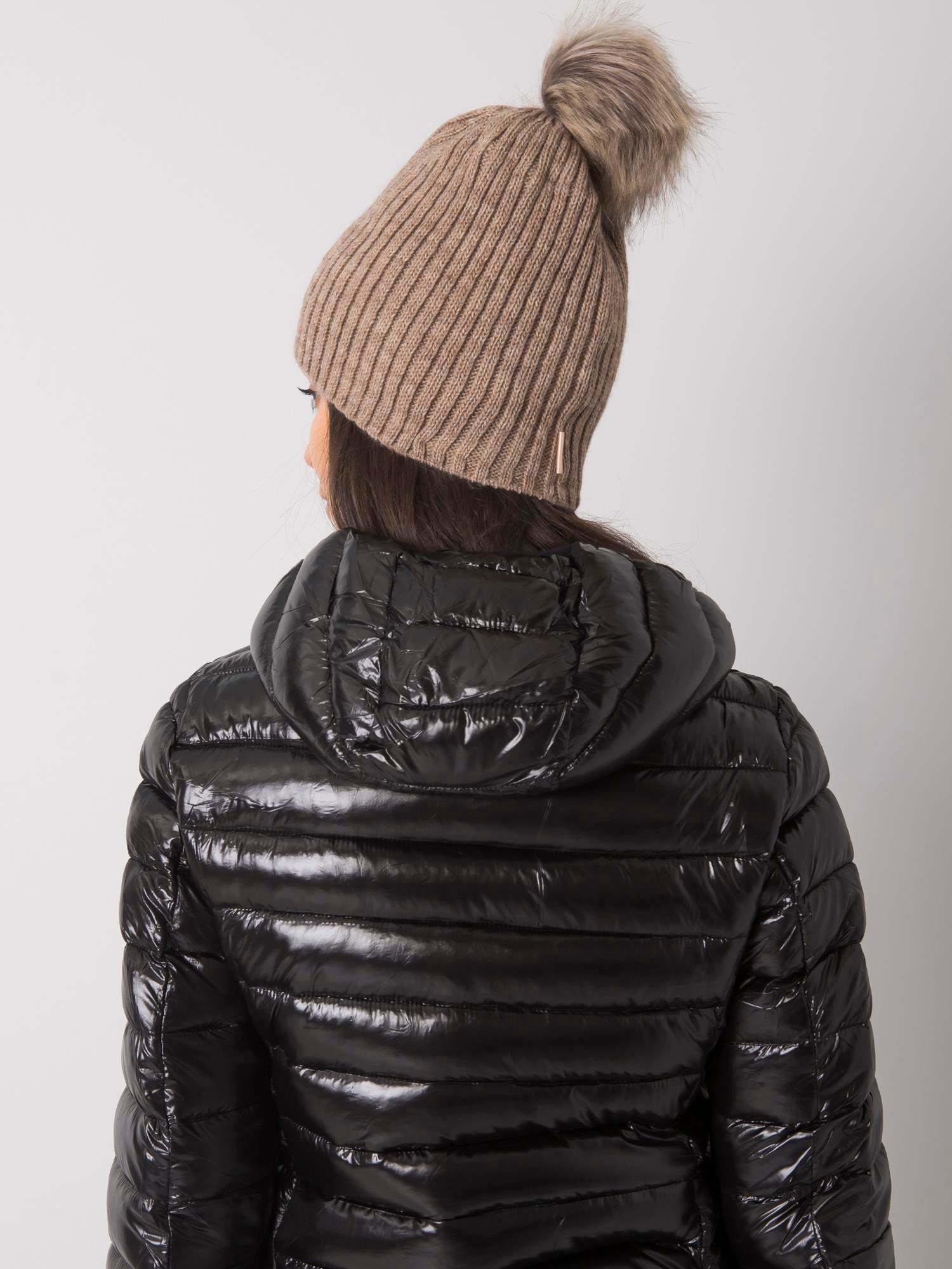 Ciemnobeżowa czapka z pomponem Produkt polski