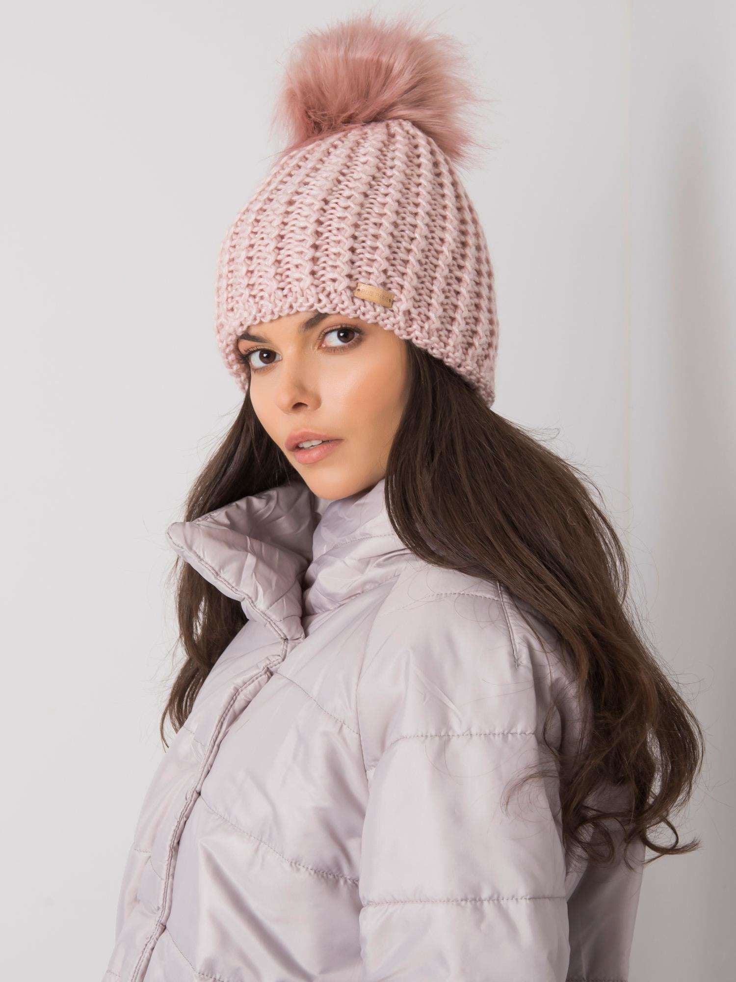 Jasnoróżowa czapka z metaliczną nicią Produkt polski