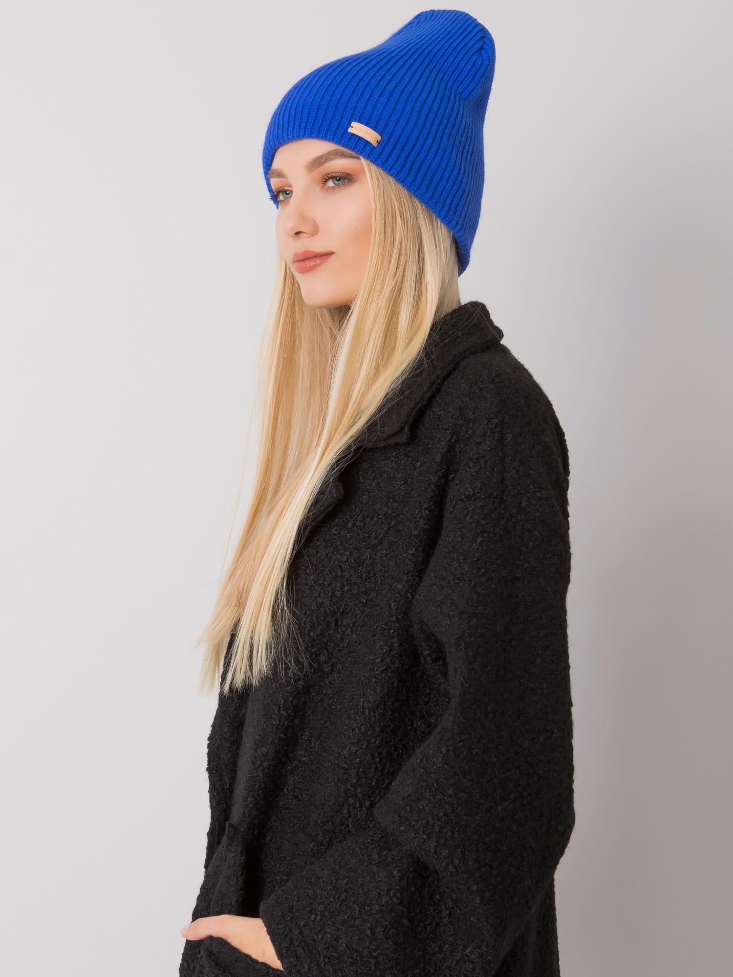RUE PARIS Ciemnoniebieska czapka beanie z dzianiny.