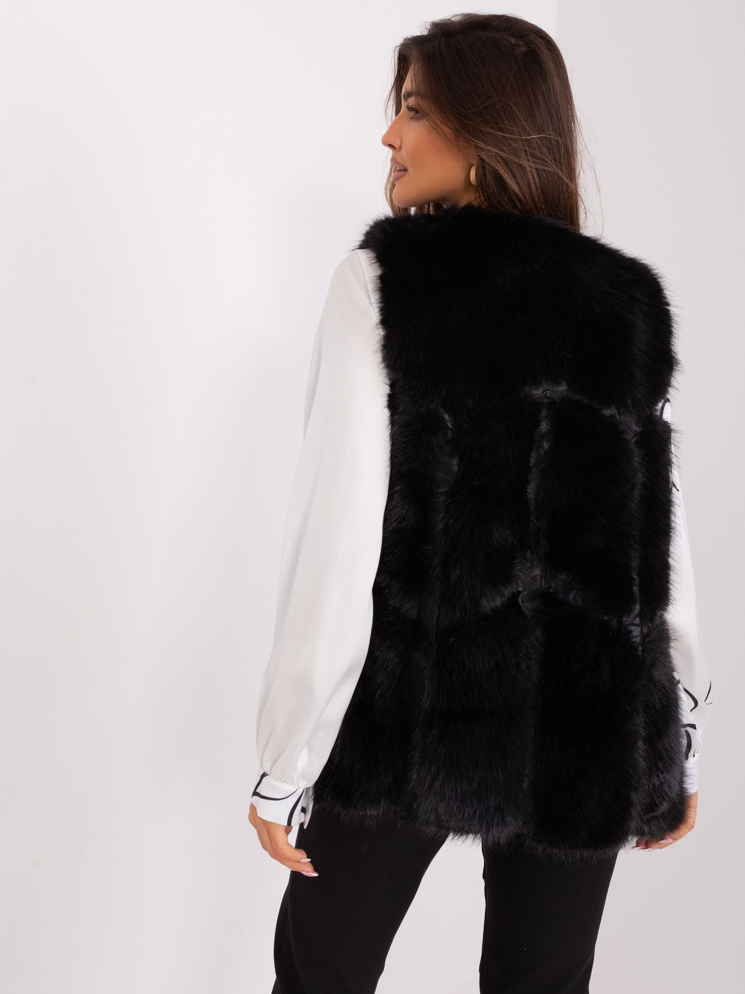 Czarna kamizelka damska z ekologicznego futra.