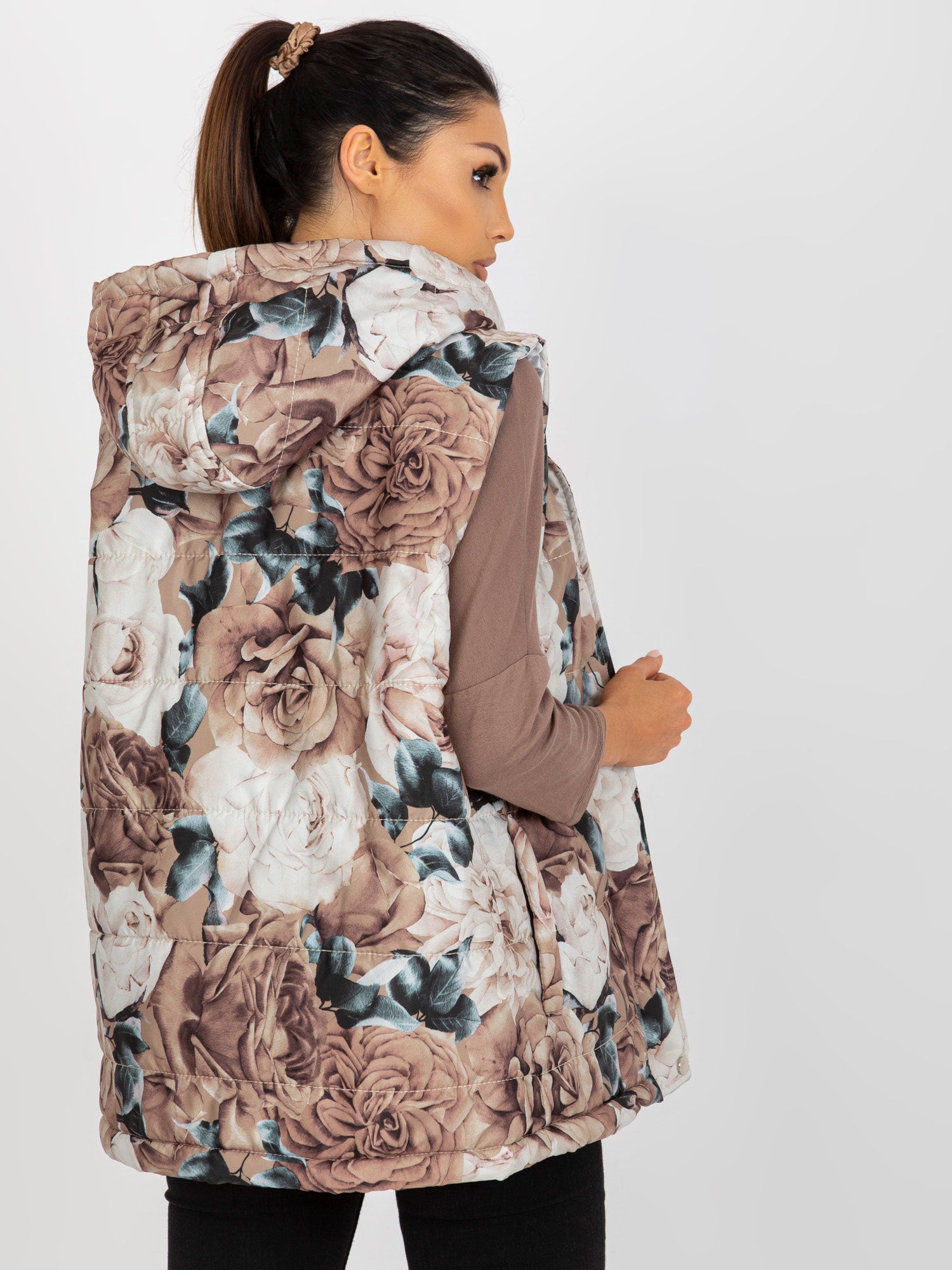 Beżowa damska kamizelka puchowa z kieszeniami .