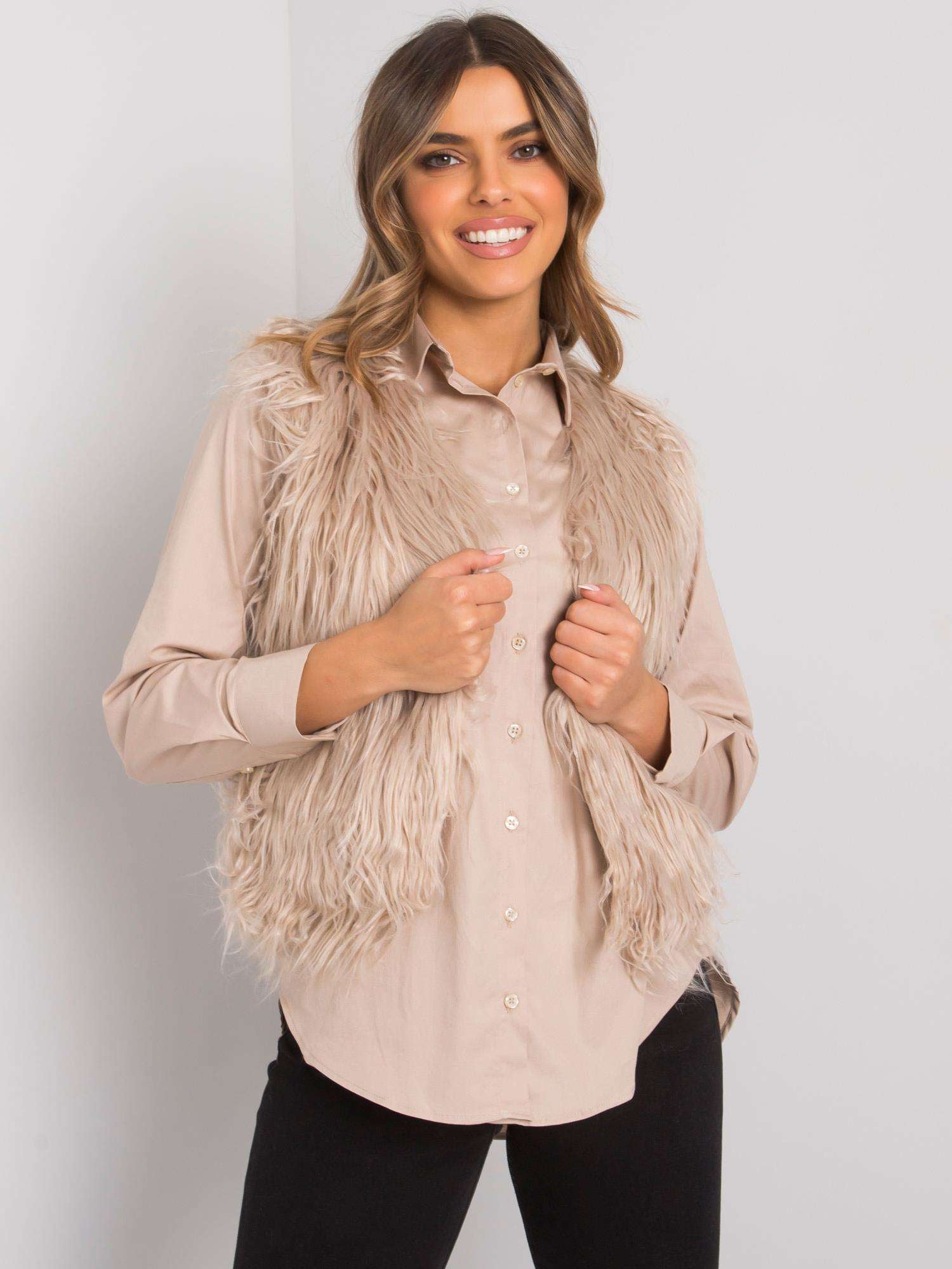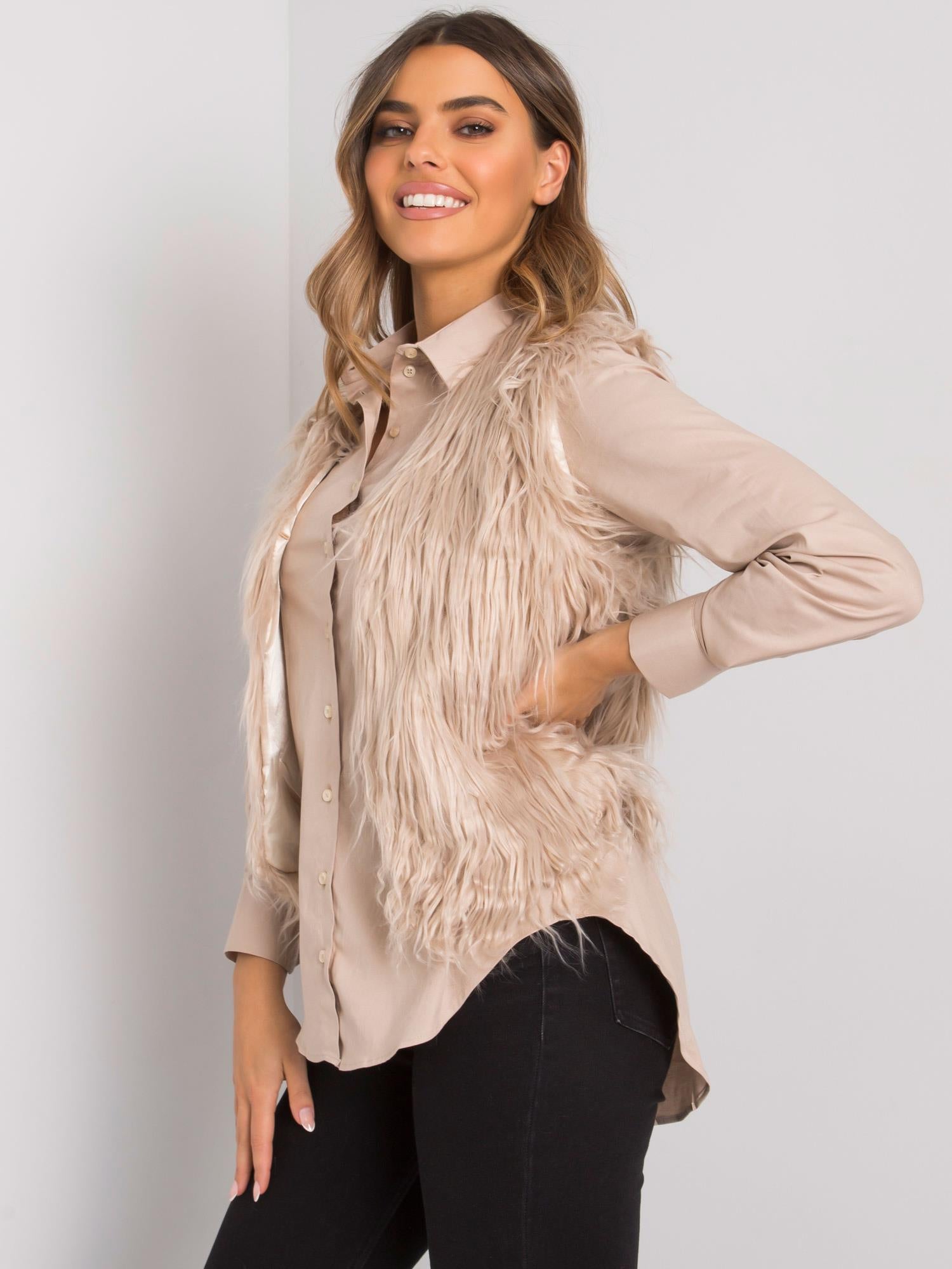 OCH BELLA Beżowa kamizelka futrzana.