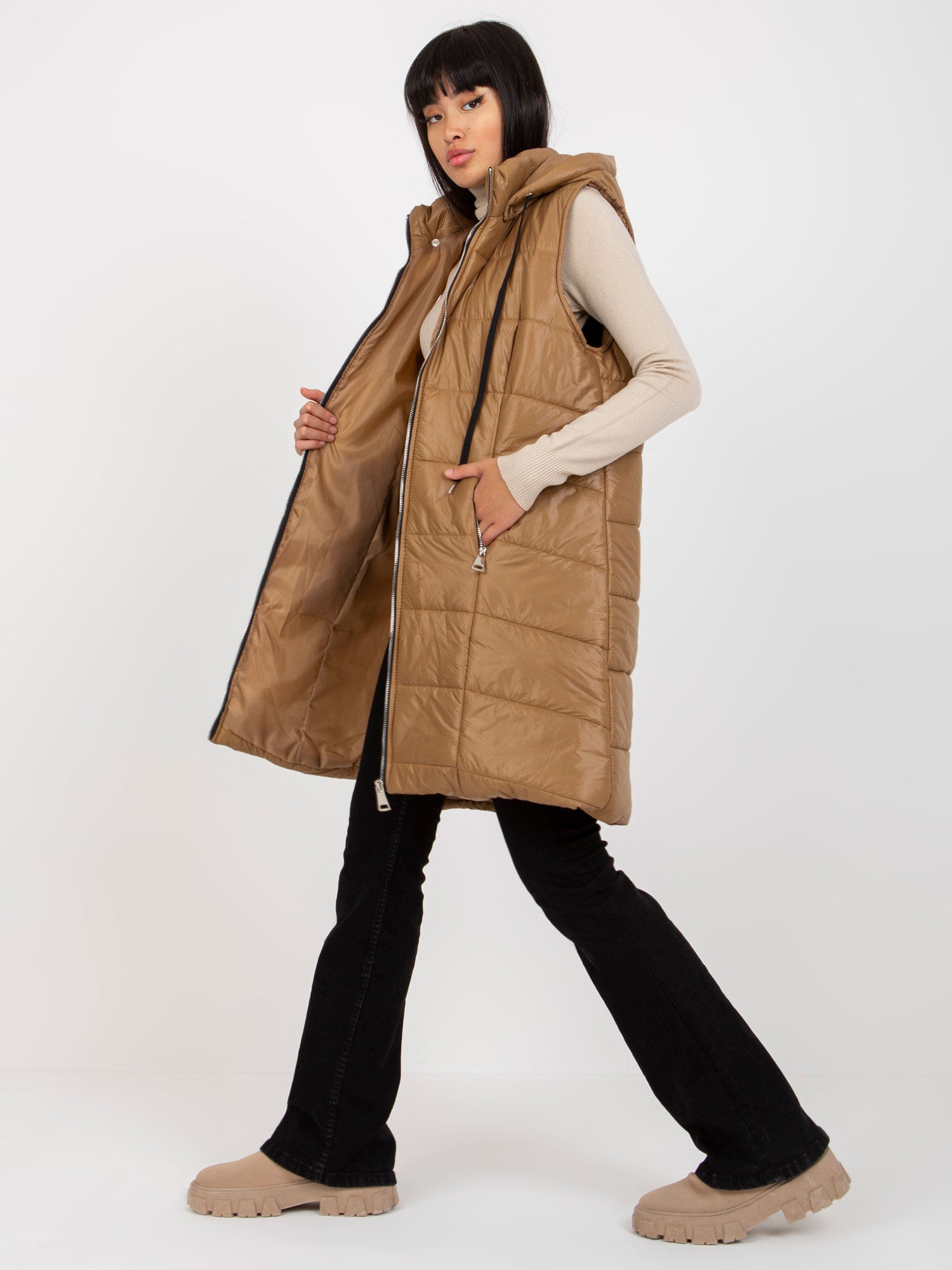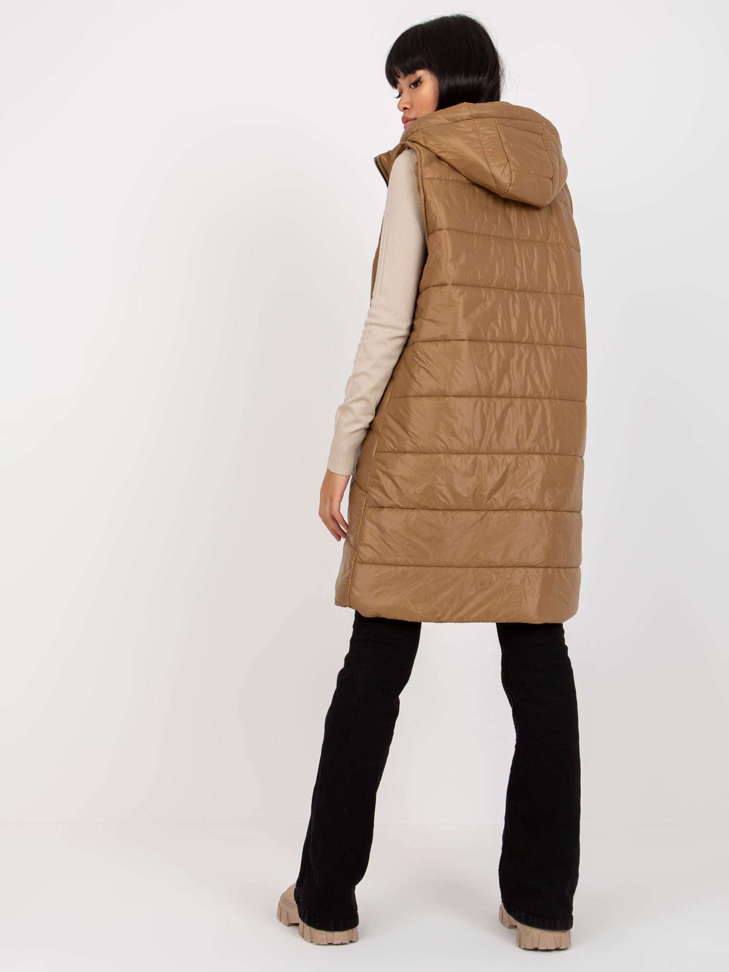 Jasnobrązowa pikowana kamizelka puchowa z kapturem OCH BELLA .