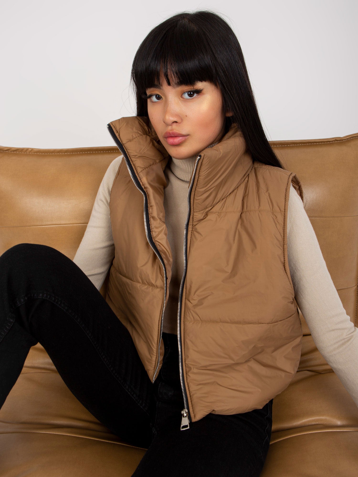 Jasnobrązowa krótka kamizelka puchowa OCH BELLA .