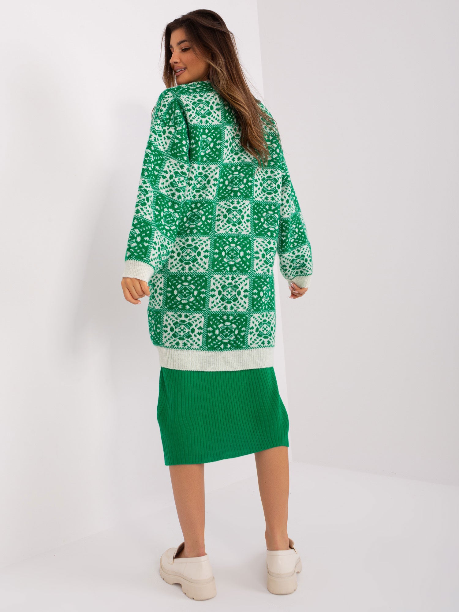 Wymiary kardiganu w rozmiarze one size mierzone na płasko: szerokość pod pachami - 56 cm, długość rękawa - 58 cm, długość całkowita - 86 cm.