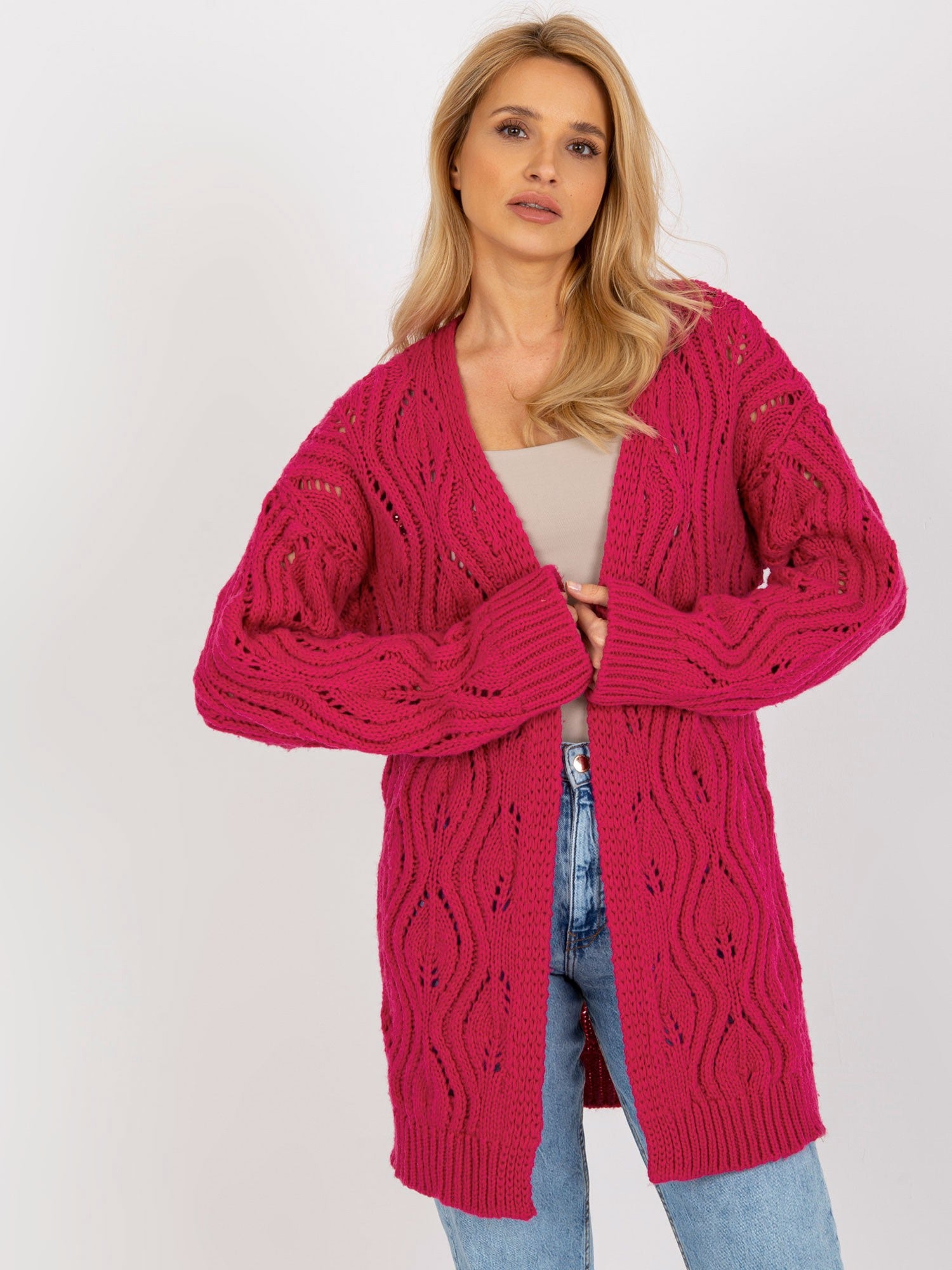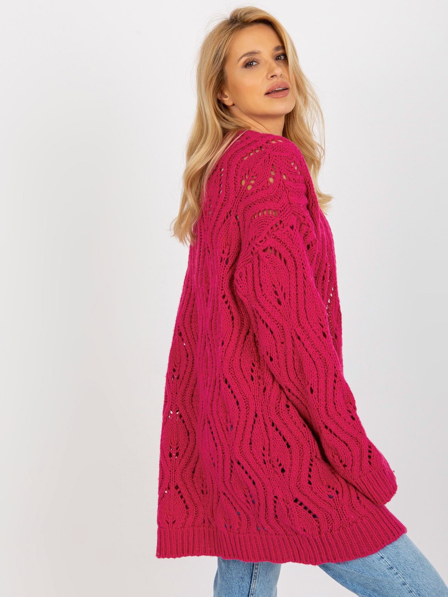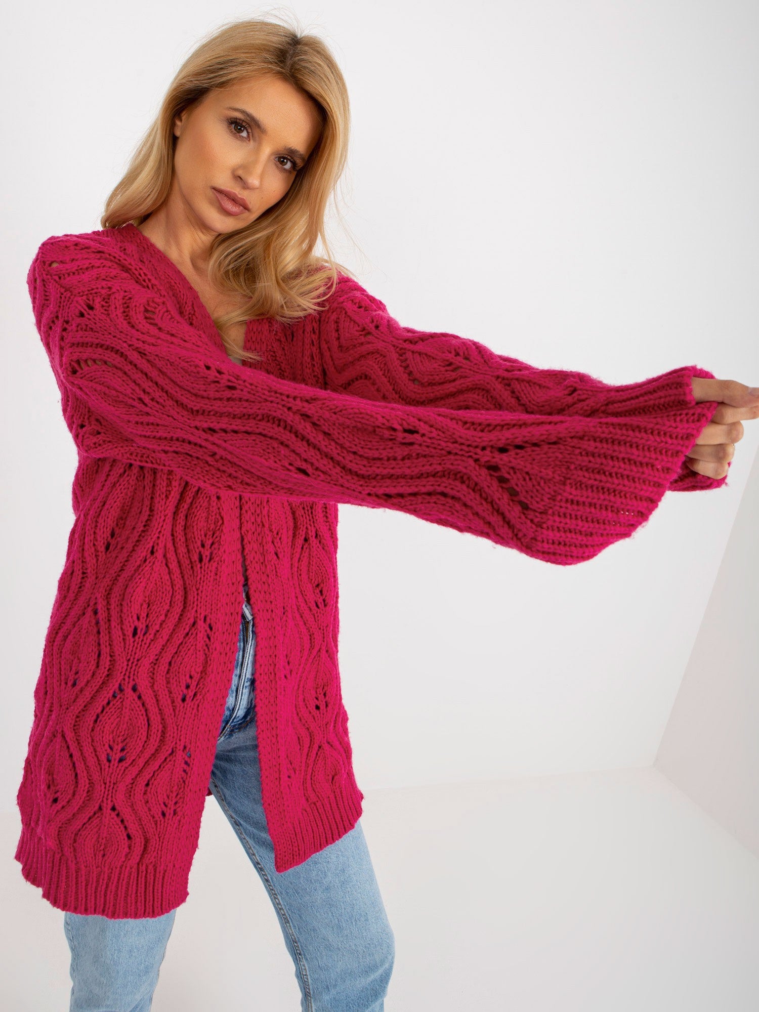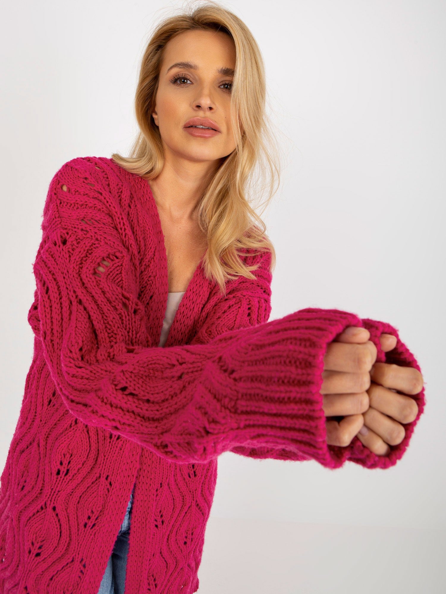 Fuksjowy ażurowy kardigan z dodatkiem wełny .