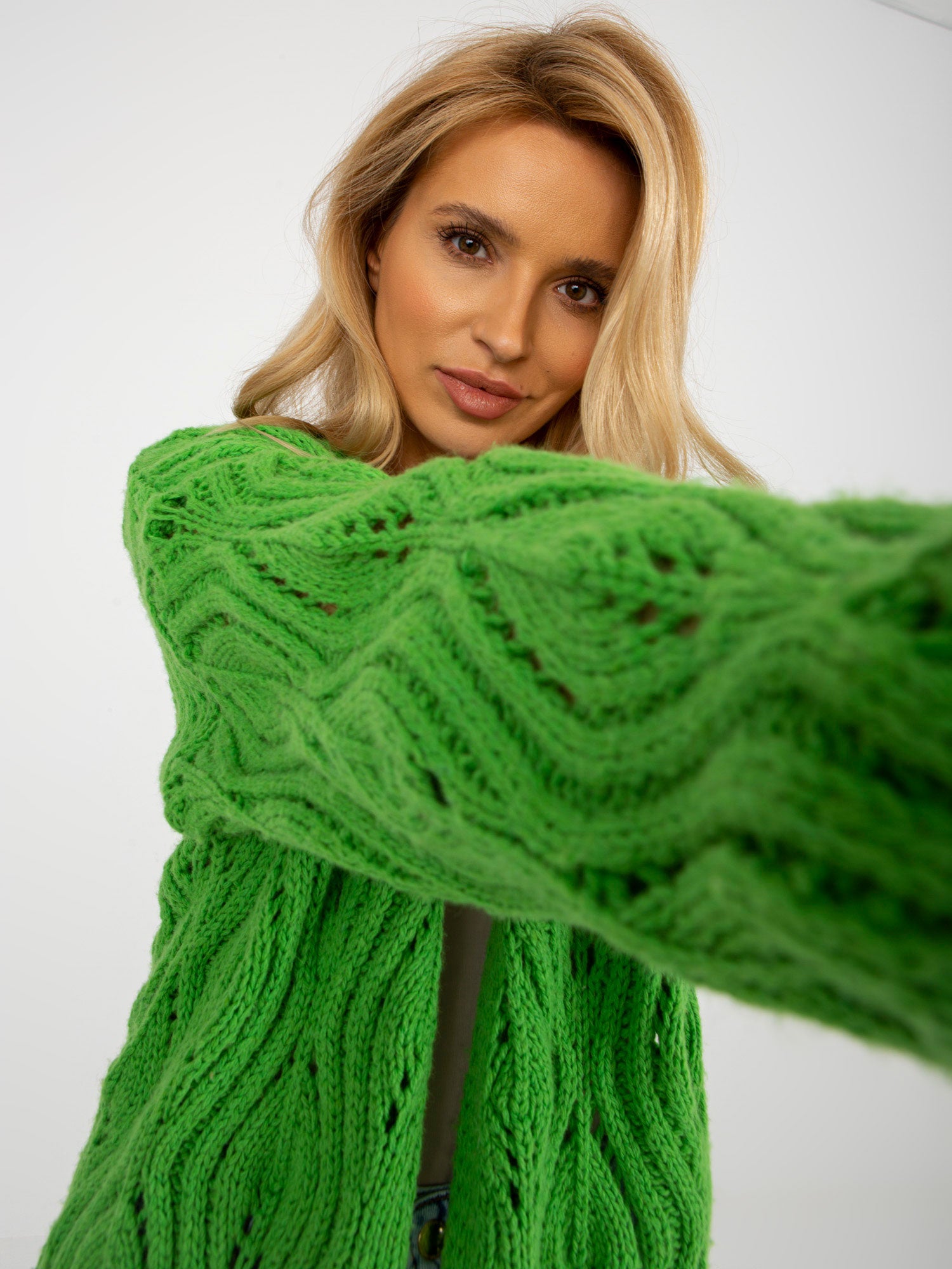 Jasnozielony damski ażurowy kardigan z dodatkiem wełny .