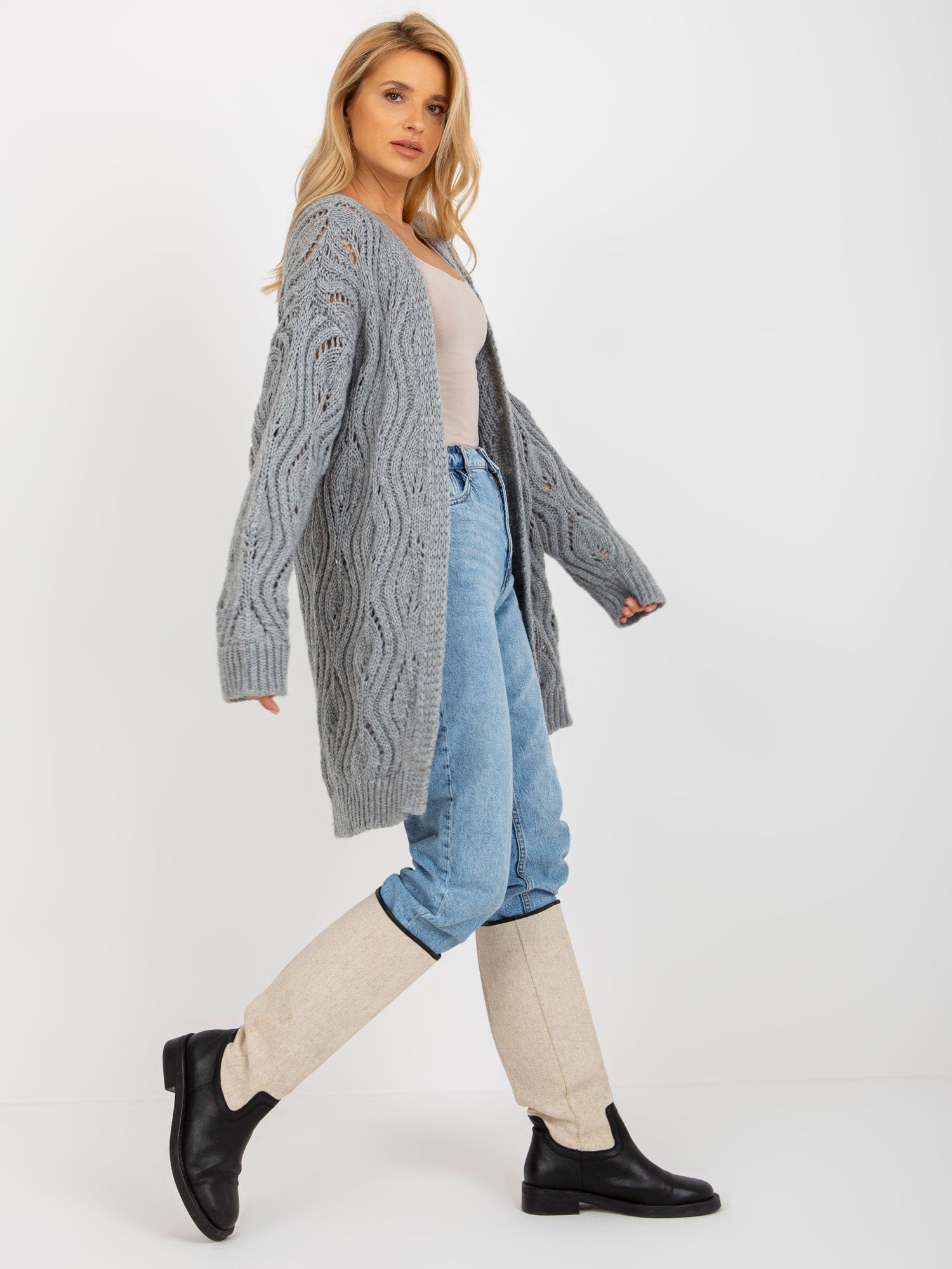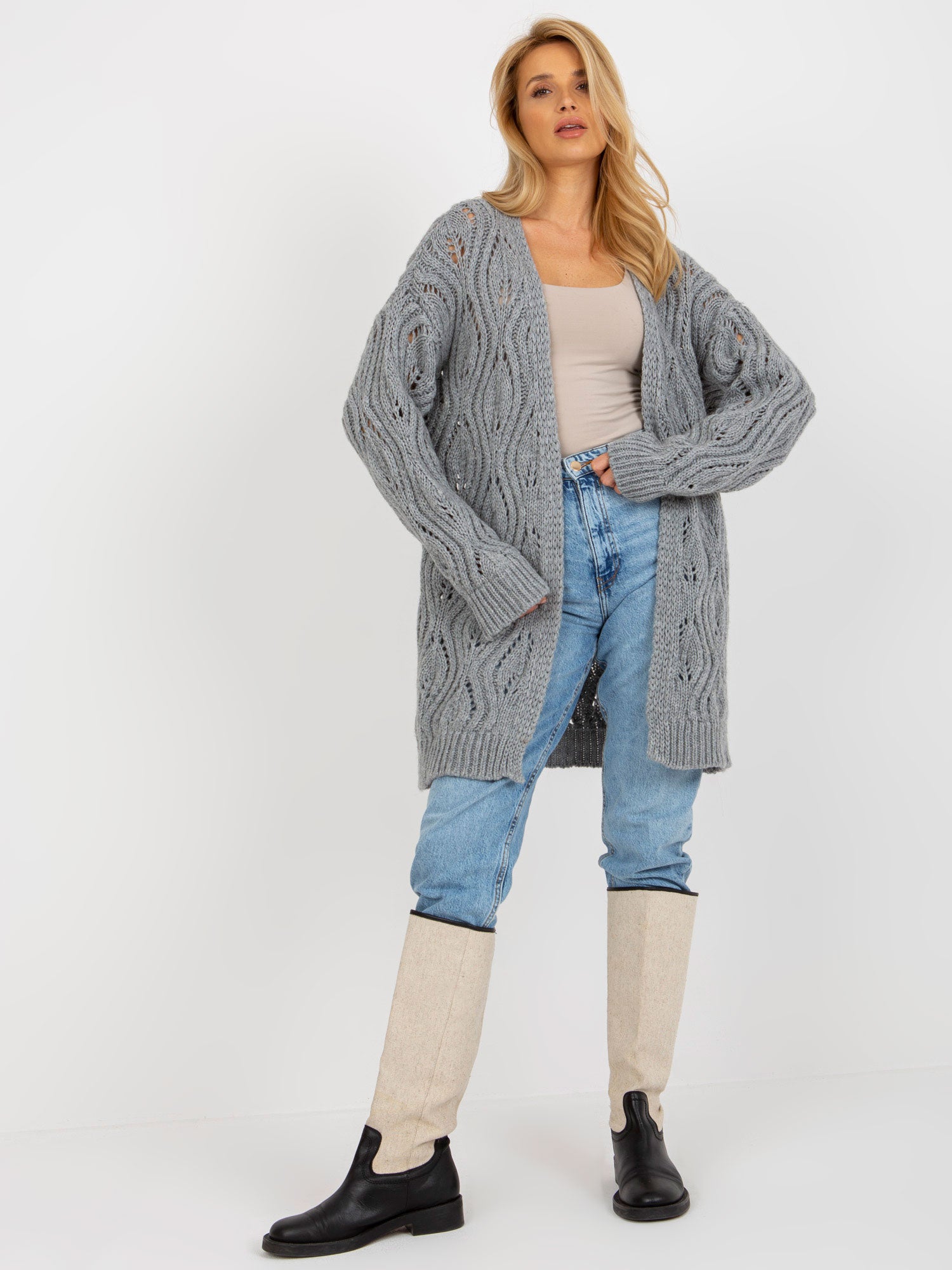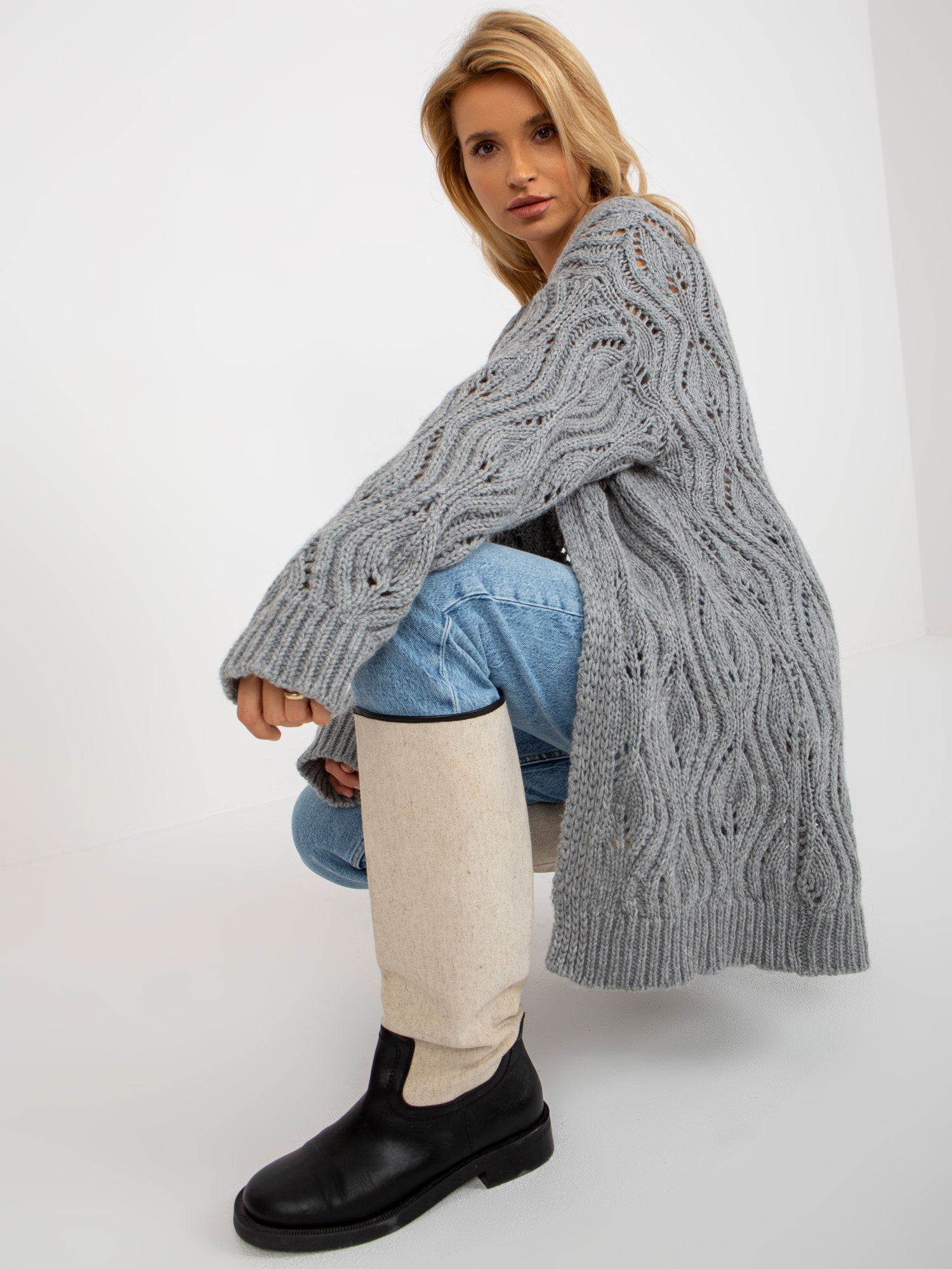 Wymiary kardiganu w rozmiarze one size mierzone na płasko: szerokość pod pachami - 61 cm, długość rękawa - 64 cm, długość całkowita - 84 cm