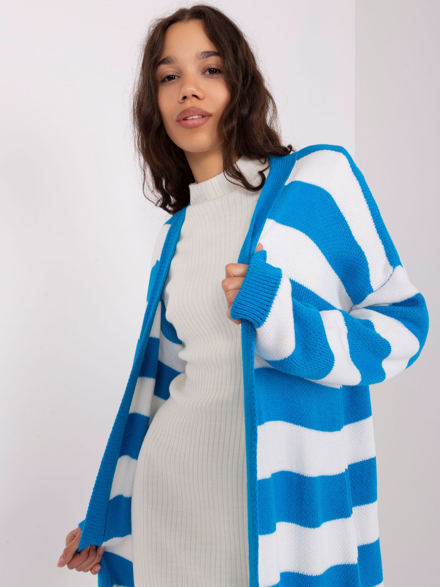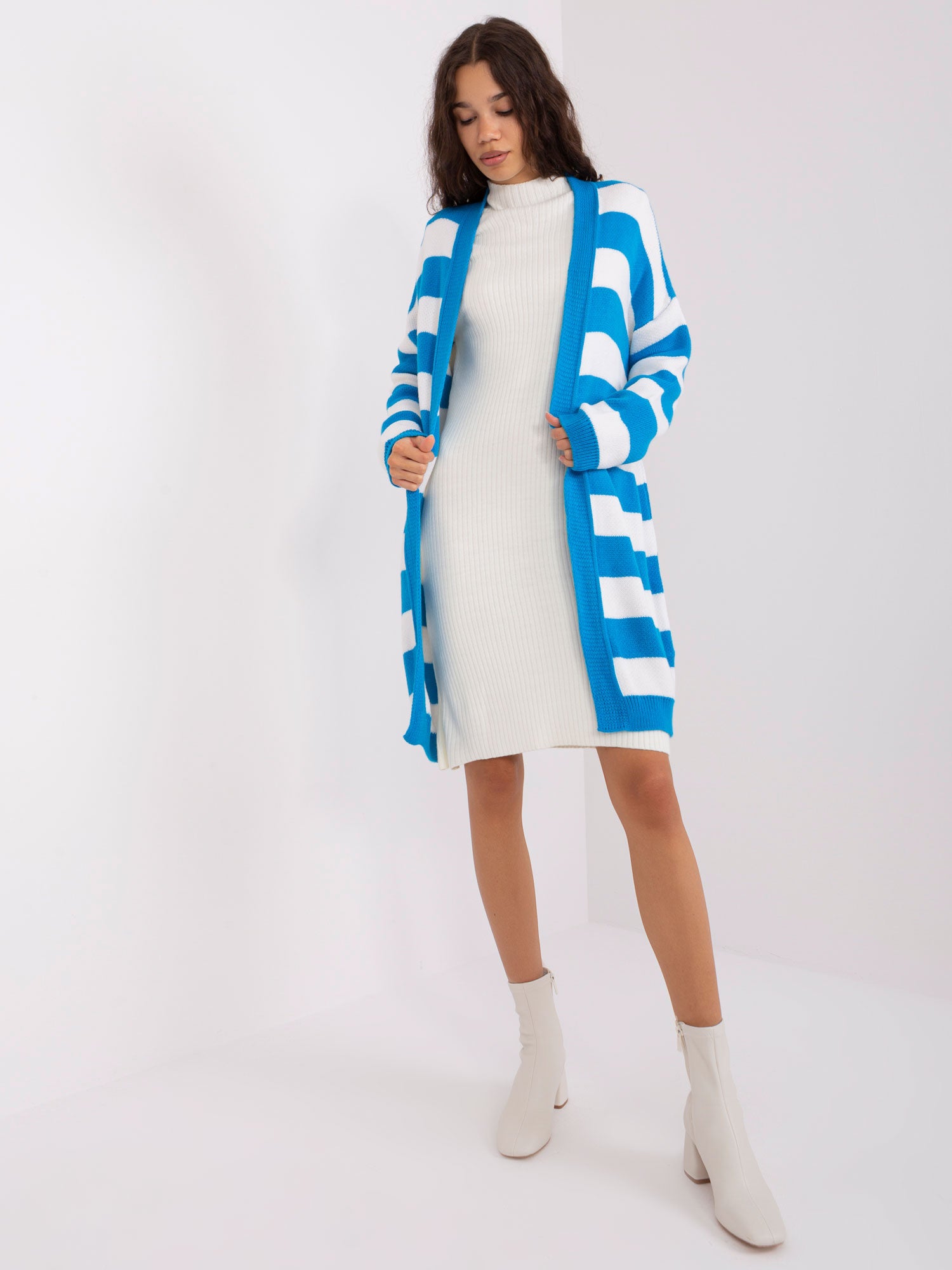 Wymiary kardiganu w rozmiarze one size mierzone na płasko: szerokość pod pachami - 75 cm, długość całkowita - 98 cm, długość rękawa - 69 cm.