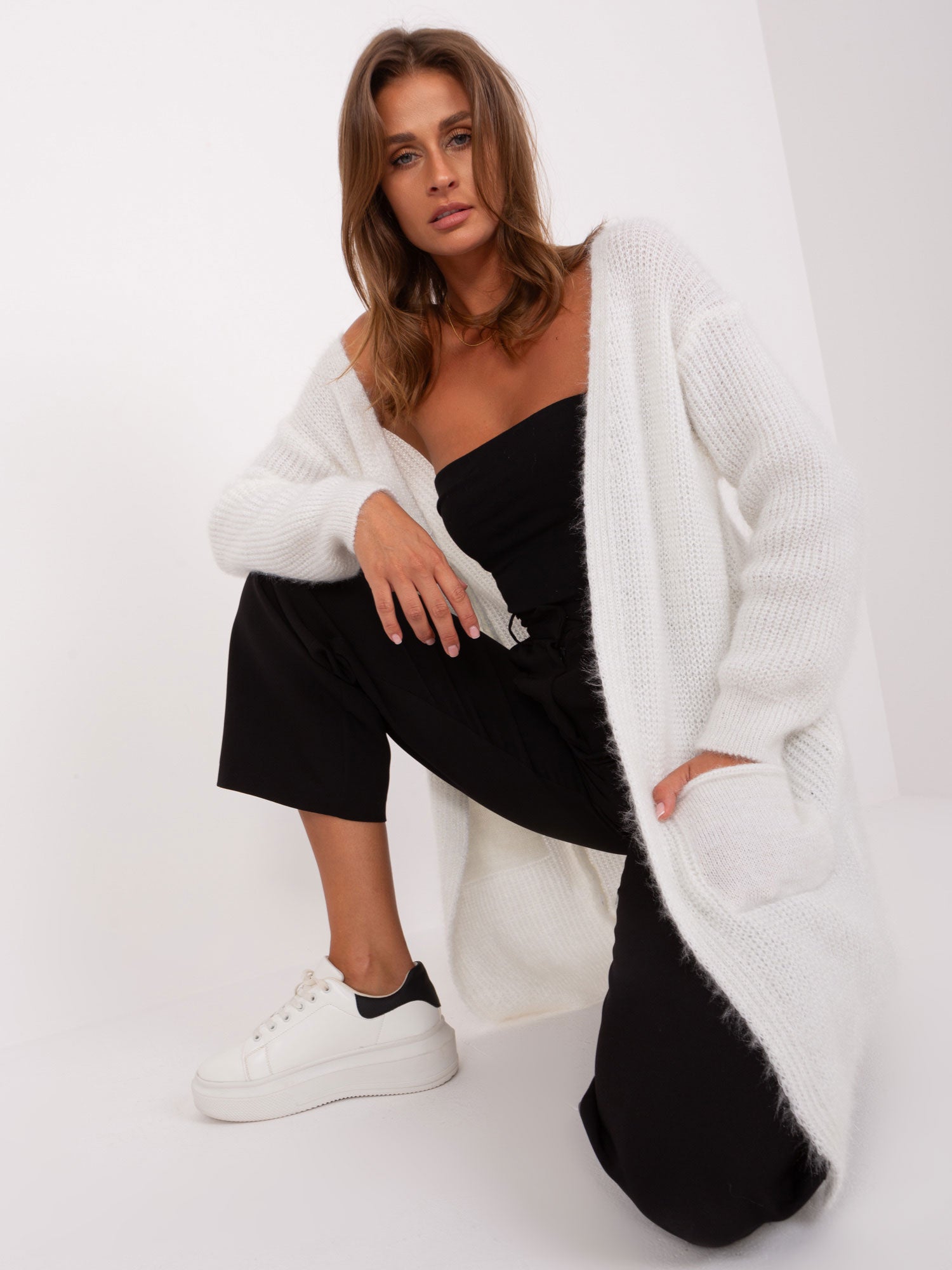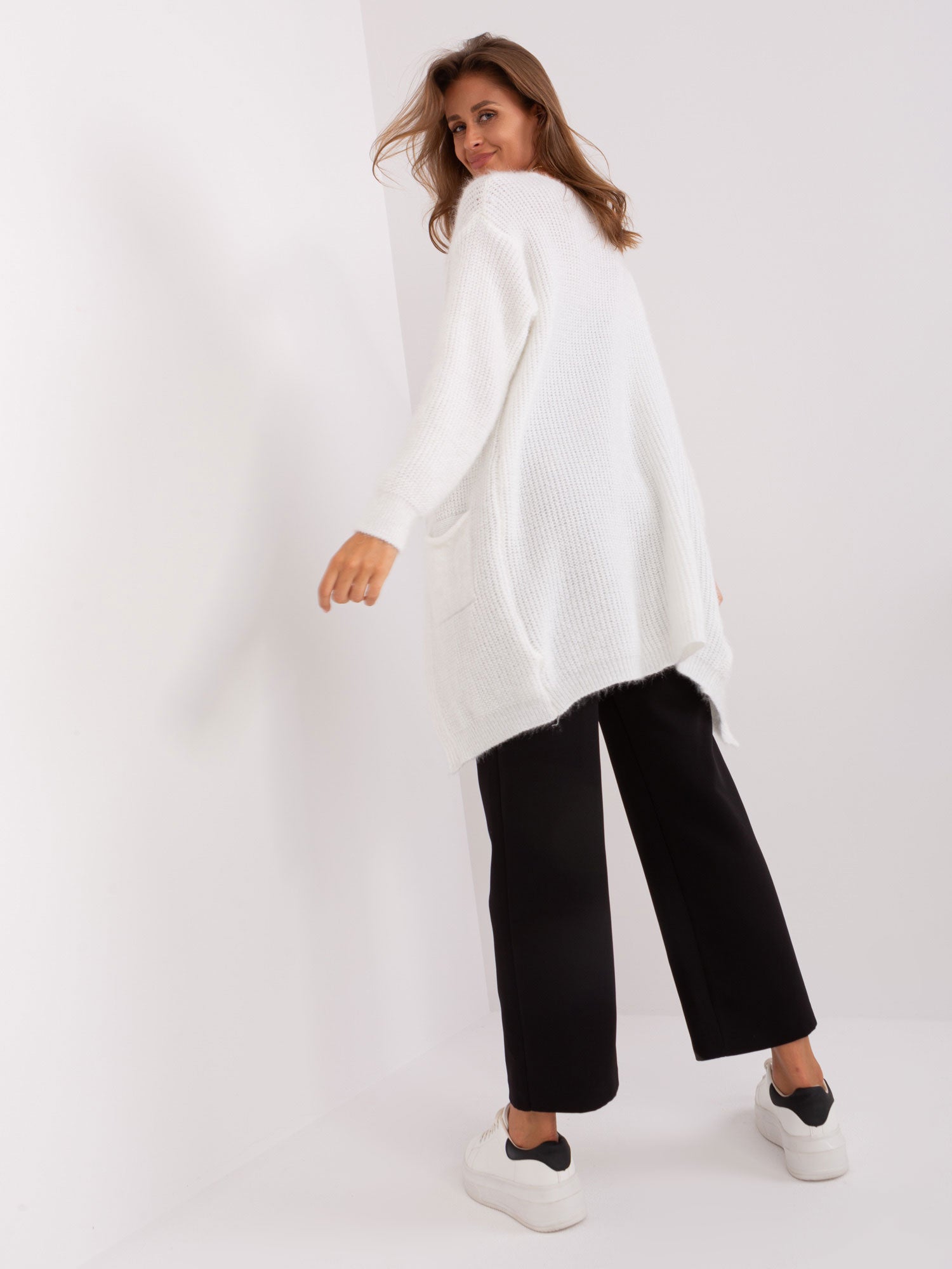 Wymiary swetra w rozmiarze one size mierzone na płasko: szerokość pod pachami - 70 cm, długość rękawa - 60 cm, długość całkowita - 90 cm.