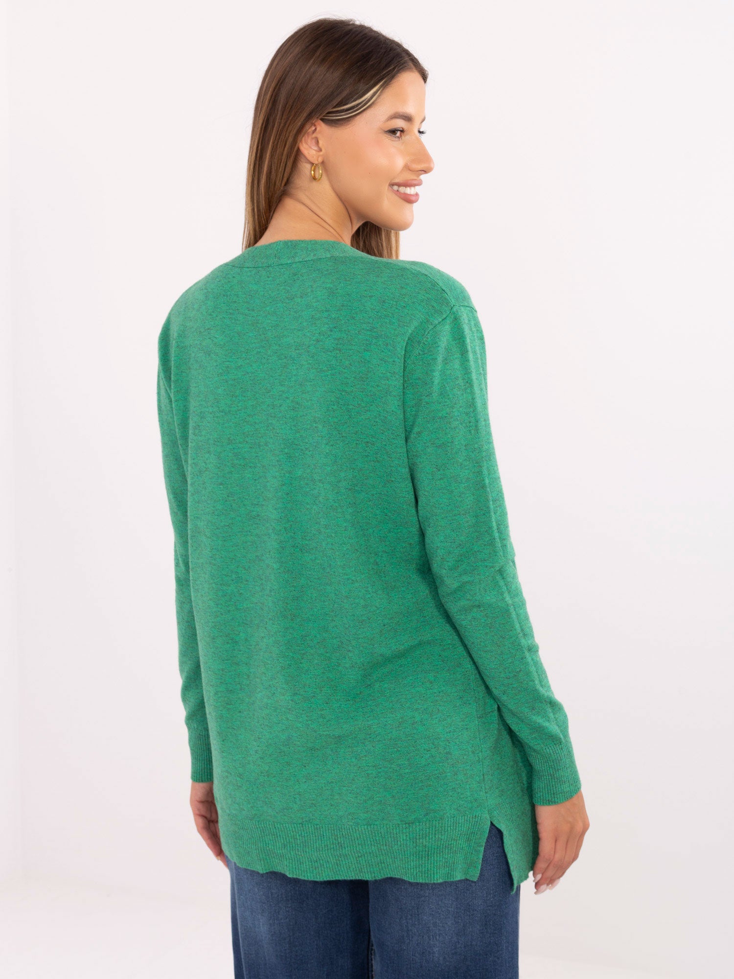 Wymiary swetra w rozmiarze S/M mierzone na płasko: szerokość pod pachami - 59 cm, długość rękawa - 59 cm, długość całkowita - 74 cm, szerokość w biodrach - 60 cm.