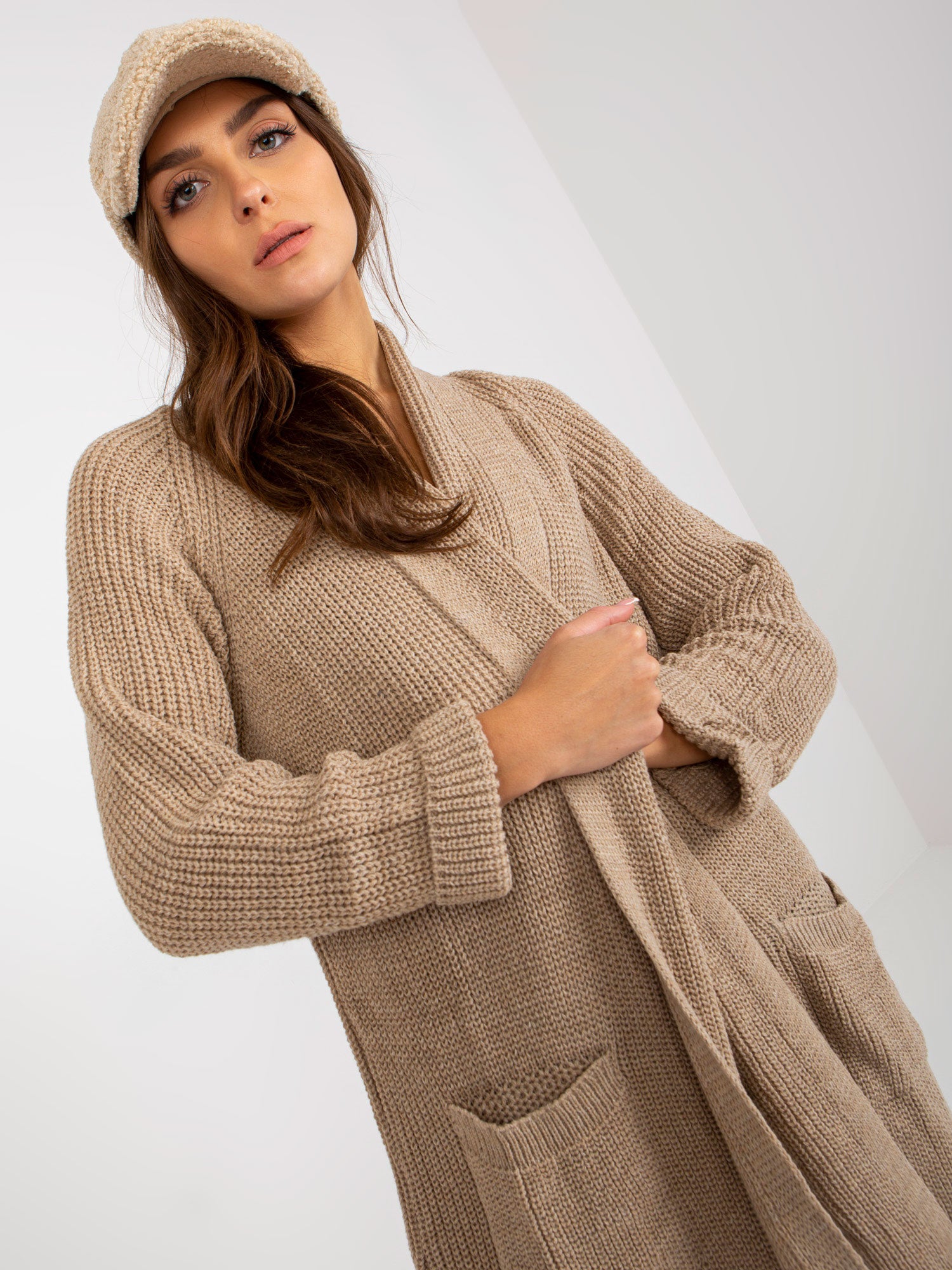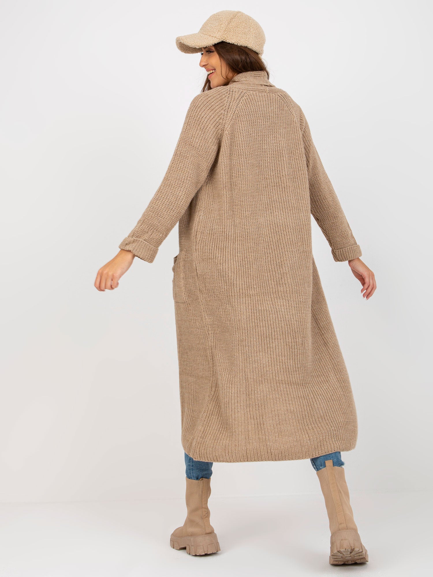 Beżowy długi kardigan z kieszeniami OCH BELLA .