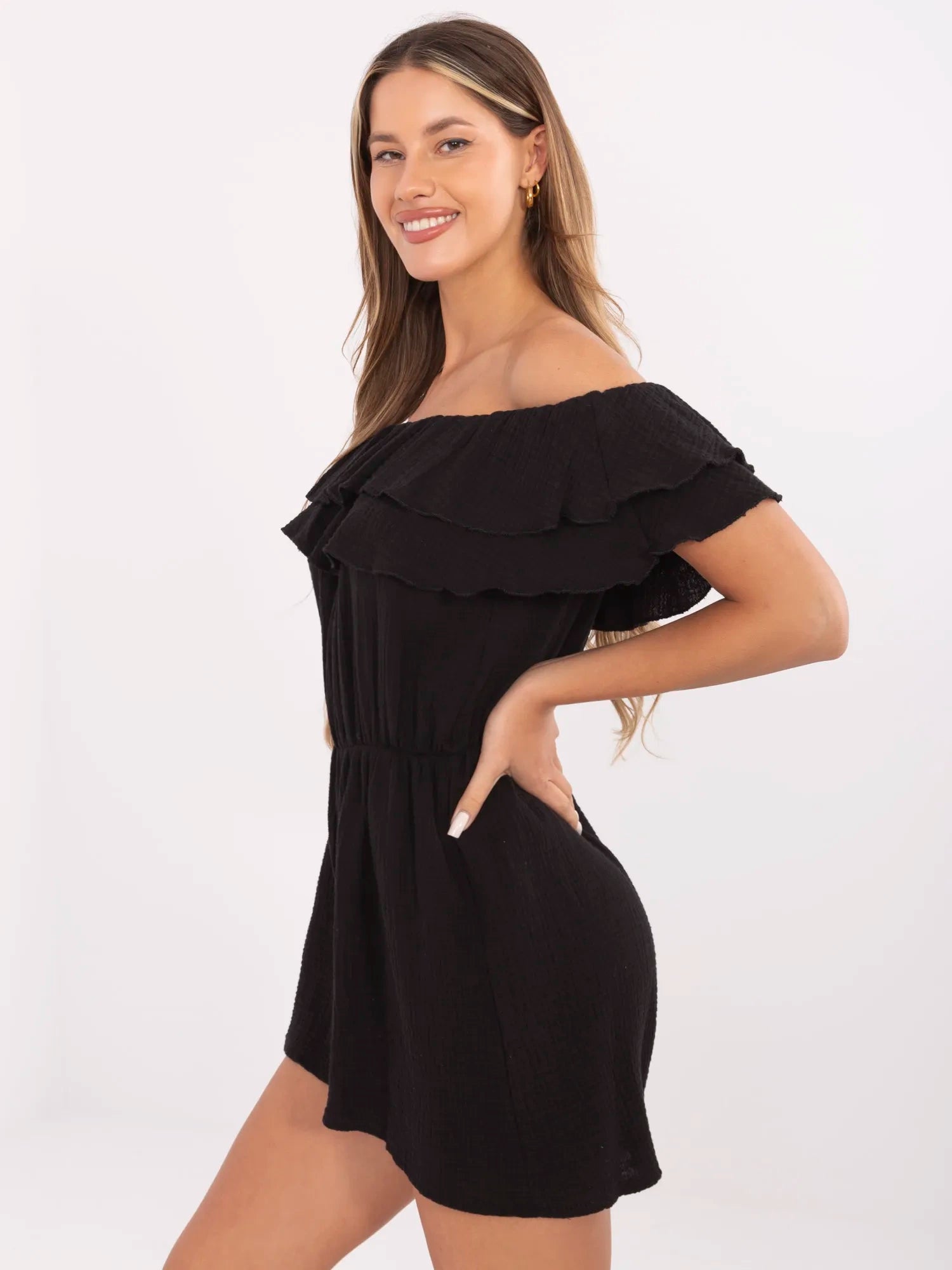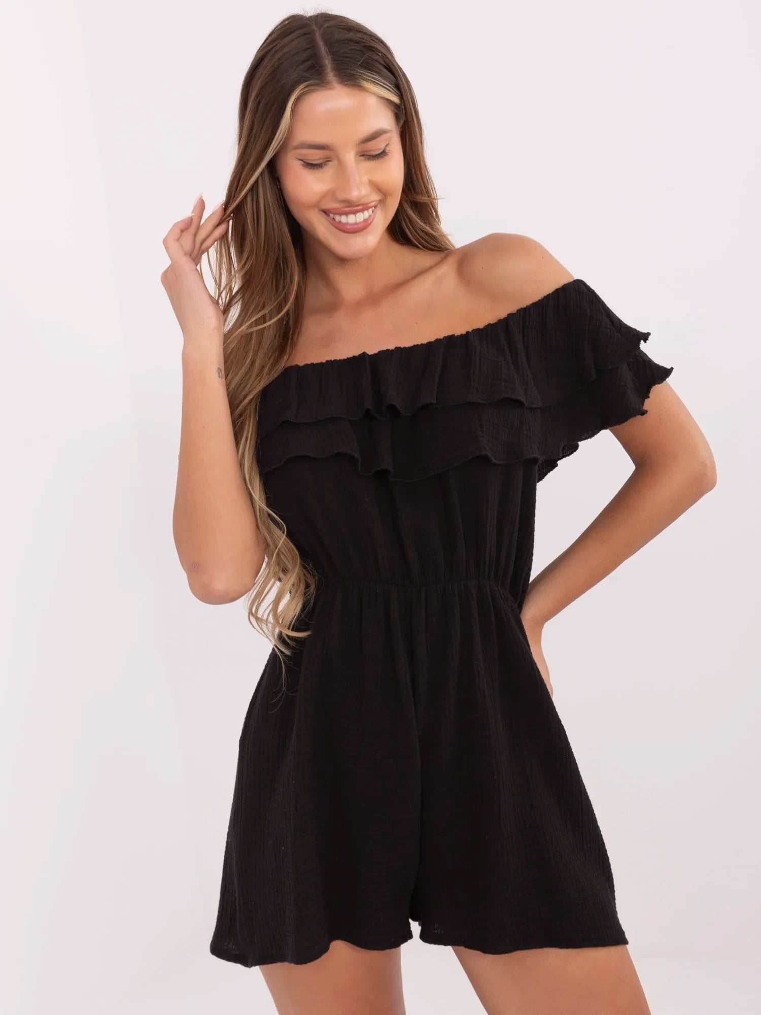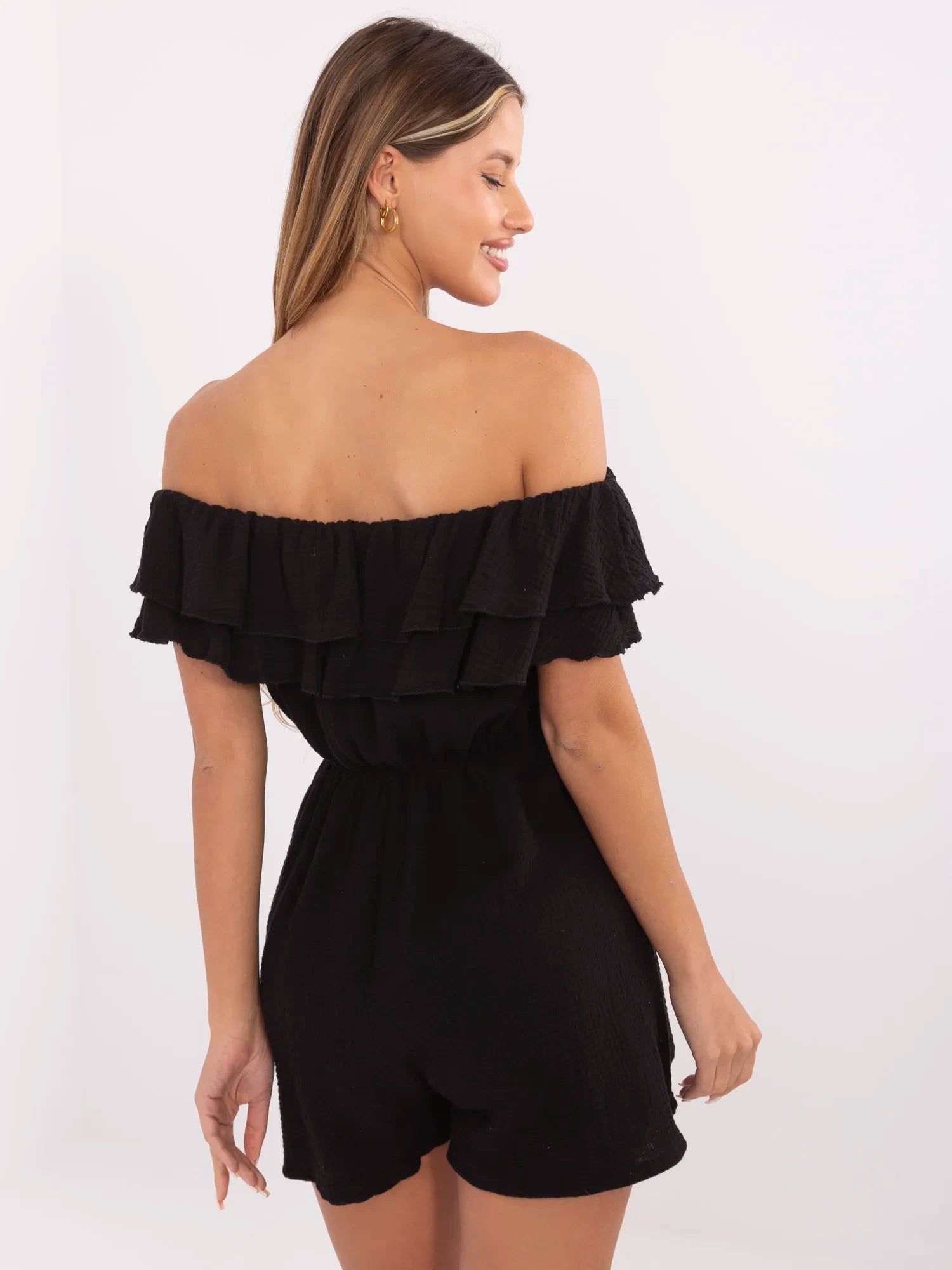 Wymiary kombinezonu w rozmiarze one size mierzone na płasko: szerokość pod pachami - 48 cm, szerokość w talii - 31 cm (na płasko), szerokość w talii - 60 cm ( po rozciągnięciu), szerokość w biodrach - 58 cm, długość całkowita - 84 cm.