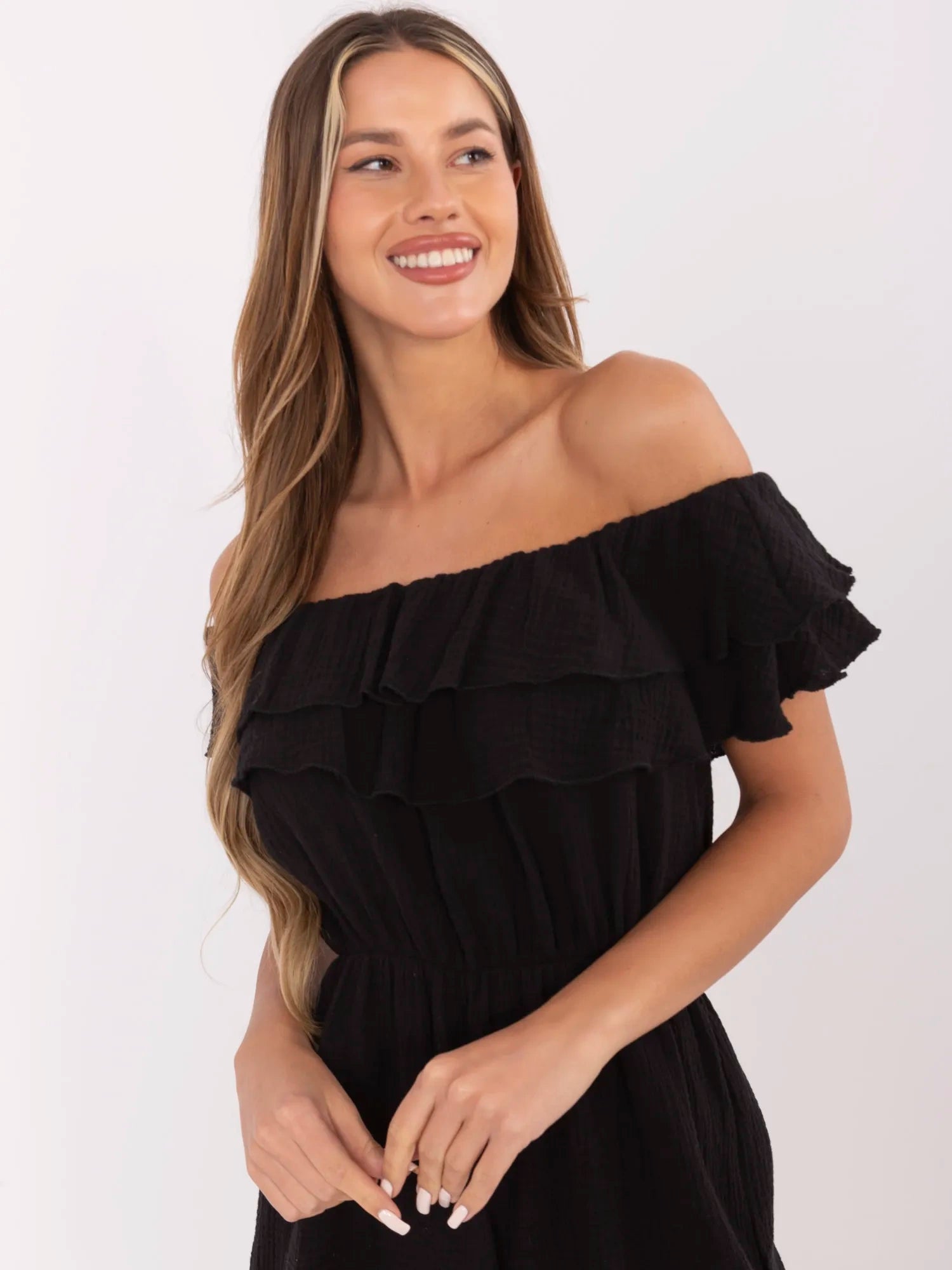 Modelka ma na sobie rozmiar one size. Wymiary modelki: wzrost 173 cm, biust 89 cm, talia 65 cm, biodra 91 cm.