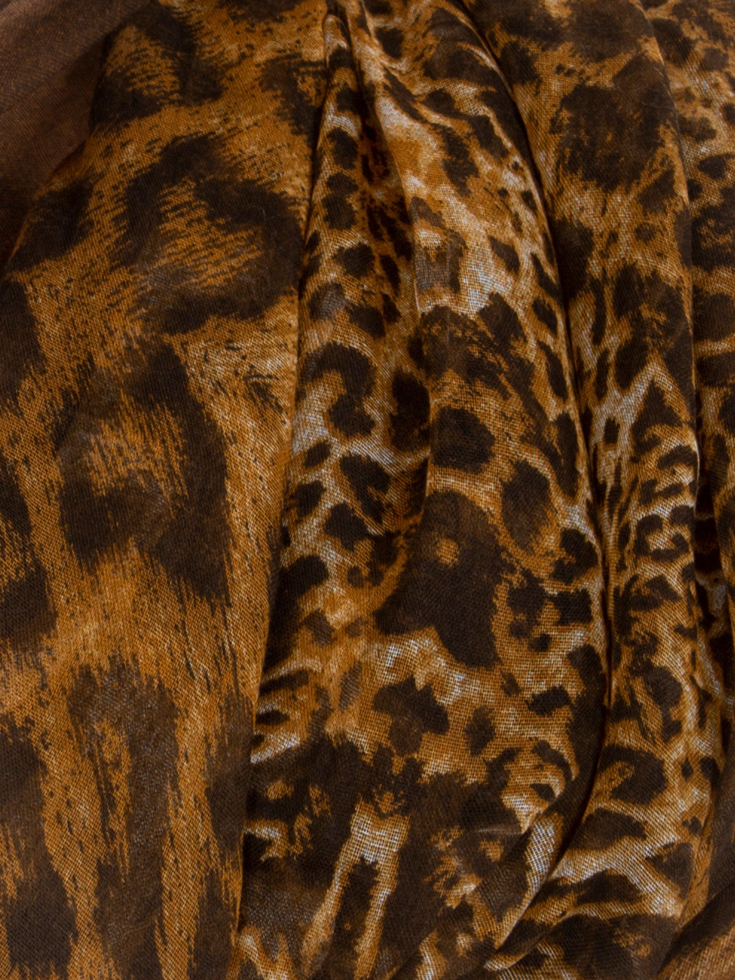 Camelowo-brązowa damska chusta w zwierzęcy wzór .