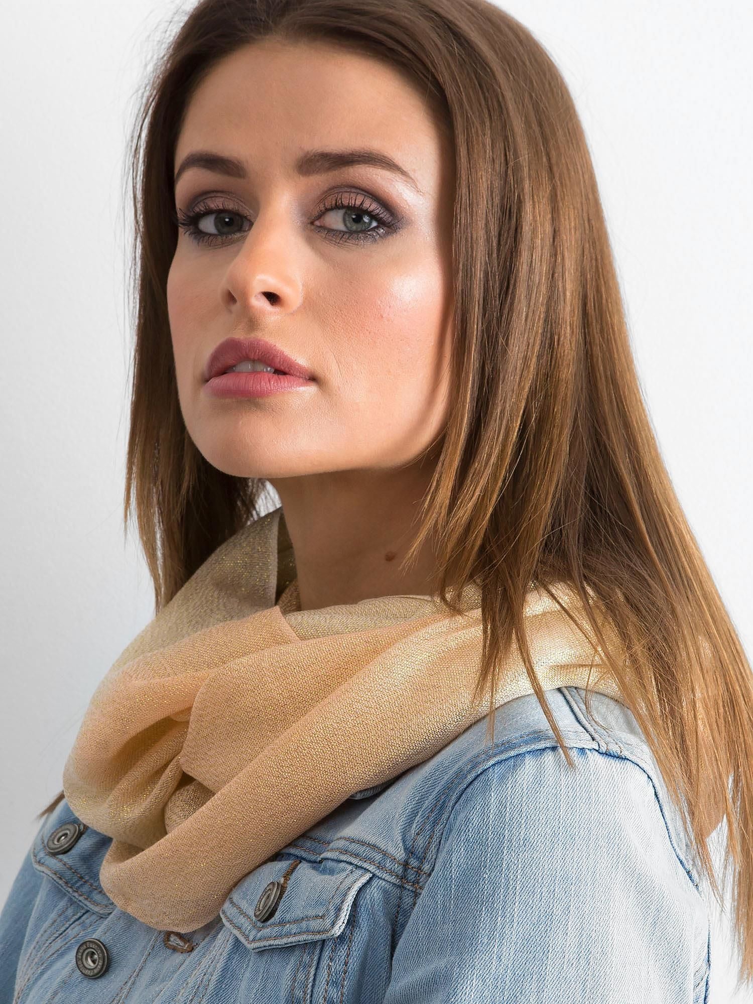 Brokatowy komin ombre beżowo-brzoskwiniowy.