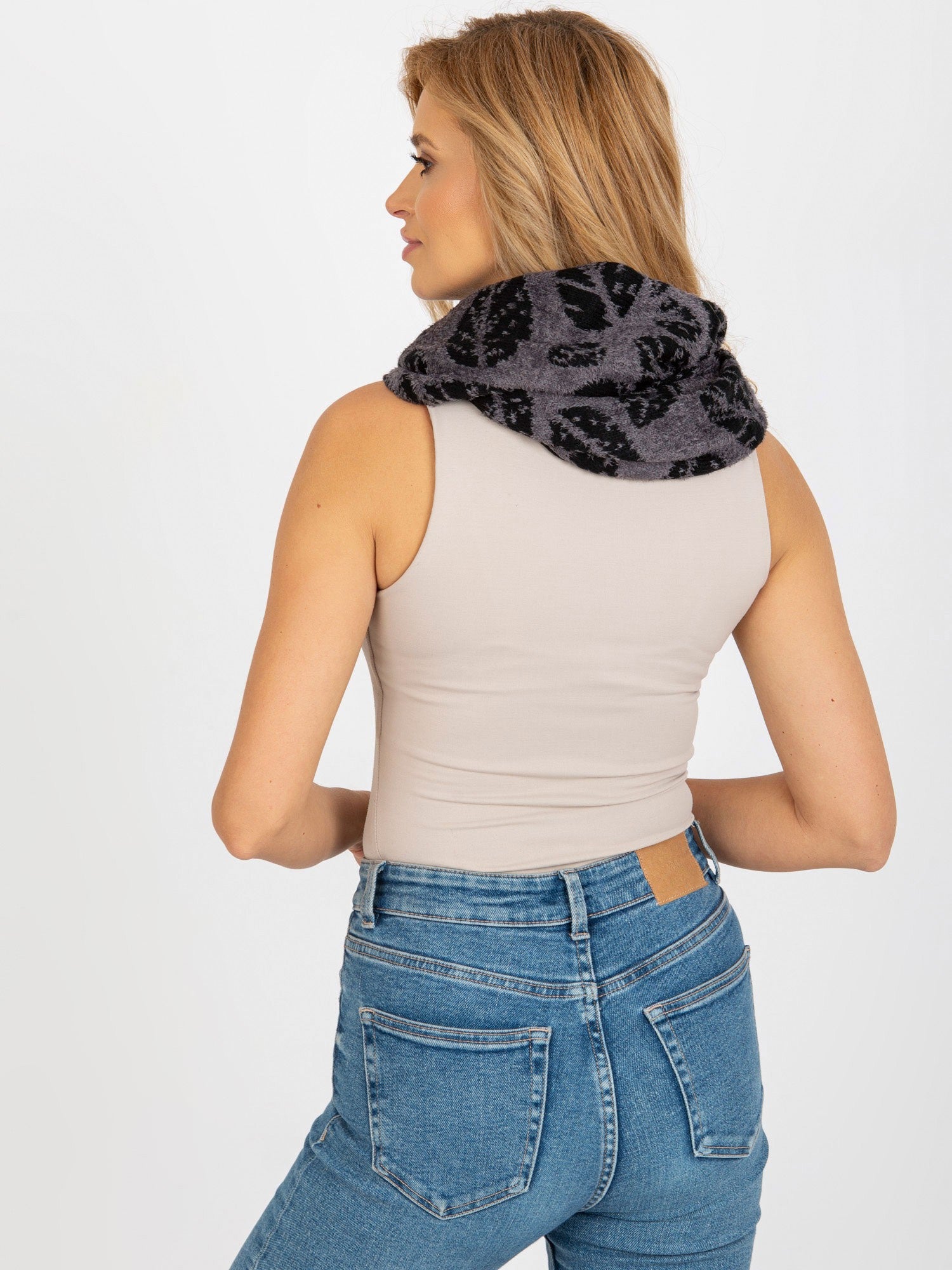 Ciemnoszaro-czarny zimowy komin damski .
