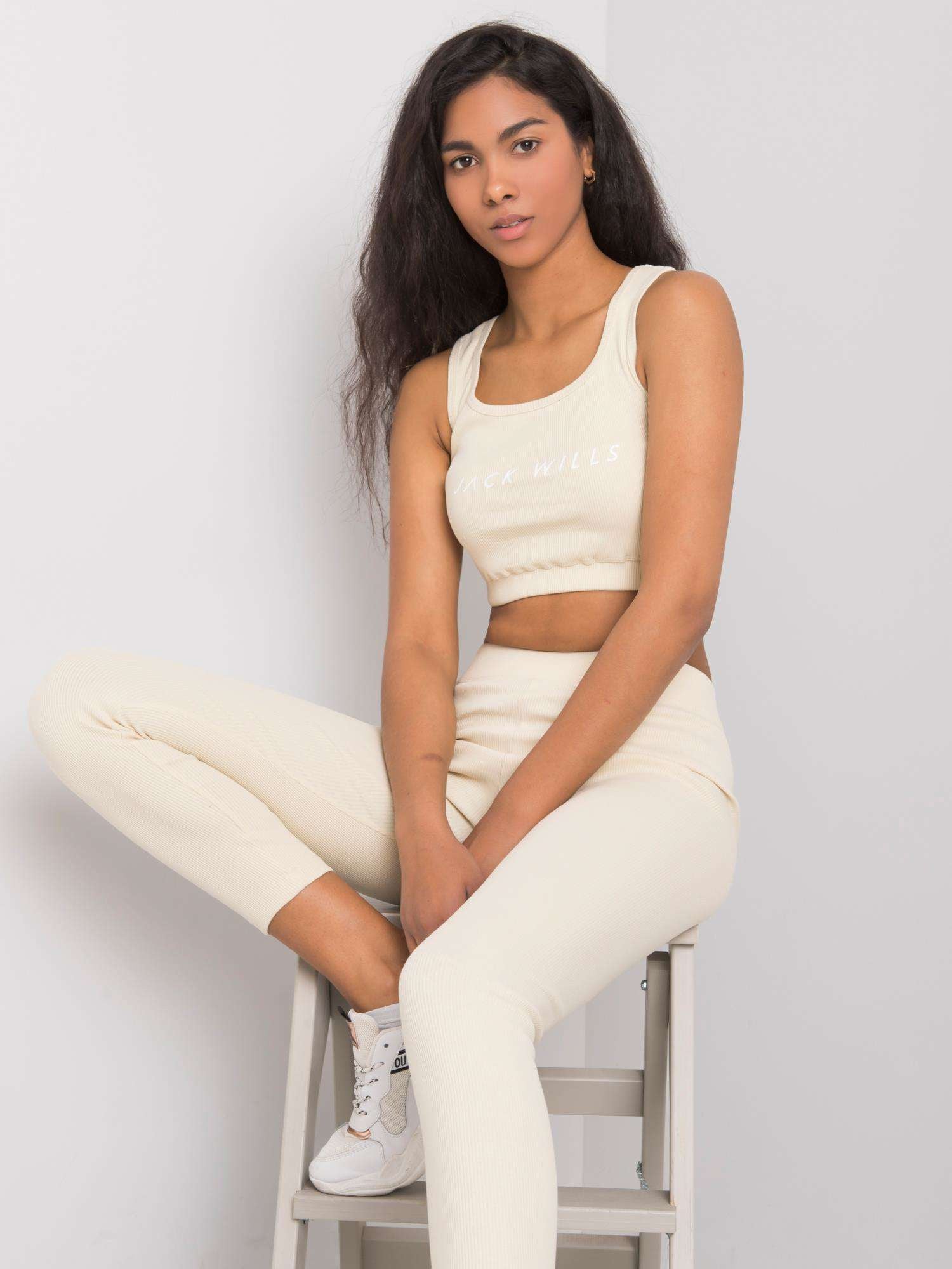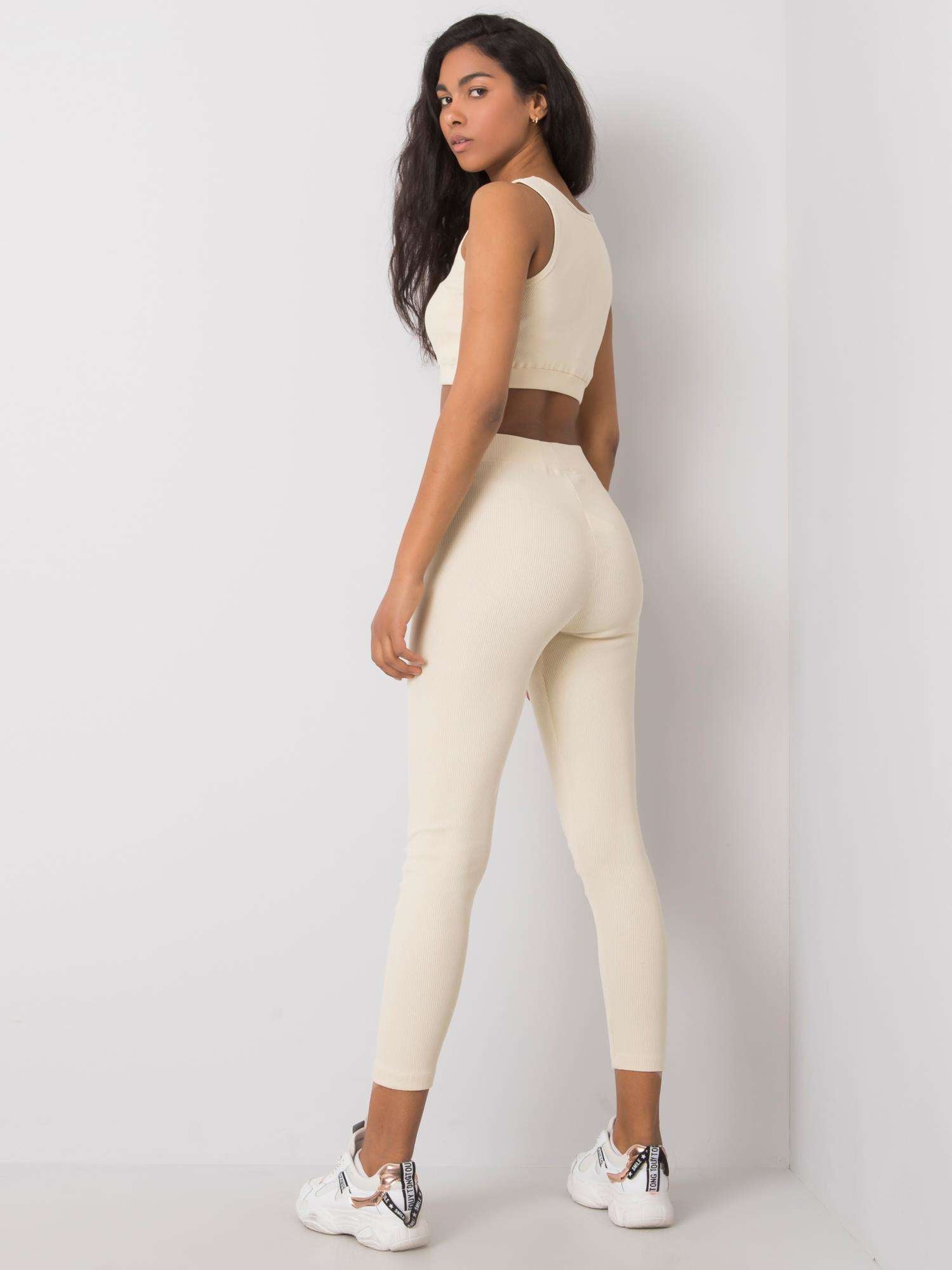 FOR FITNESS Beżowy prążkowany komplet sportowy.