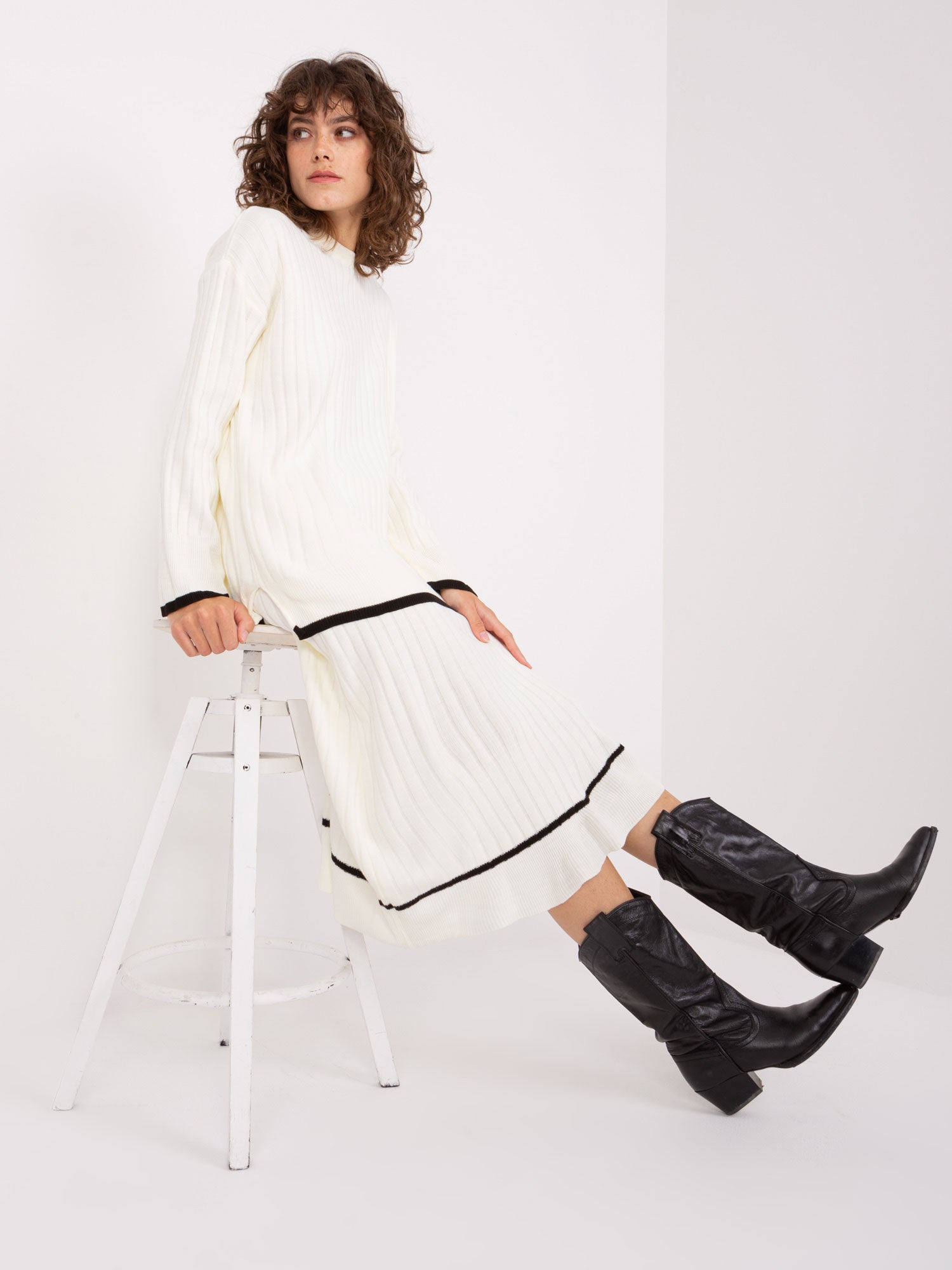 Wymiary kompletu w rozmiarze one size mierzone na płasko: szerokość pod pachami - 56 cm, długość rękawa - 58 cm, długość swetra - 66 cm, szerokość w pasie - 30 cm, długość spódnicy - 82 cm.