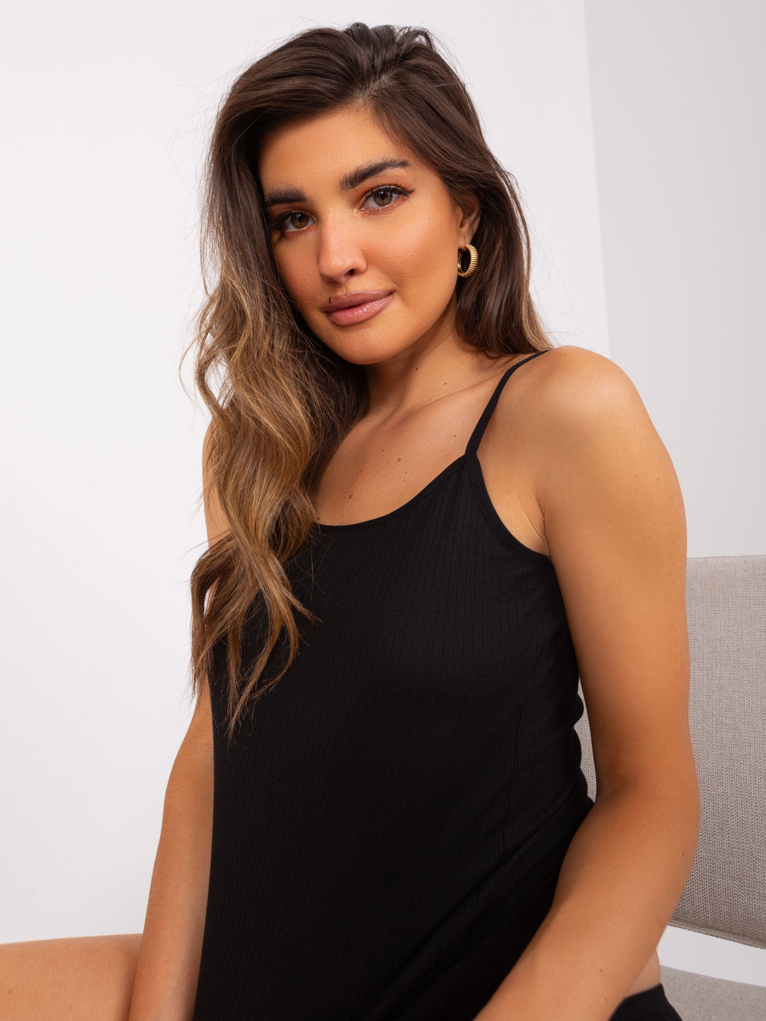 Czarny prążkowany komplet nocny z topem na ramiączkach .
