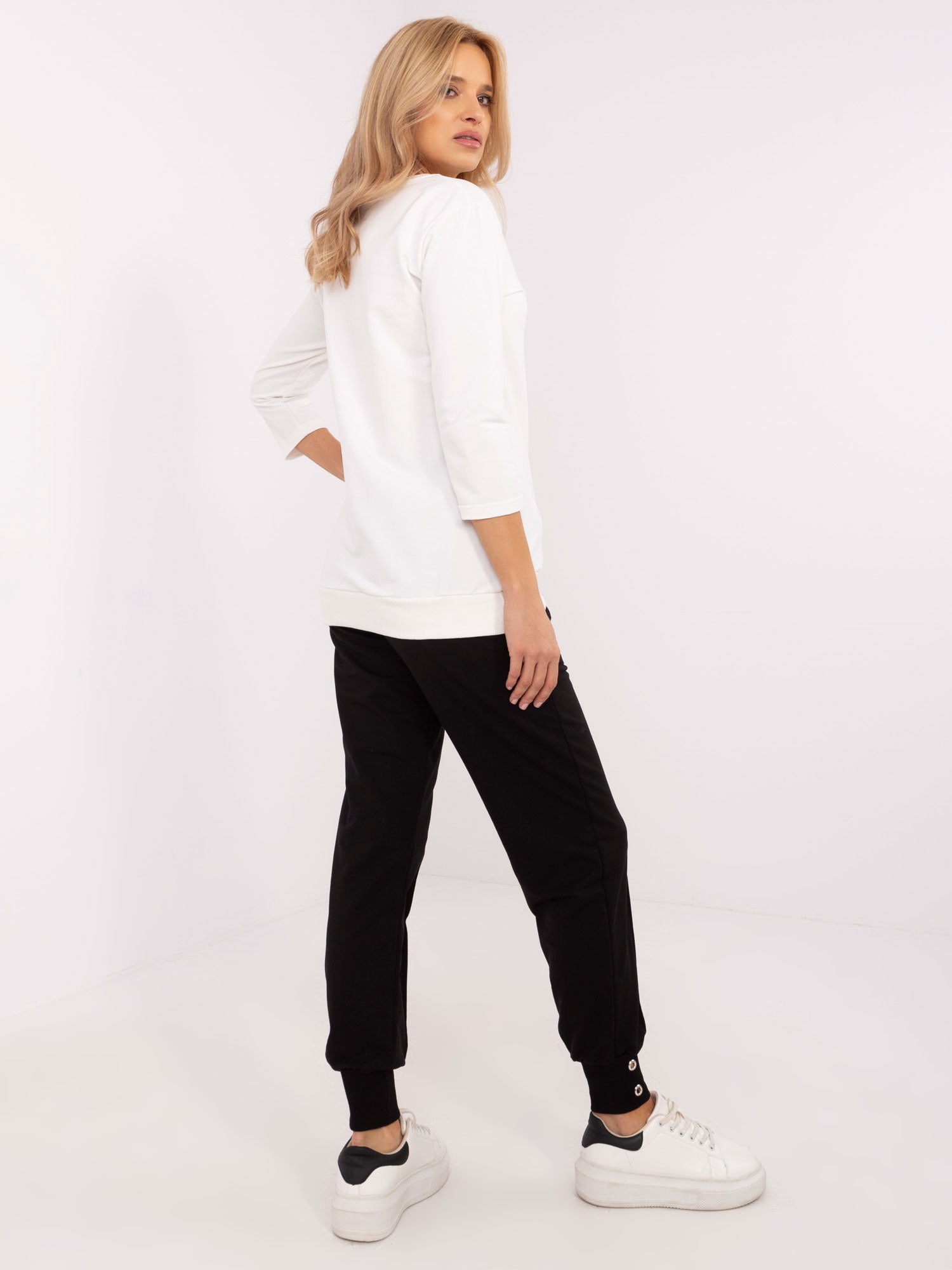 Wymiary kompletu w rozmiarze S mierzone na płasko: szerokość pod pachami - 50 cm, długość bluzy - 68 cm (przód), długość bluzy - 72 cm (tył), długość rękawa - 44,5 cm (od szwu), szerokość spodni w pasie - 34 cm, długość spodni - 99 cm.
