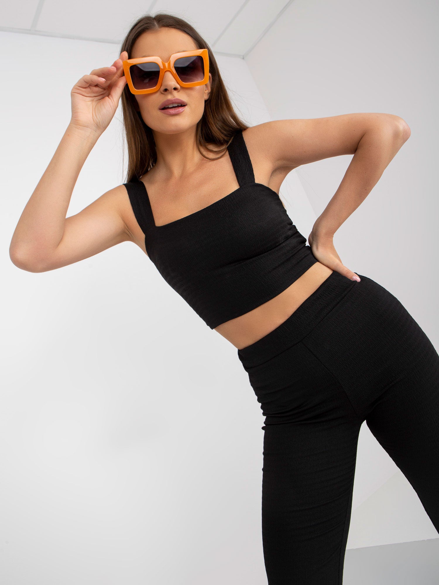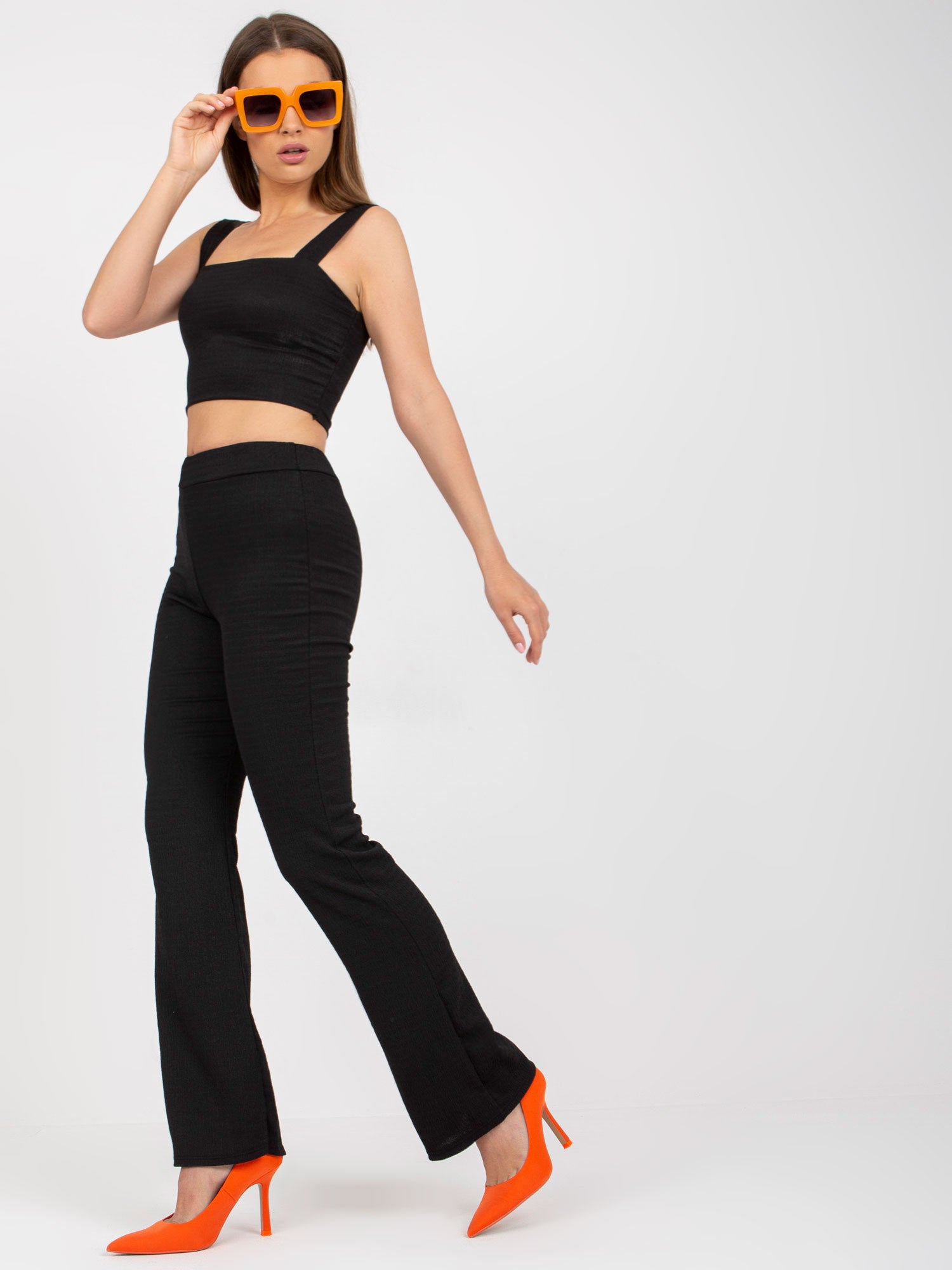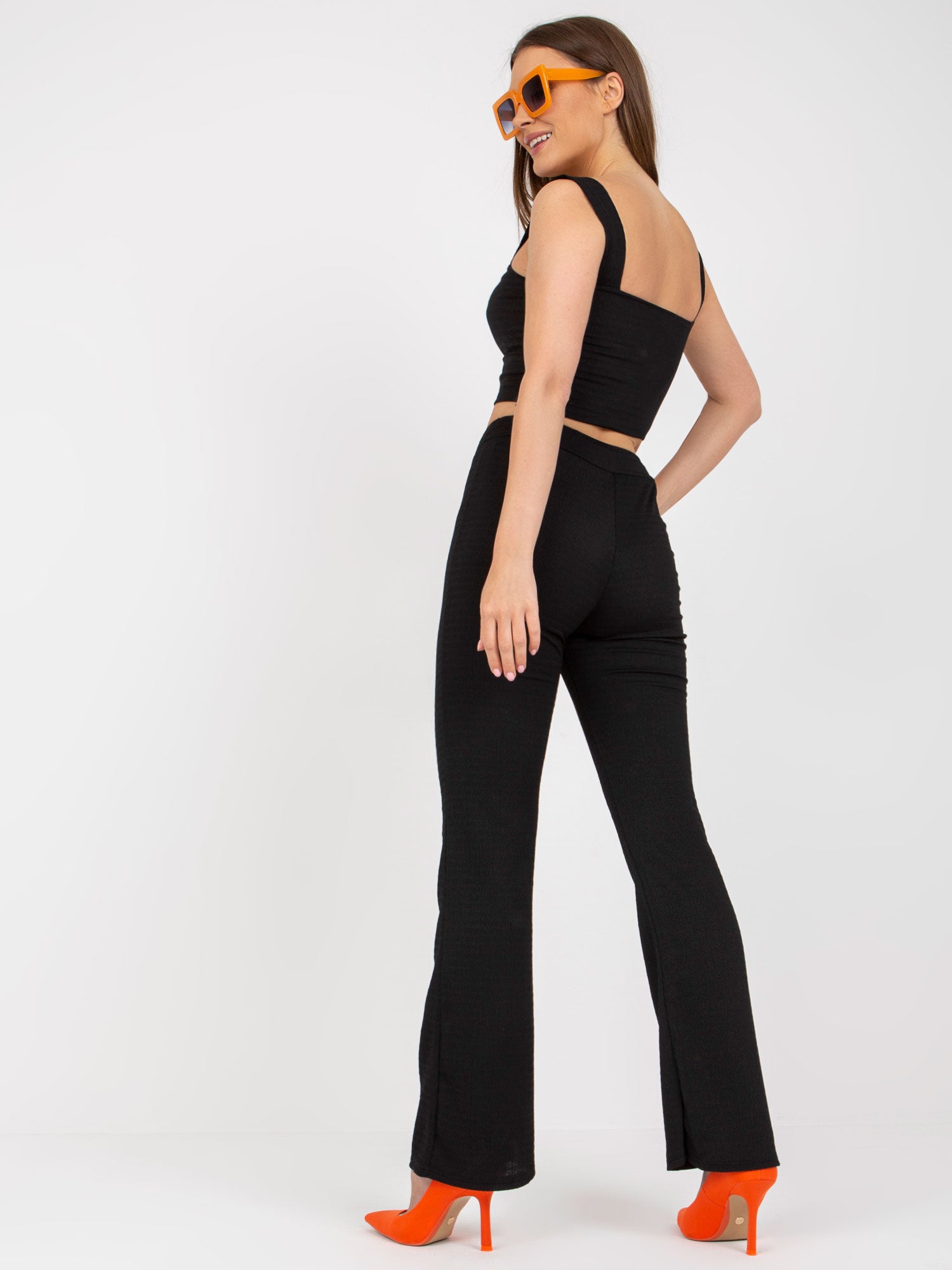Wymiary kompletu w rozmiarze one size mierzone na płasko: szerokość topu pod pachami - 37 cm, długość topu- 41 cm, szerokość spodni w pasie - 35 cm, wysokość stanu - 28 cm, długość spodni - 103 cm.