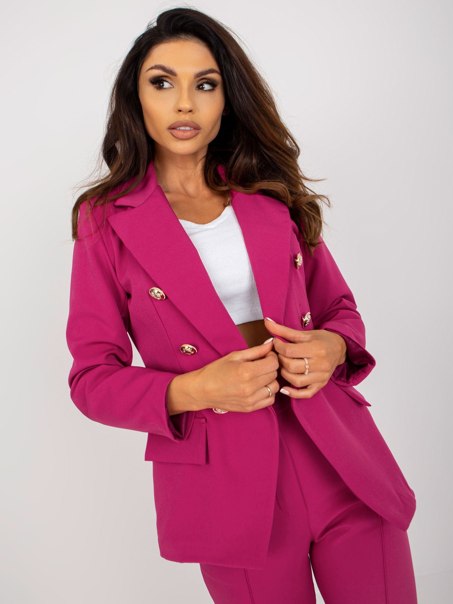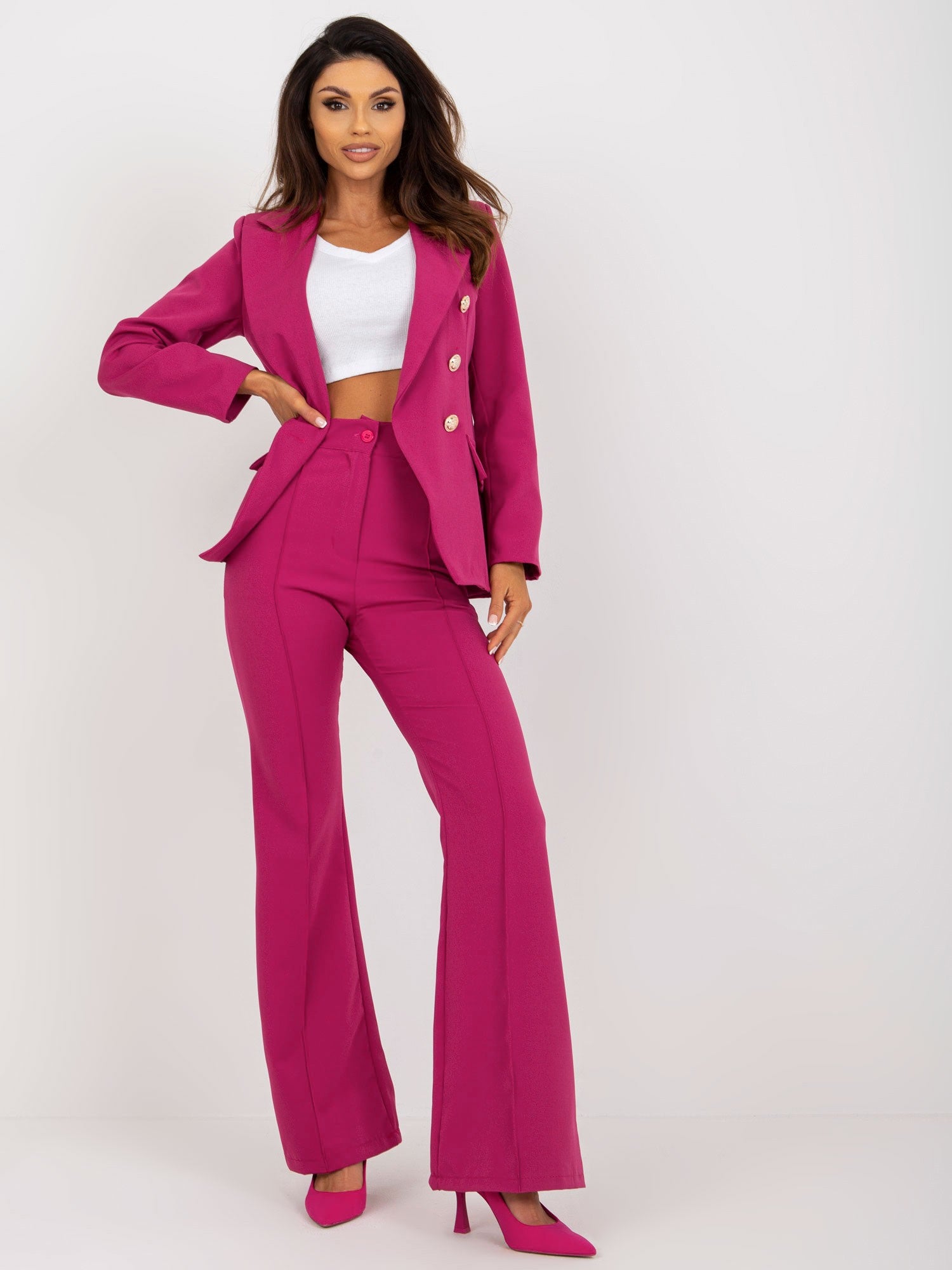 Wymiary kompletu w rozmiarze S mierzone na płasko: szerokość marynarki pod pachami - 48 cm, długość rękawa - 55 cm, długość marynarki - 62 cm, szerokość spodni w pasie - 35 cm, wysokość stanu - 32 cm, długość spodni - 110 cm.