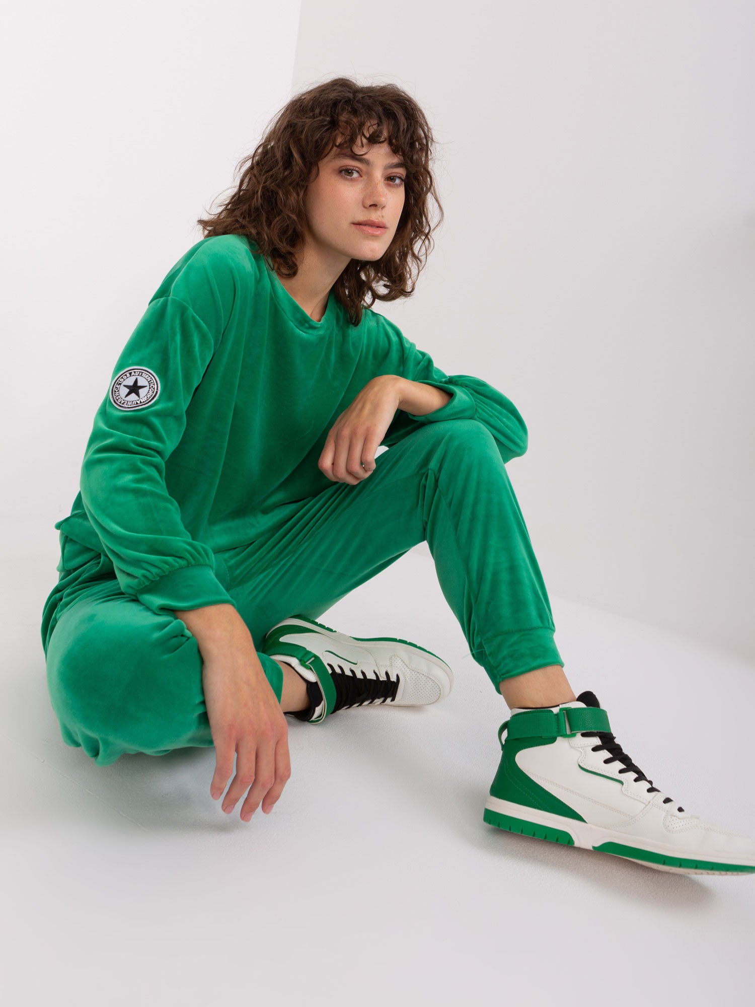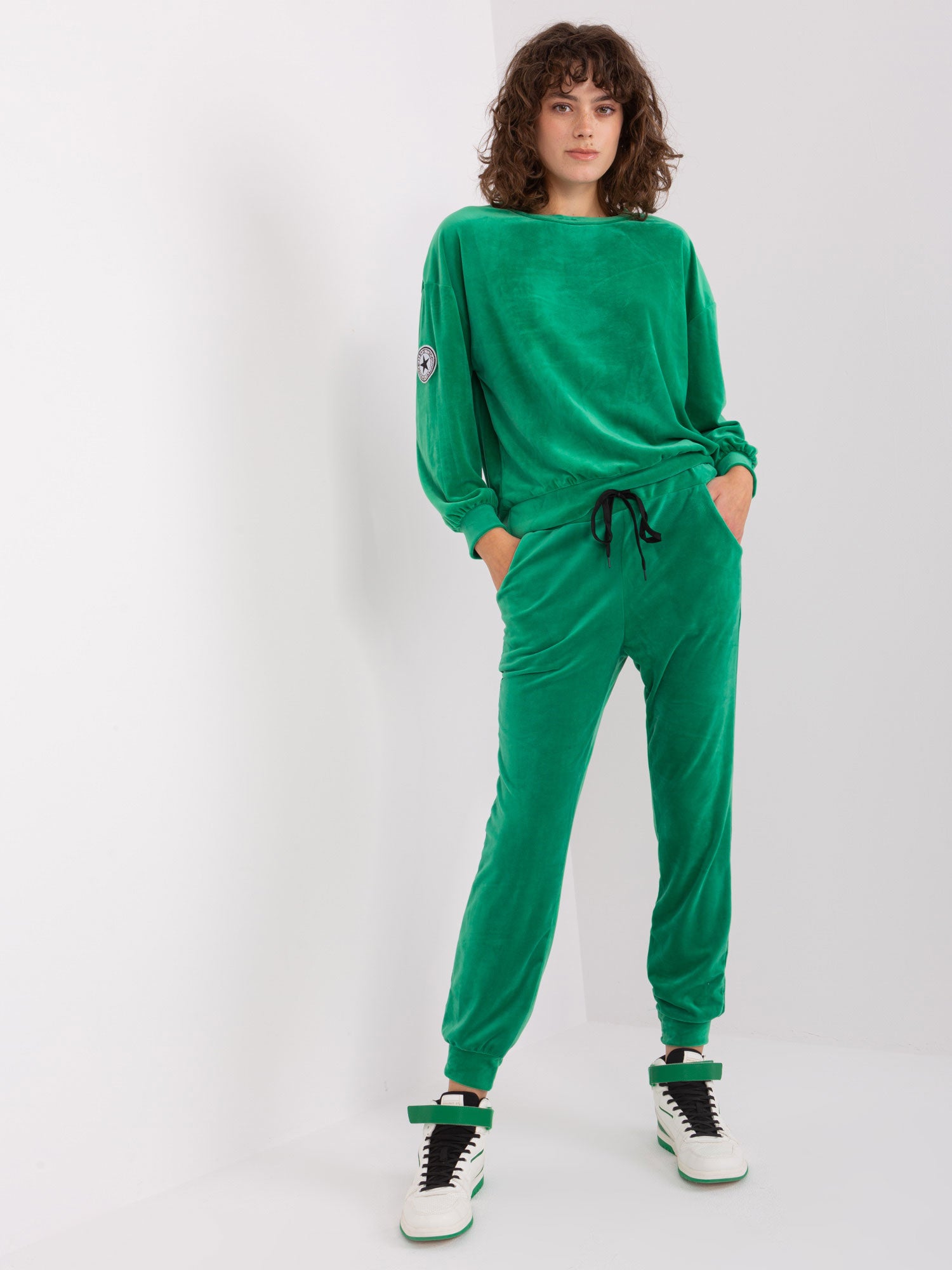 Wymiary kompletu w rozmiarze one size mierzone na płasko: szerokość pod pachami - 55 cm, długość rękawa - 52 cm, długość bluzy - 60 cm, szerokość w pasie - 37 cm, długość spodni - 94 cm.