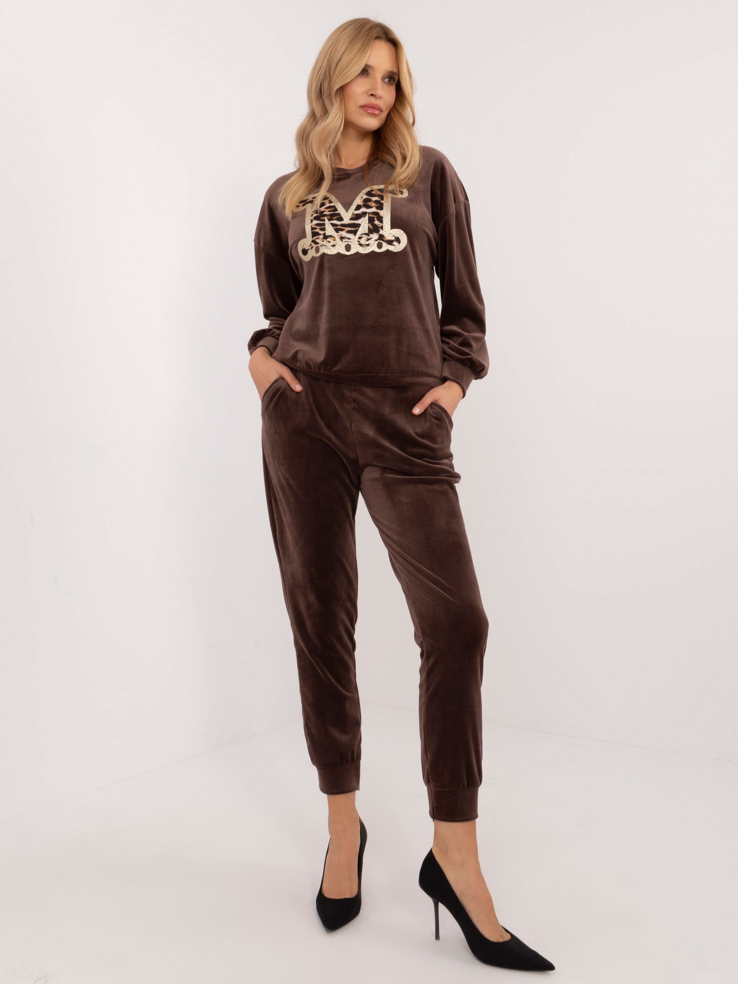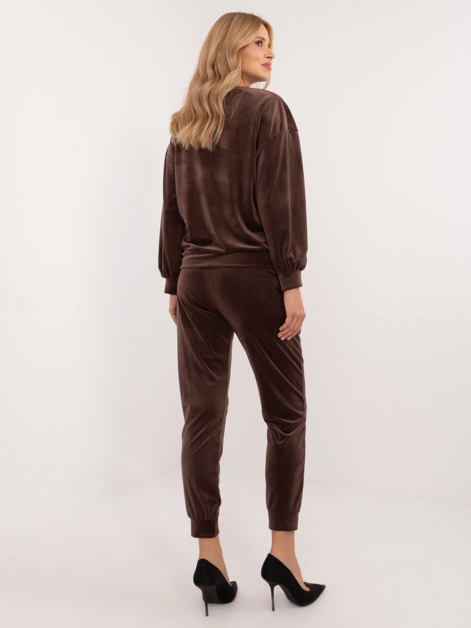 Wymiary kompletu w rozmiarze one size mierzone na płasko: szerokość pod pachami - 58 cm, długość bluzy - 61 cm, długość rękawa - 60 cm, szerokość spodni w pasie - 36 cm, długość spodni - 93 cm .