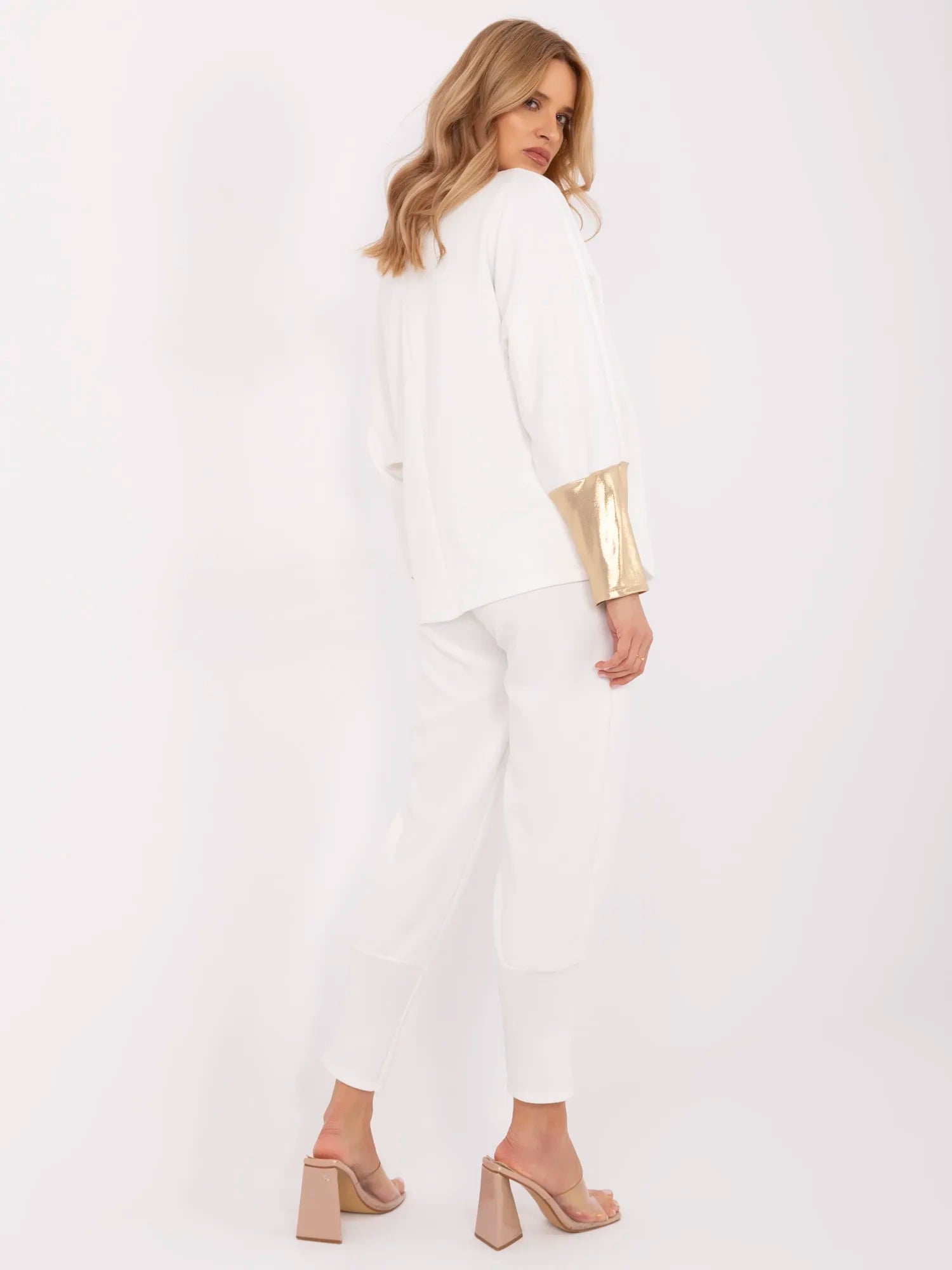 Wymiary bluzy w rozmiarze one size mierzone na płasko: szerokość pod pachami - 66 cm długość rękawa - 42 cm (od pachy), szerokość w biodrach - 56 cm, długość całkowita - 65 cm.