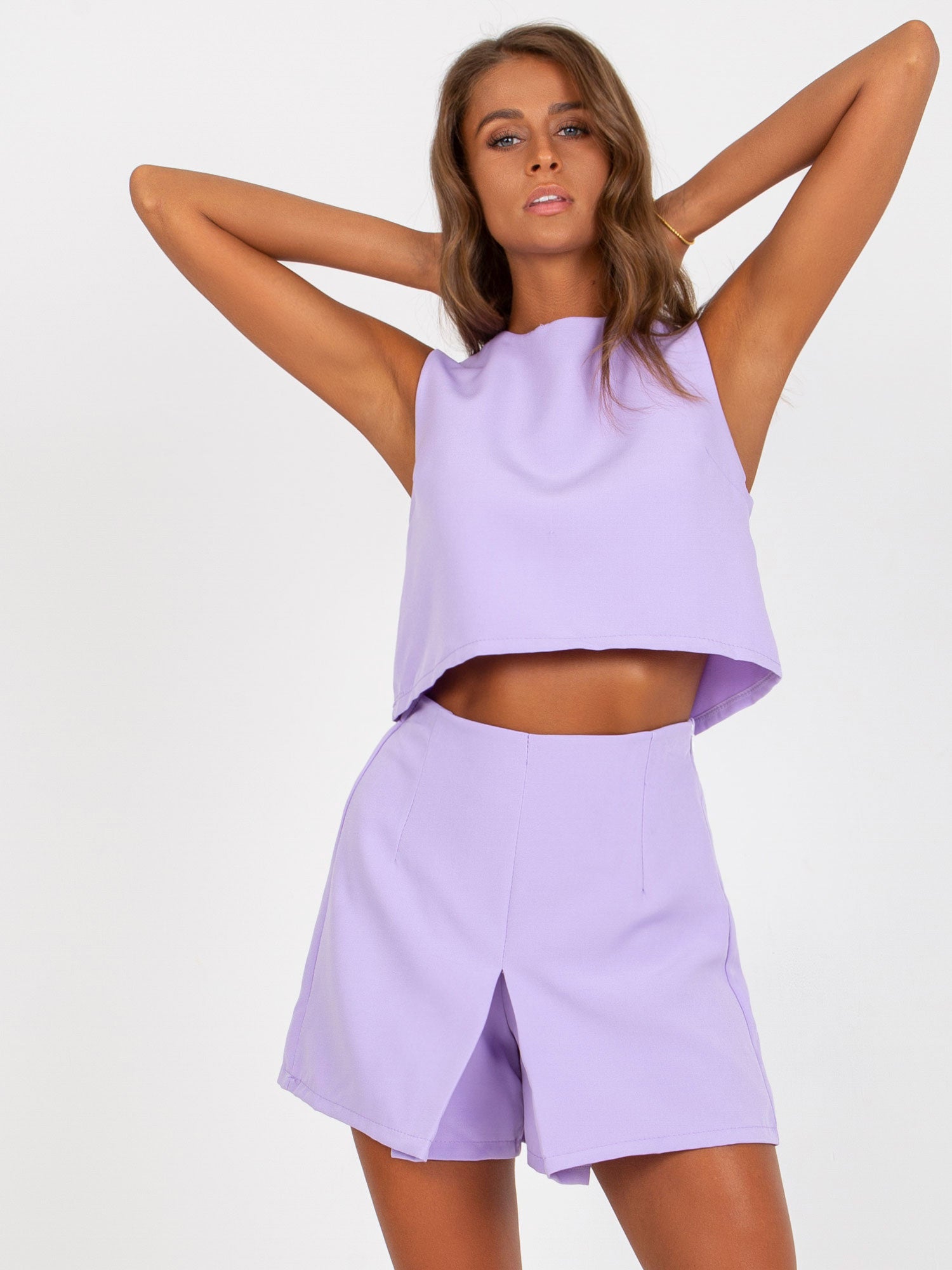 Jasnofioletowy damski komplet elegancki z topem .