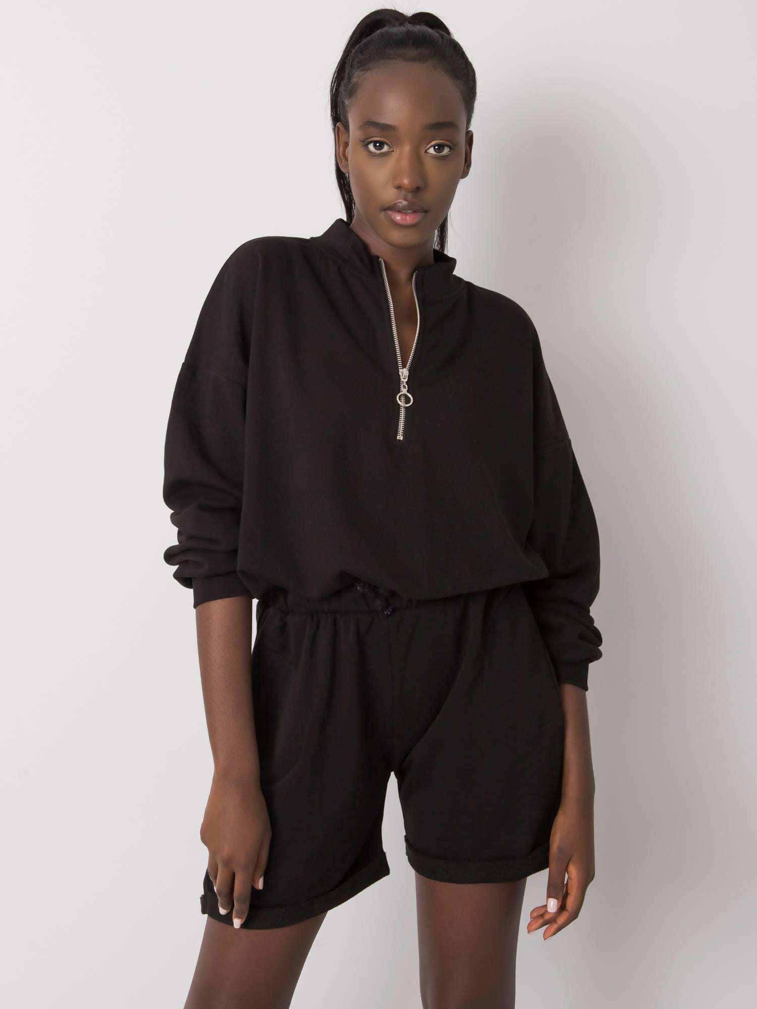 Czarny dresowy damski komplet.