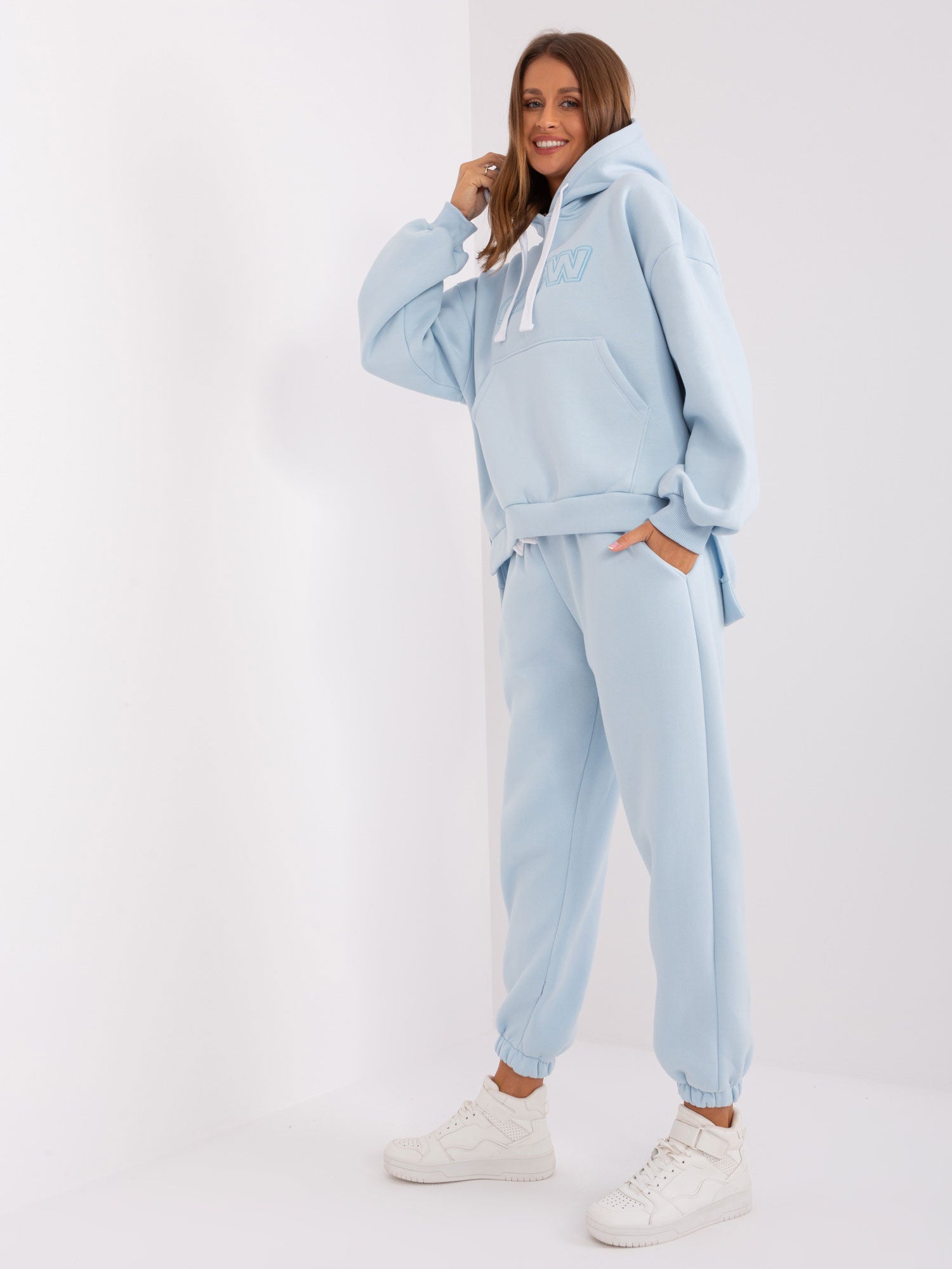 Jasnoniebieski komplet dresowy z bluzą kangurką.
