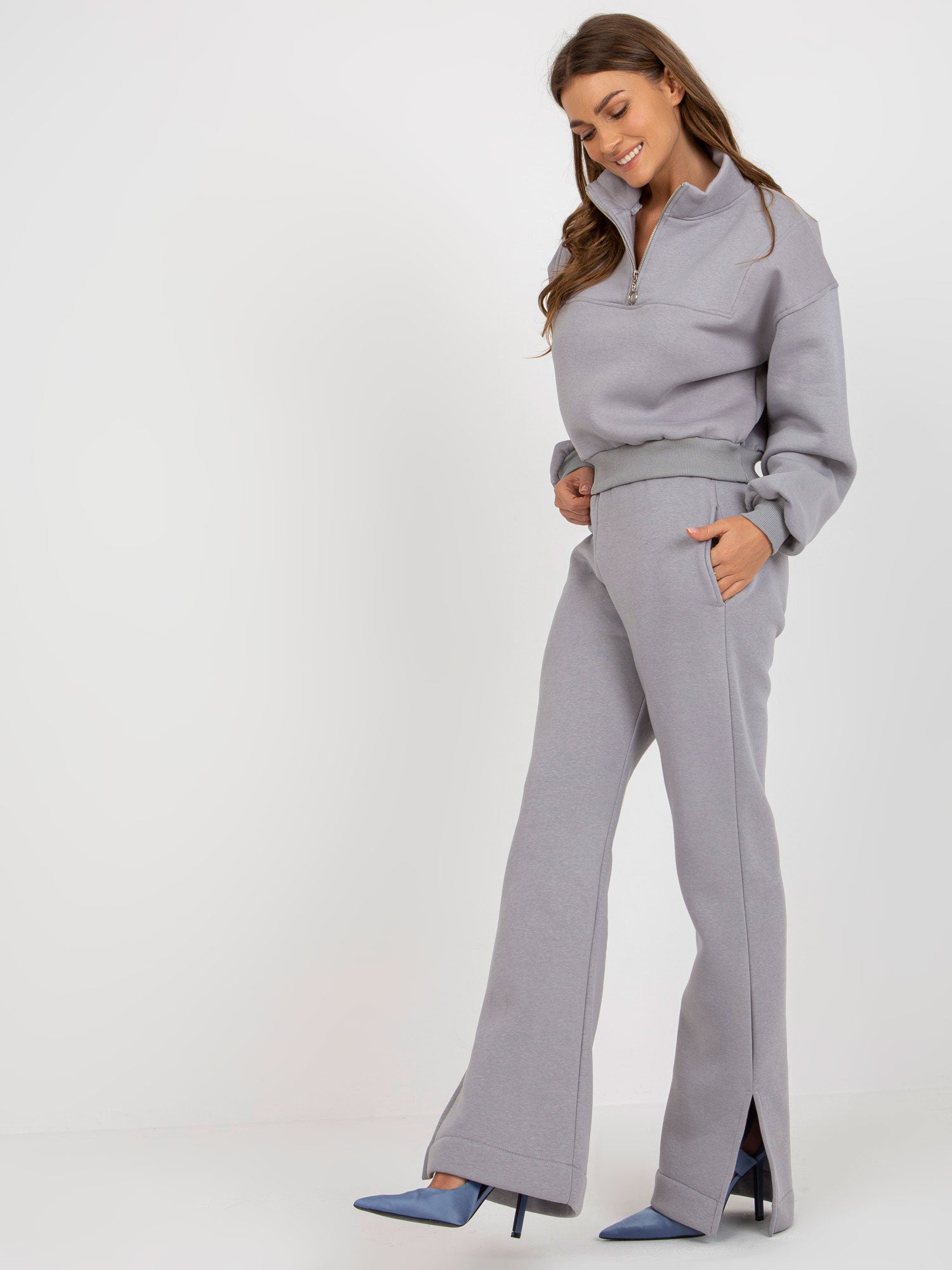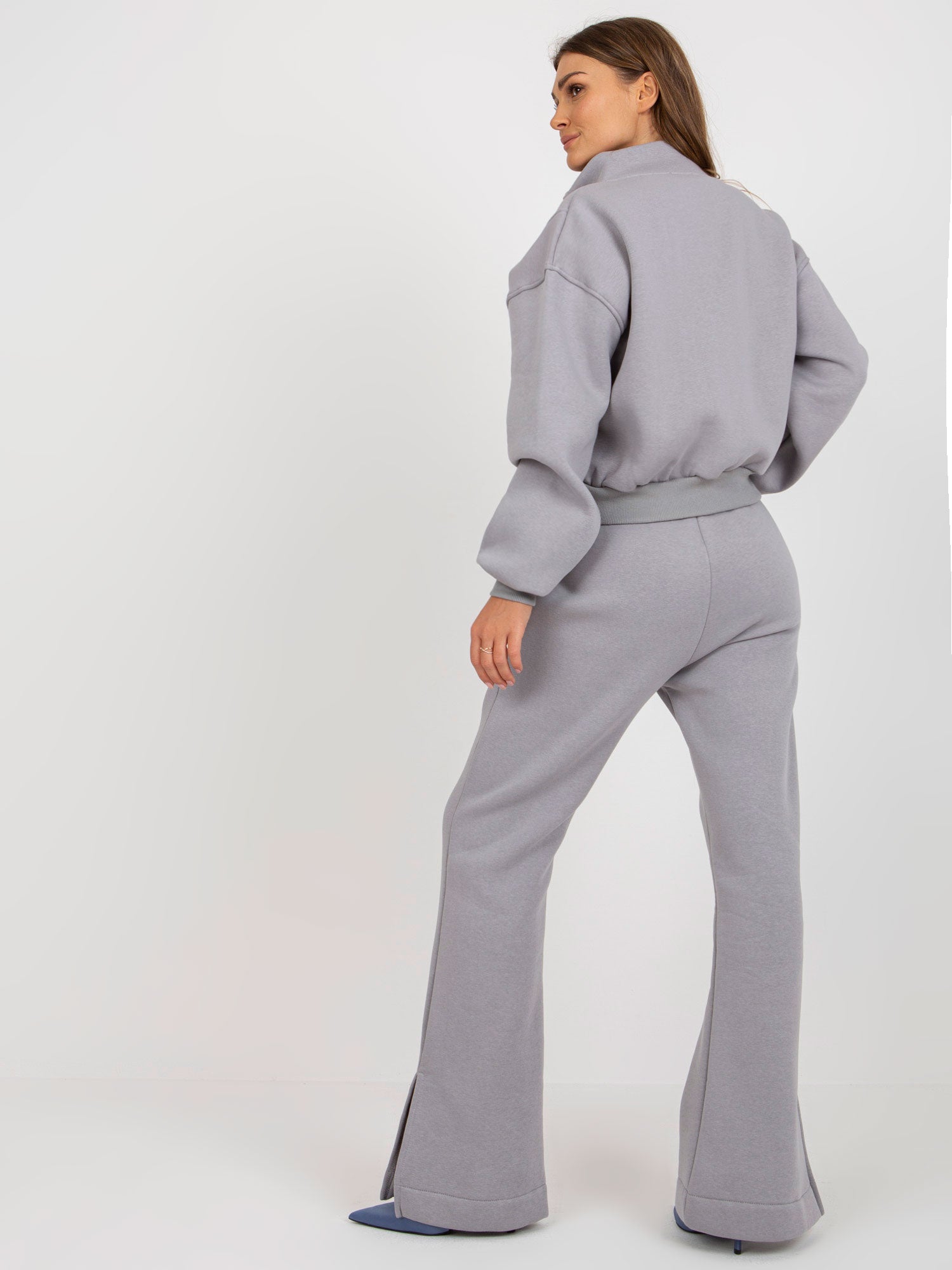 Szary dresowy komplet basic z bluzą z suwakiem .
