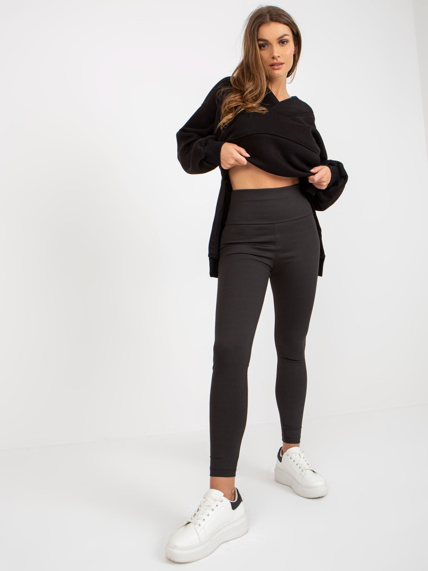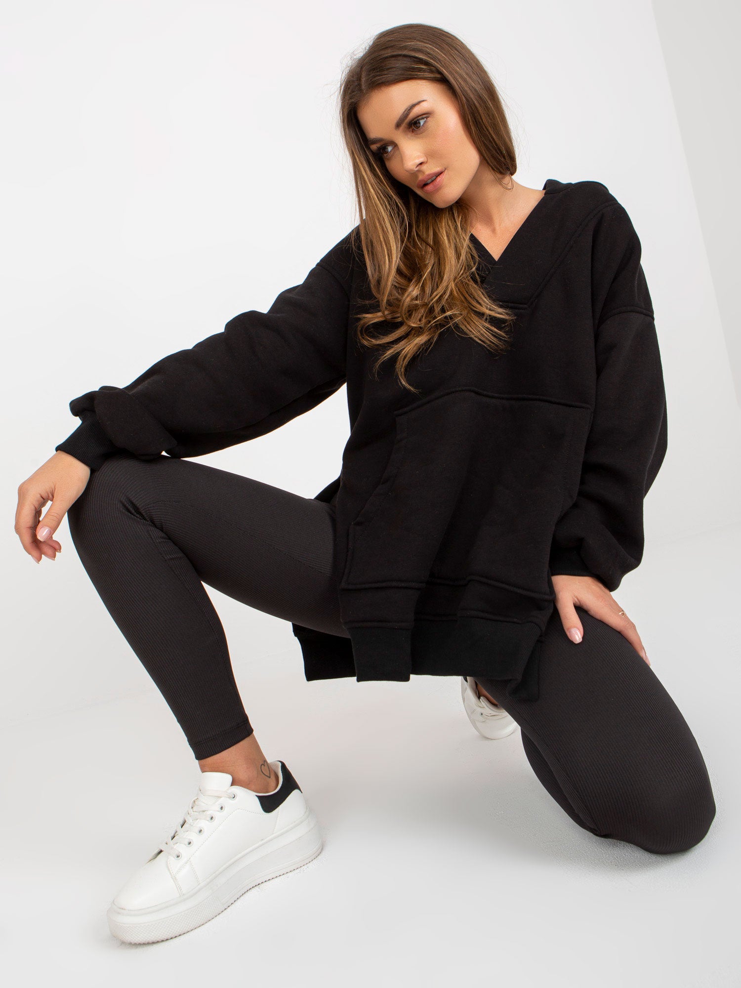 Czarny damski komplet dresowy z bluzą oversize .