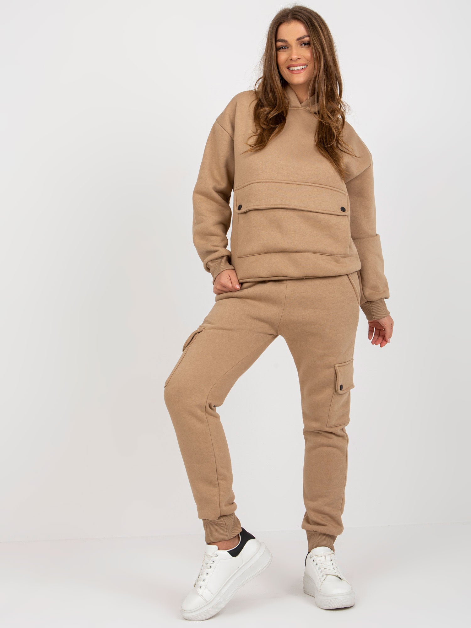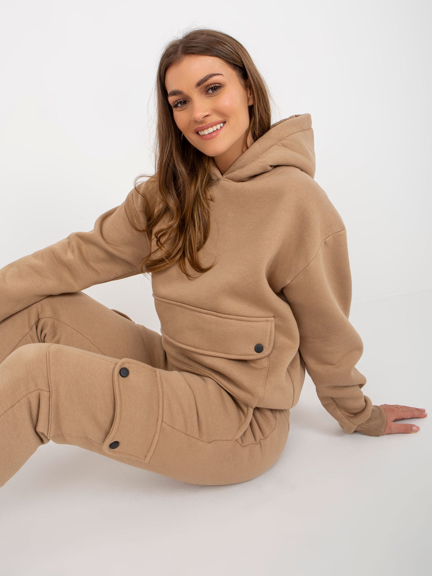 Ciemnobeżowy komplet dresowy z bluzą oversize .