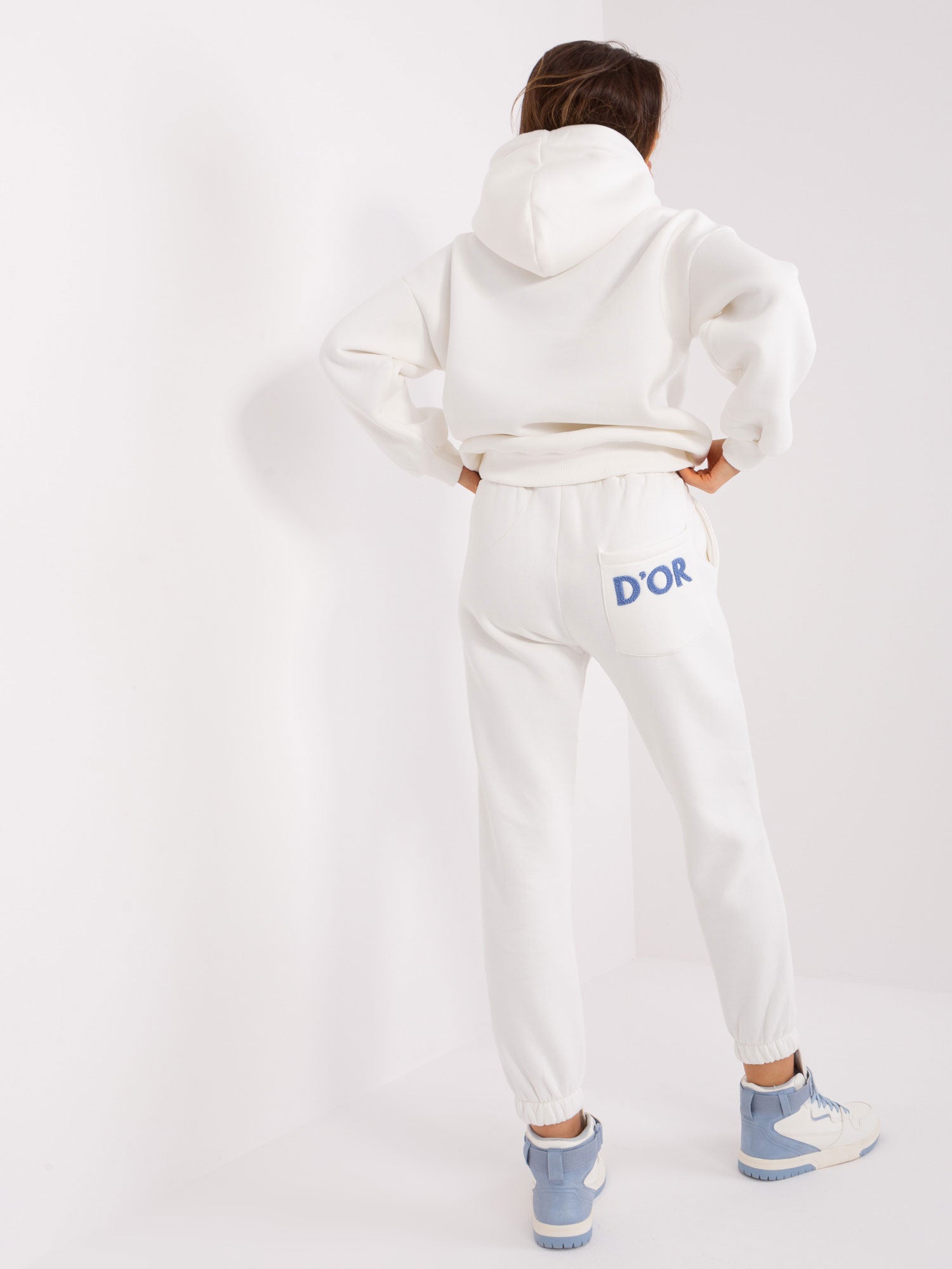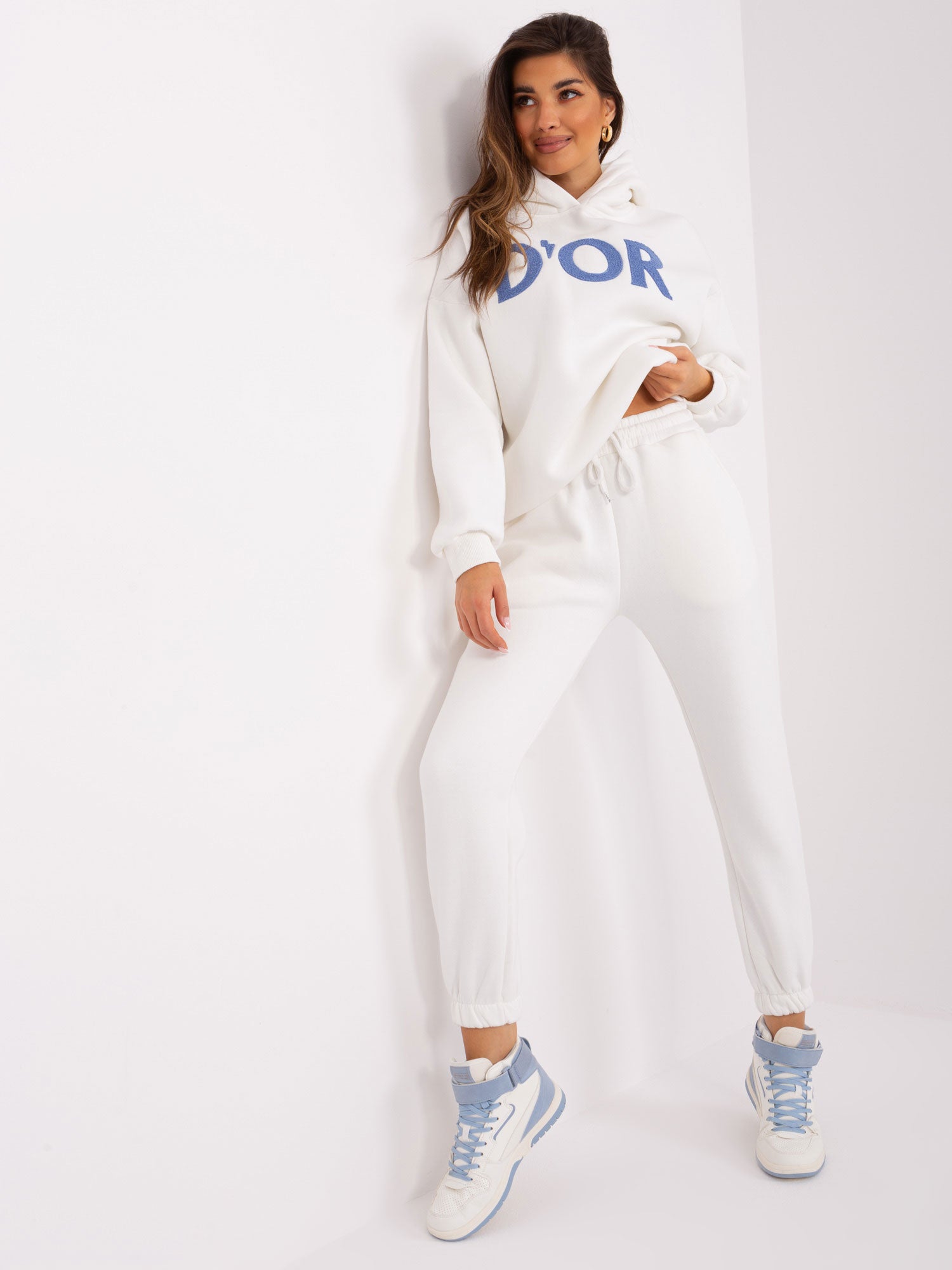 Ecru komplet dresowy dwuczęściowy z bluzą z napisem.