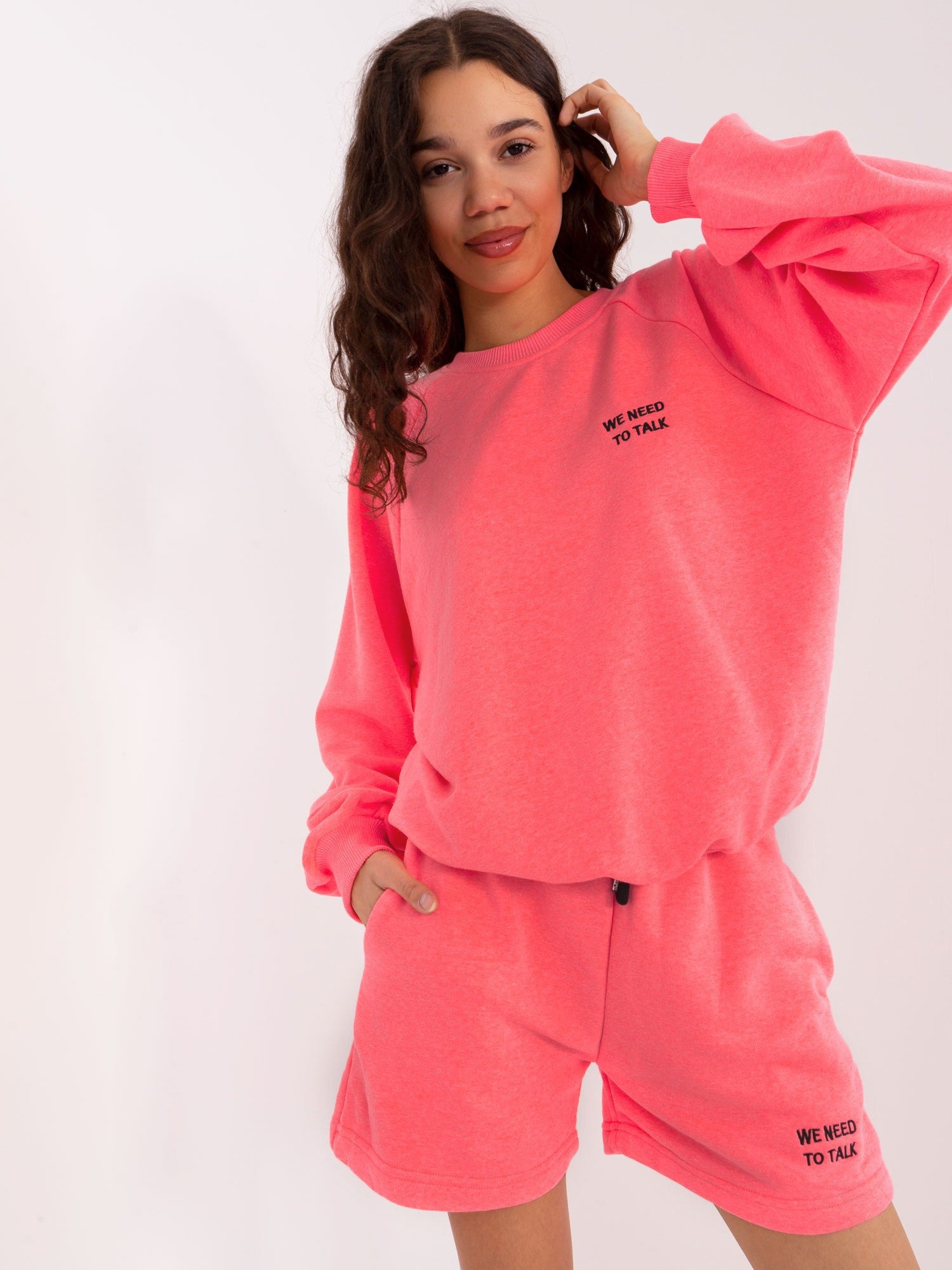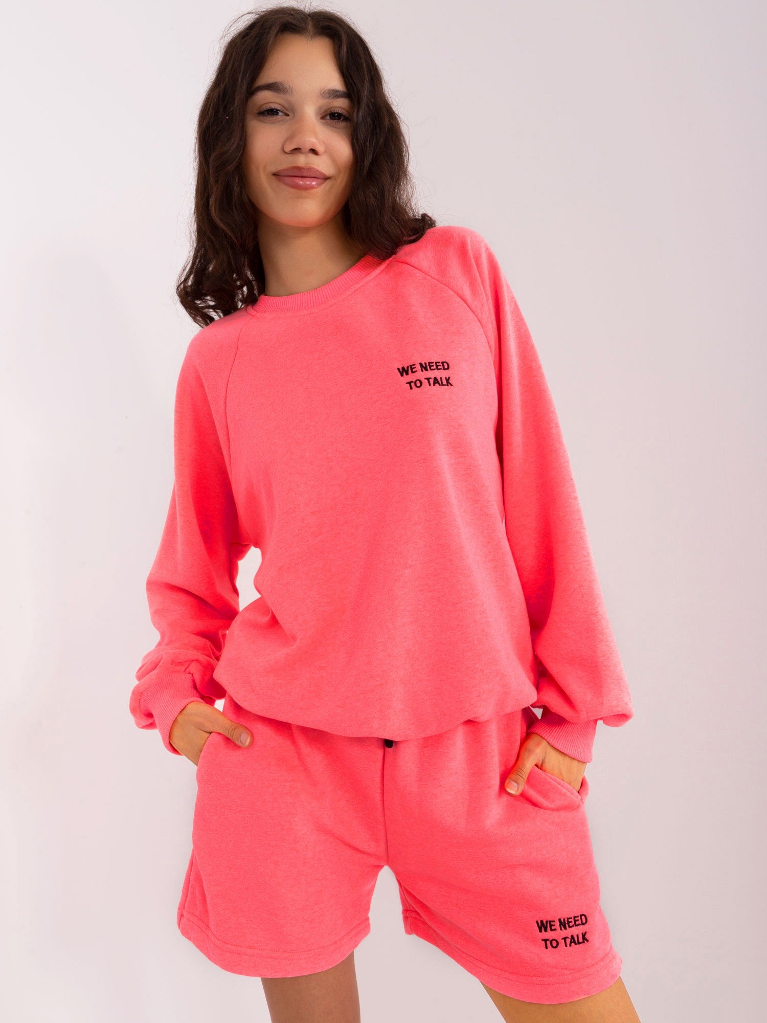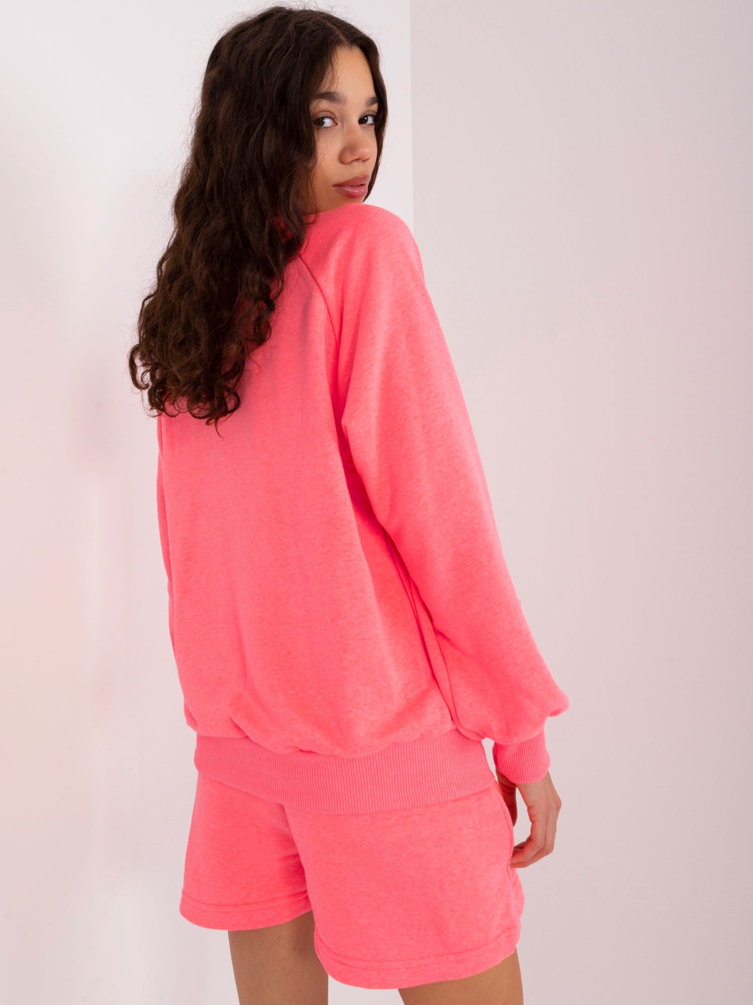 Fluo różowy komplet dresowy z bluzą oversize .