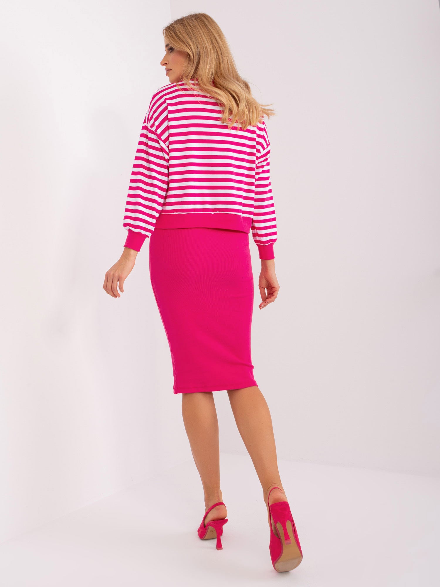 Fuksjowo-biały komplet basic z bluzką w paski .