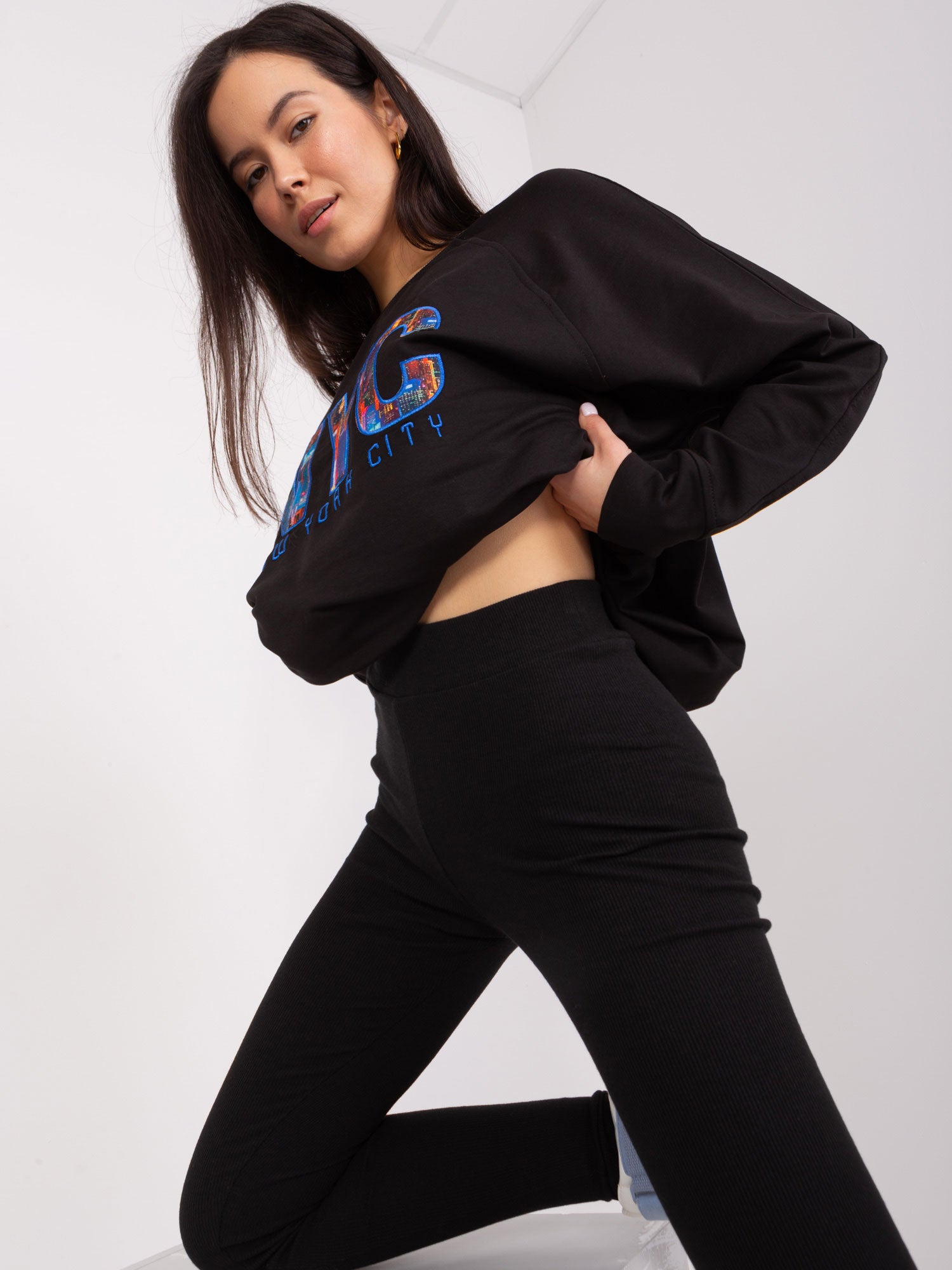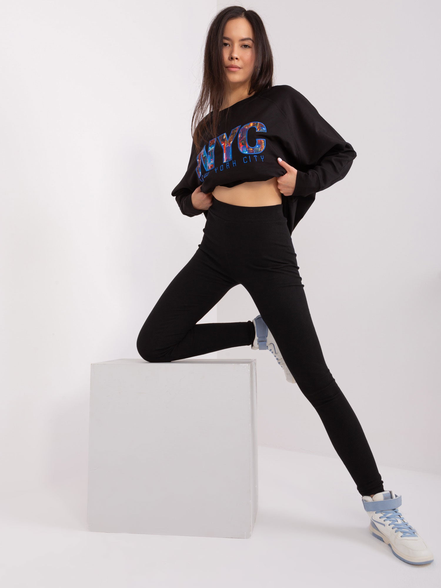 Wymiary kompletu w rozmiarze one size mierzone na płasko: szerokość bluzy pod pachami - 68 cm długość rękawa - 58 cm, długość bluzy - 80 cm, szerokość legginsów w pasie - 32 cm, wysokość stanu - 28 cm, długość legginsów - 98 cm.