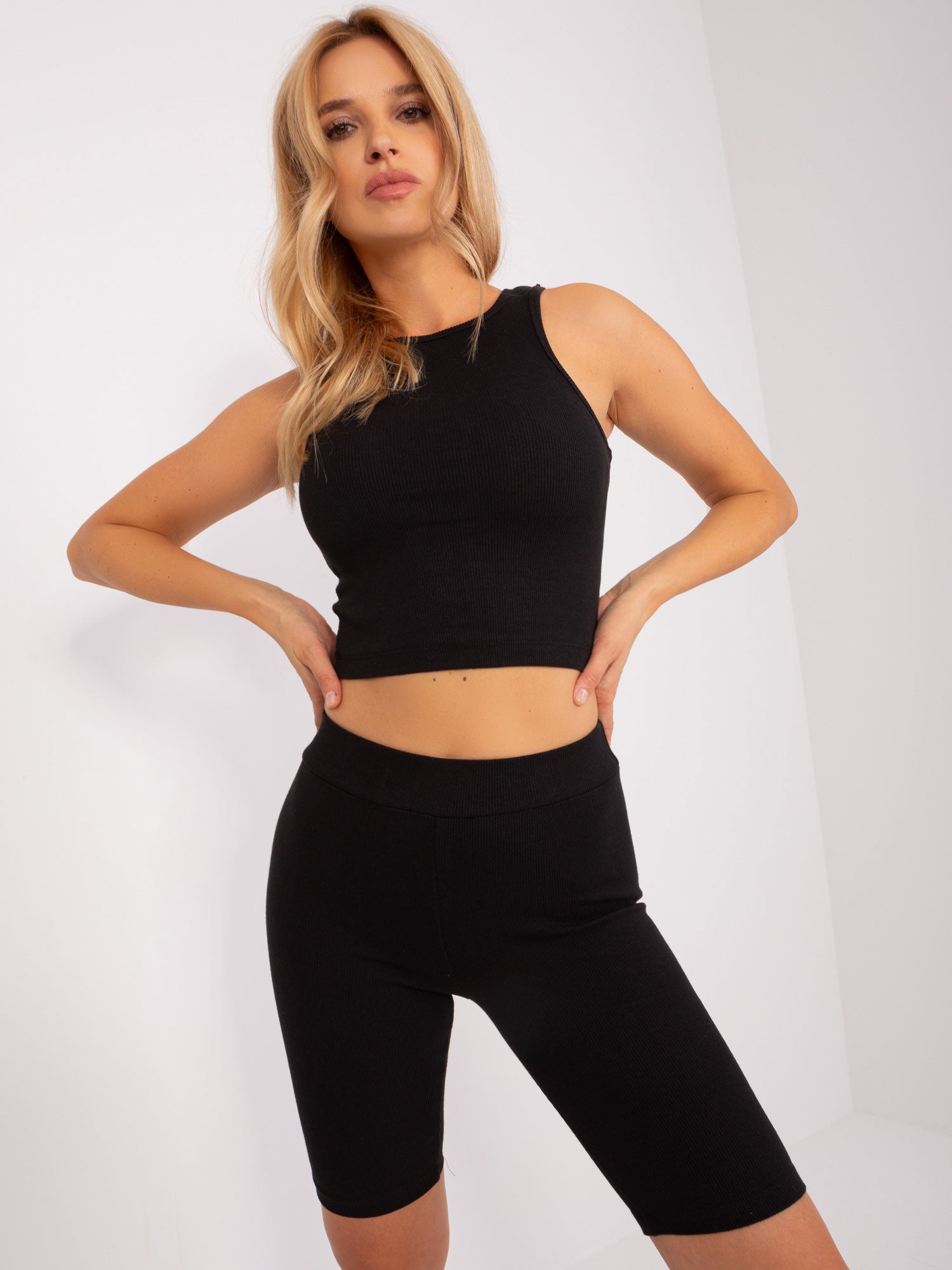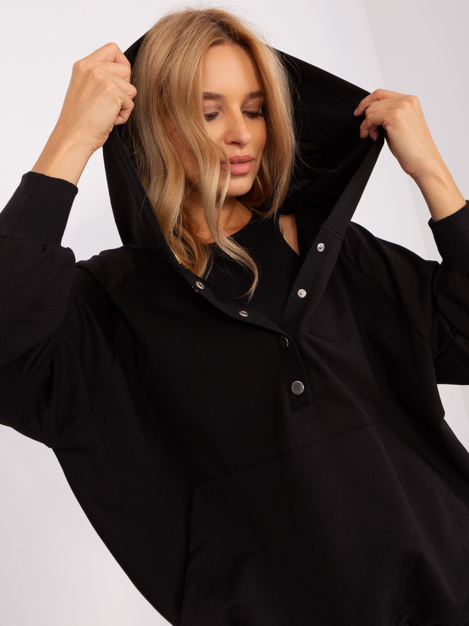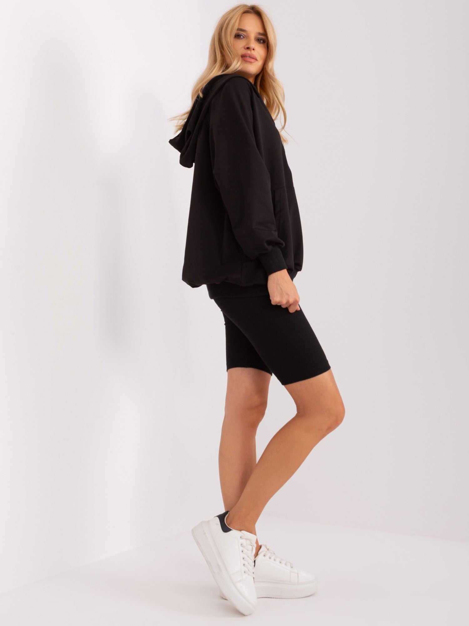 Czarny trzyczęściowy komplet casualowy z szeroką bluzą.