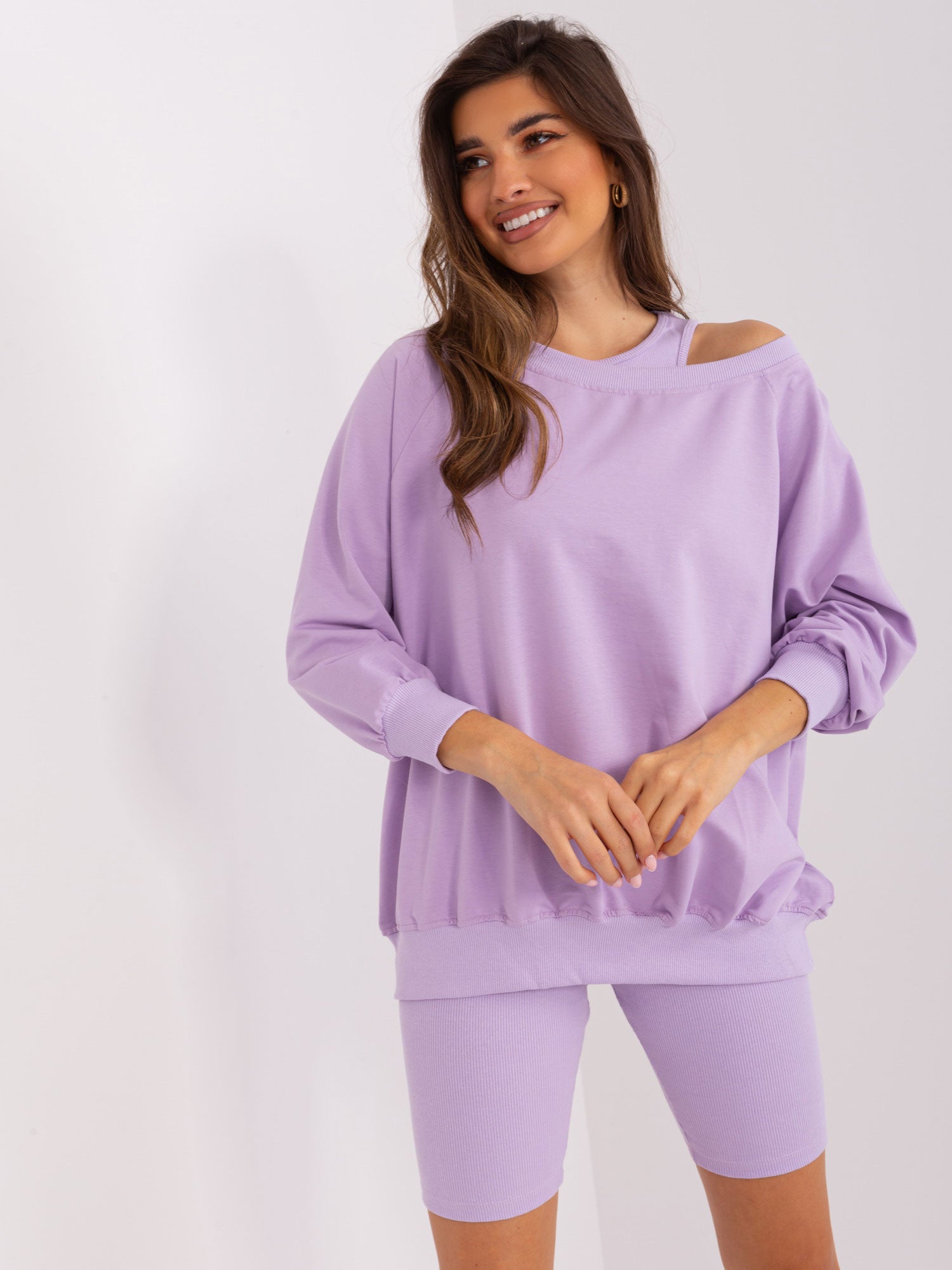 Jasnofioletowy komplet casualowy bawełniany.