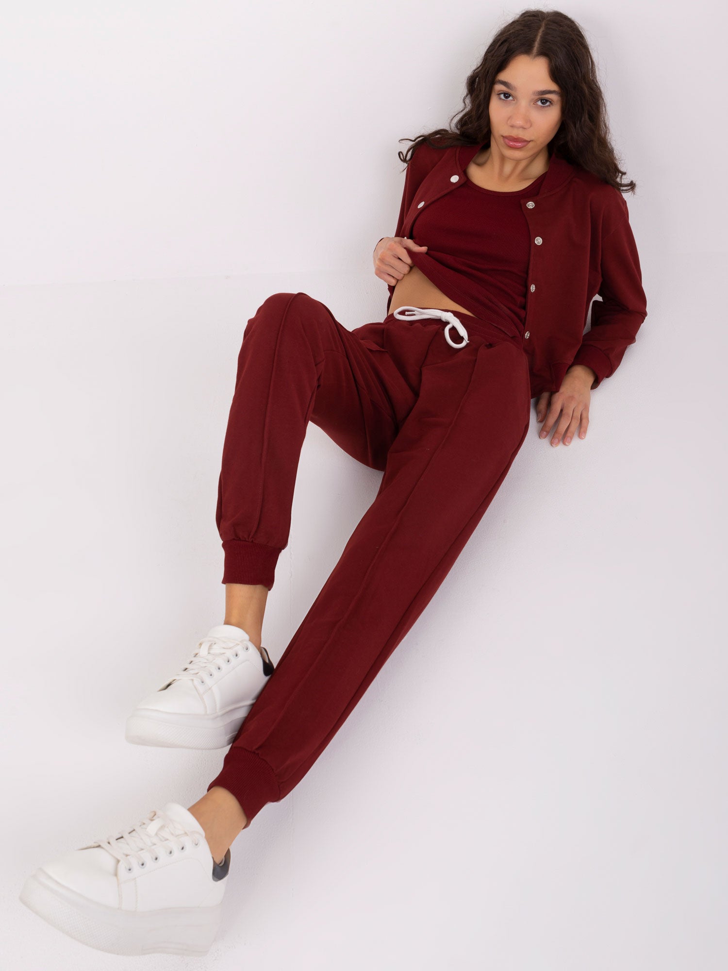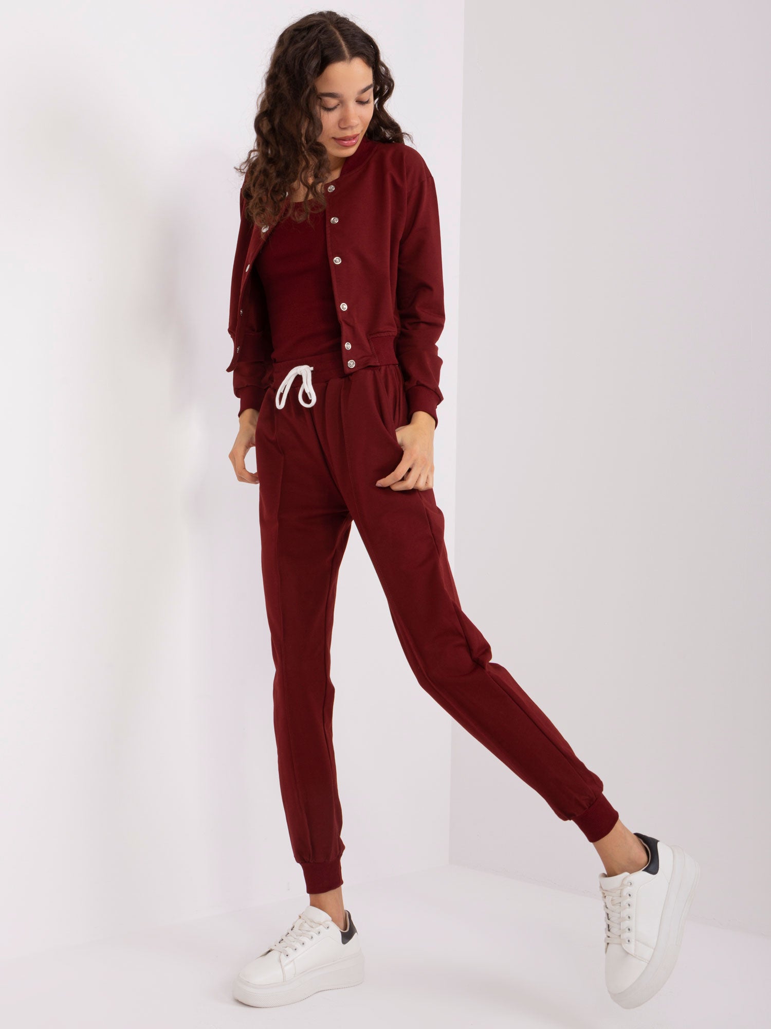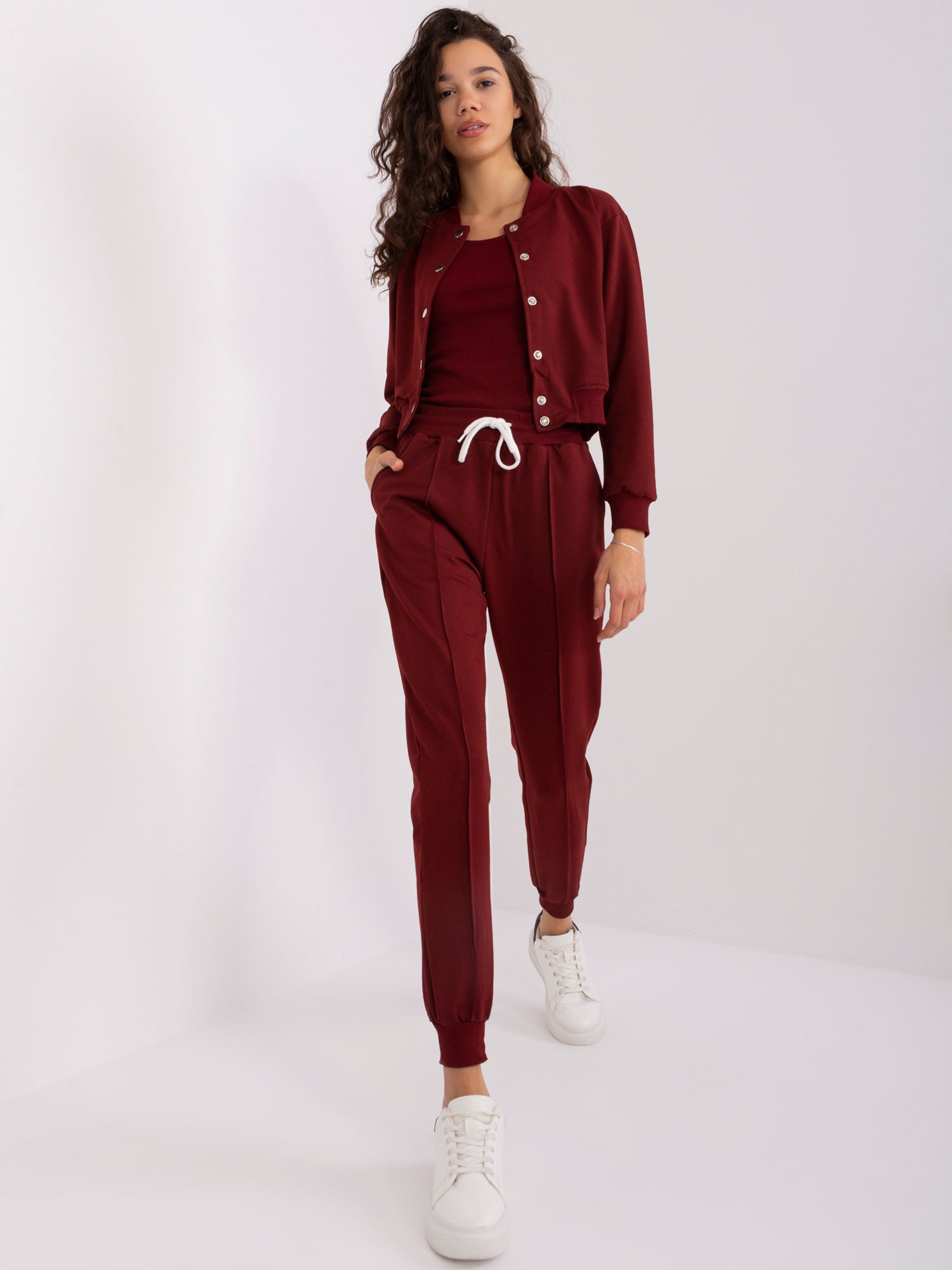 Bordowy damski komplet dresowy z bluzą bomberką .