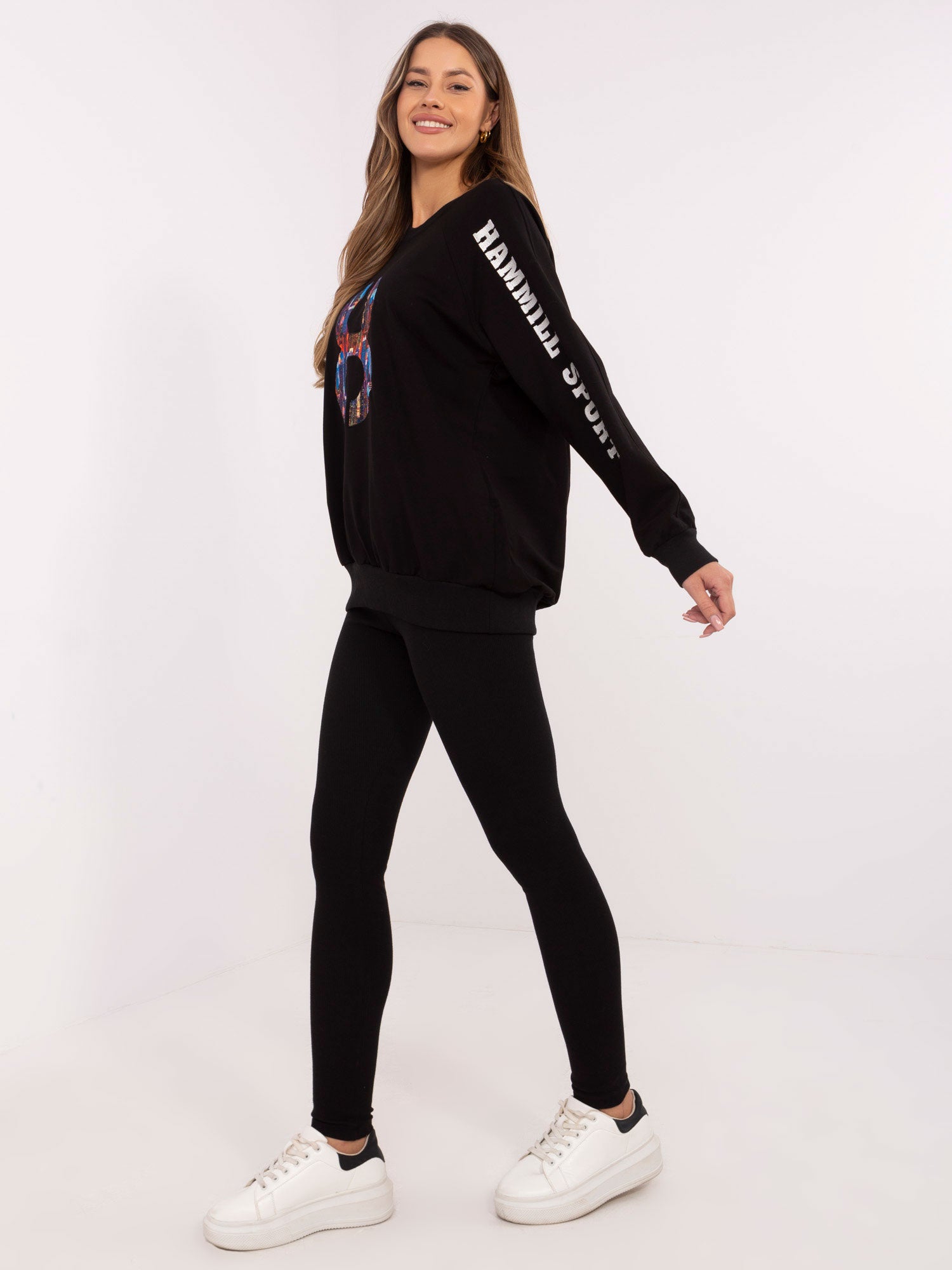 skład materiału bluzy: 72% bawełna, 22% poliester, 6% elastan; skład materiału legginsów: 90% bawełna, 10% elastan