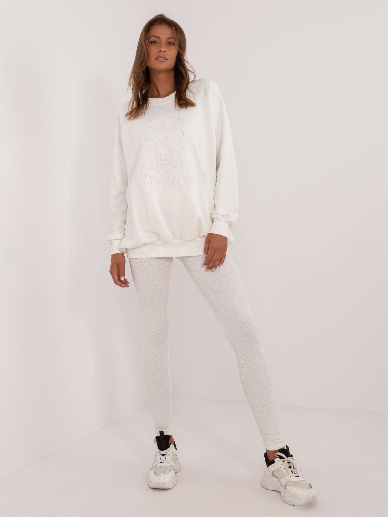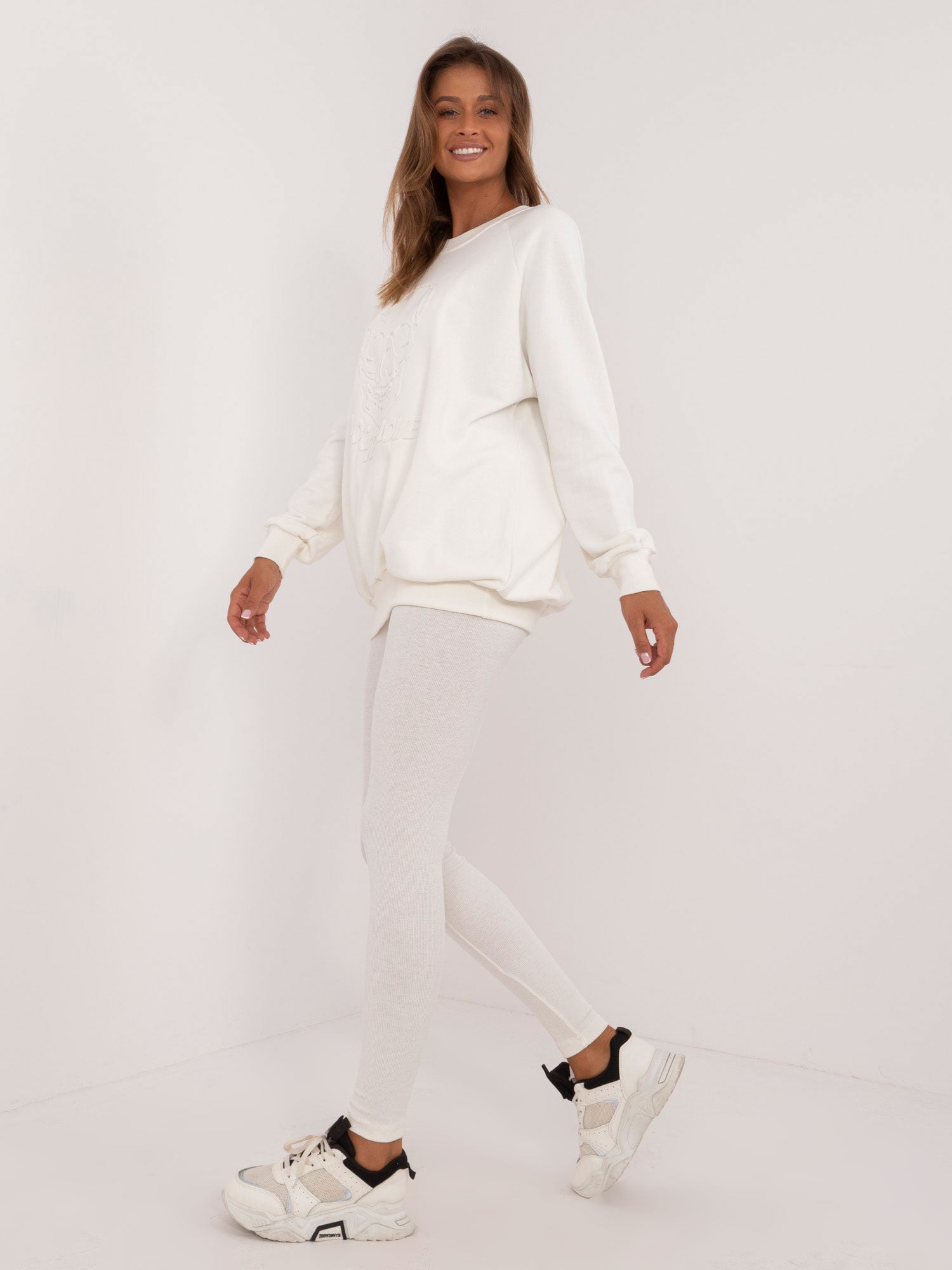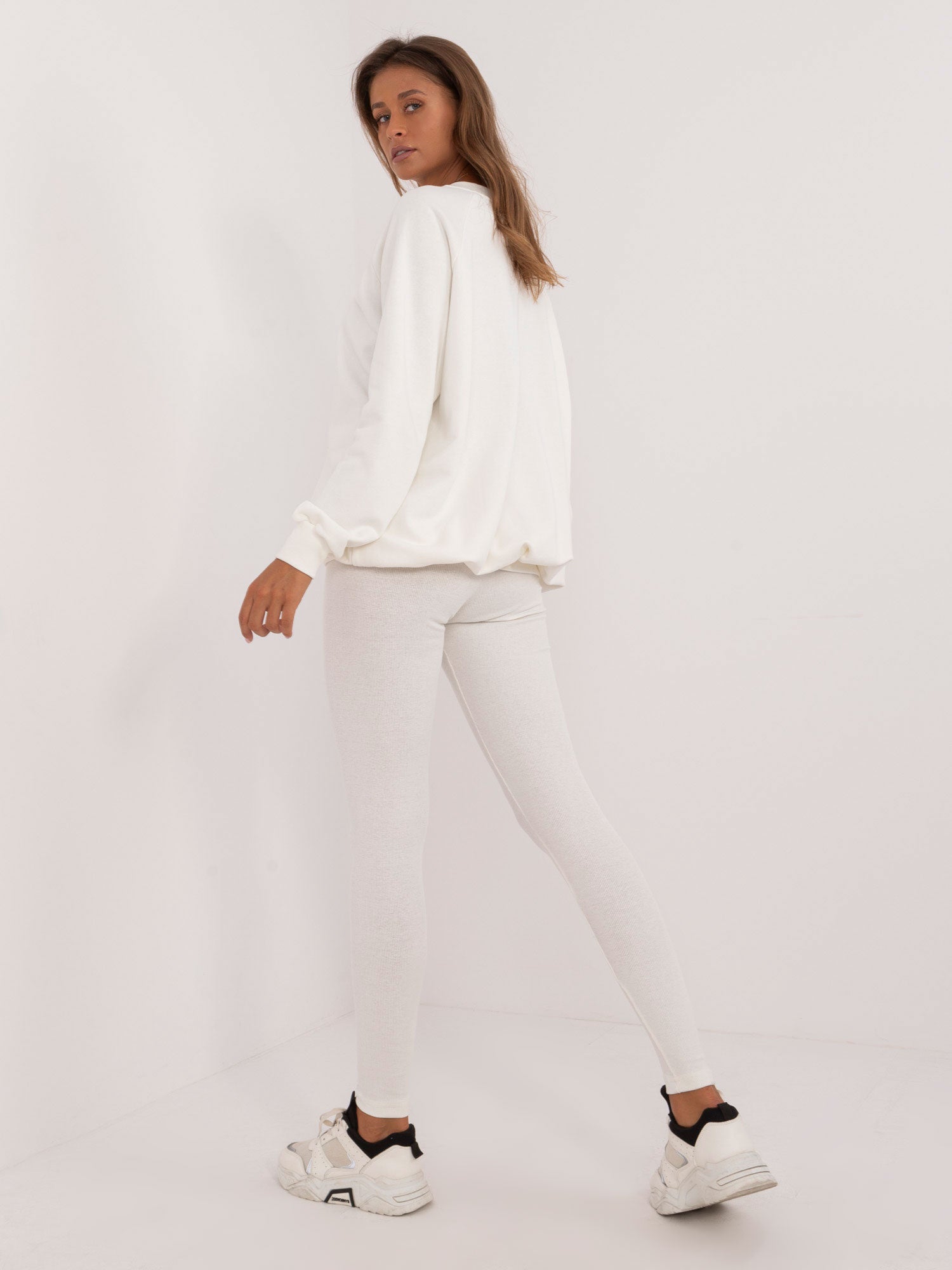 Wymiary kompletu w rozmiarze one size mierzone na płasko: szerokość bluzy pod pachami - 70 cm, długość bluzy - 74 cm, długość rękawa - 64 cm, szerokość legginsów w pasie - 30 cm, wysokość stanu - 28 cm, długość legginsów - 98 cm.