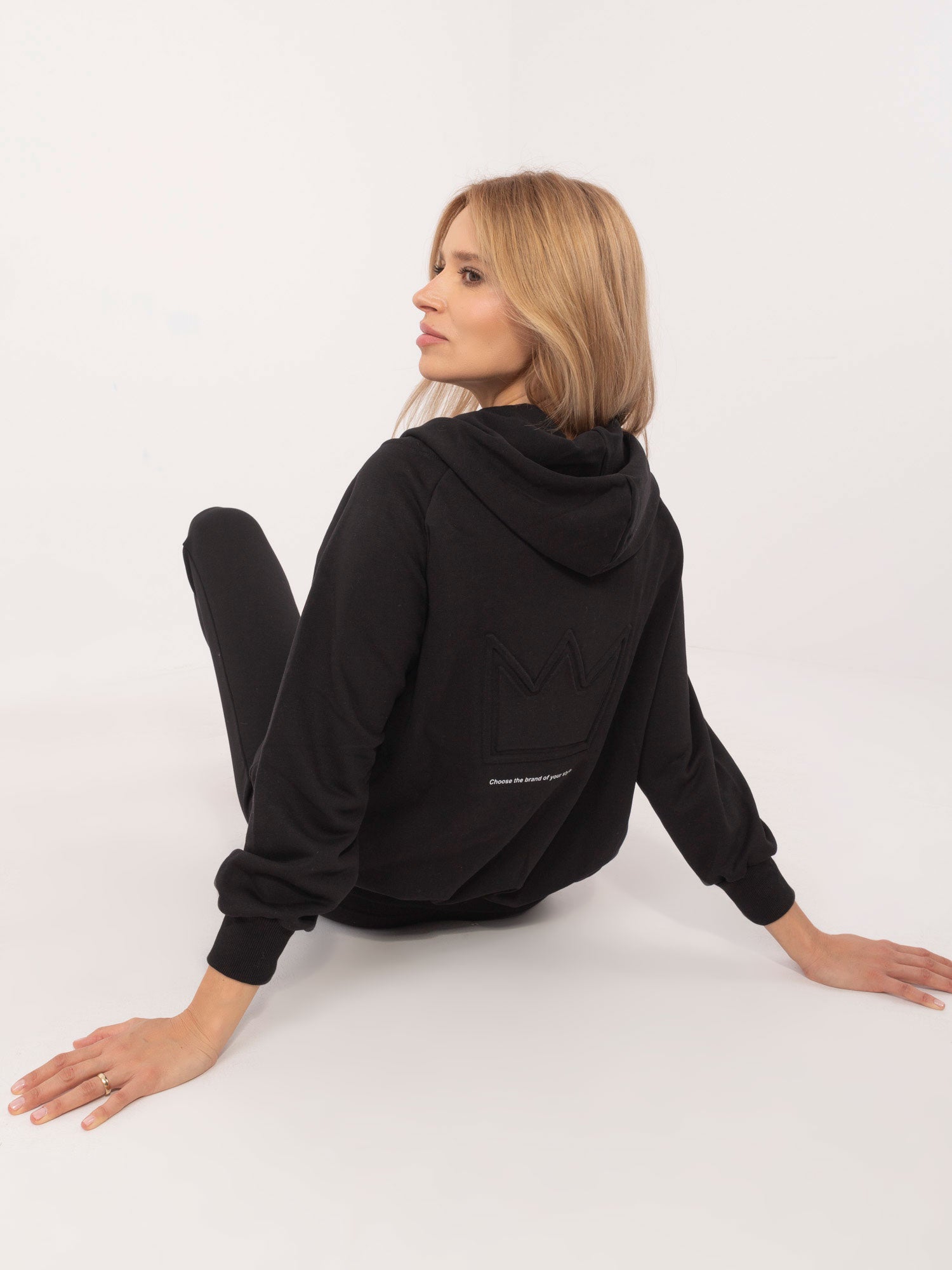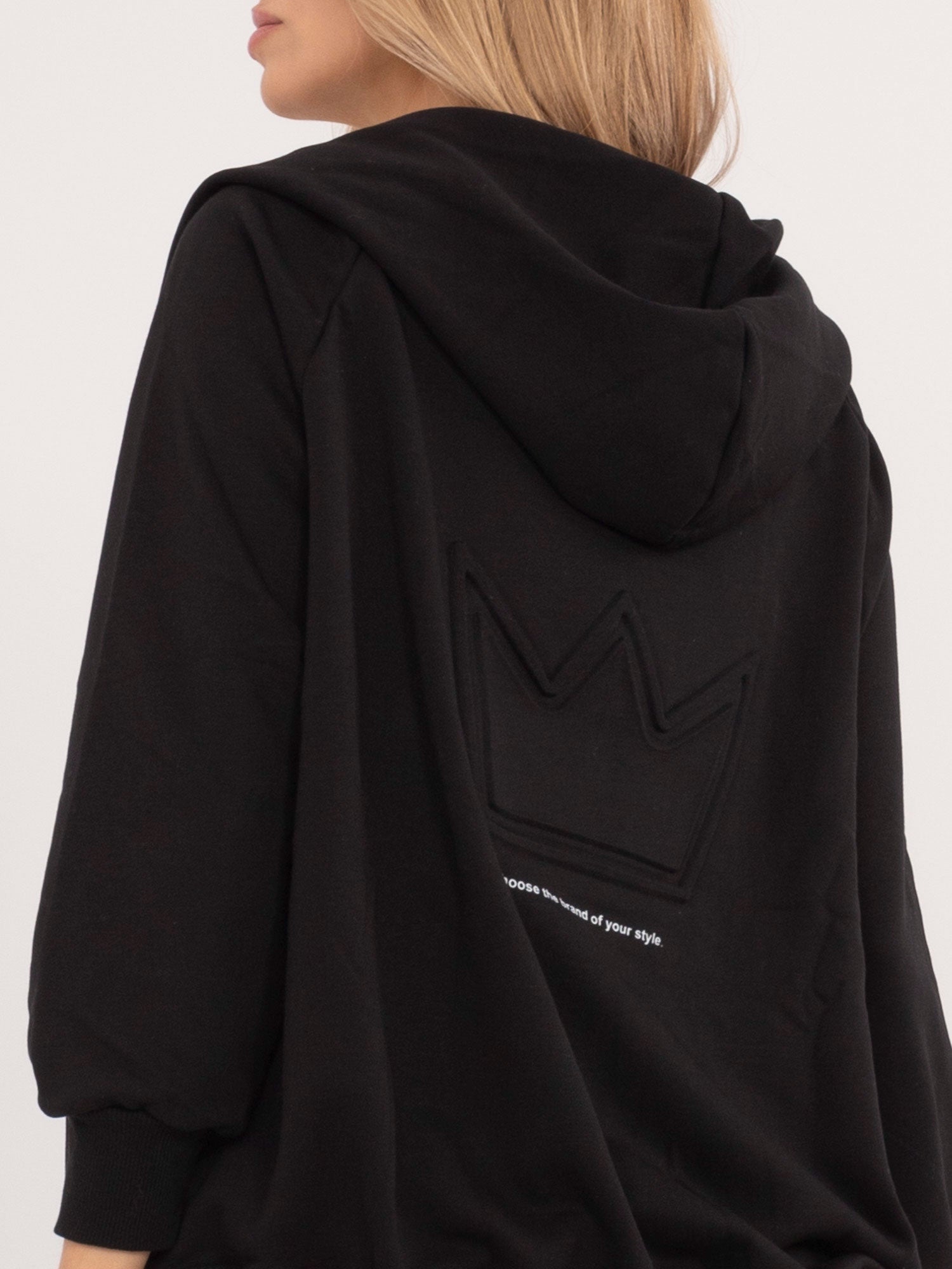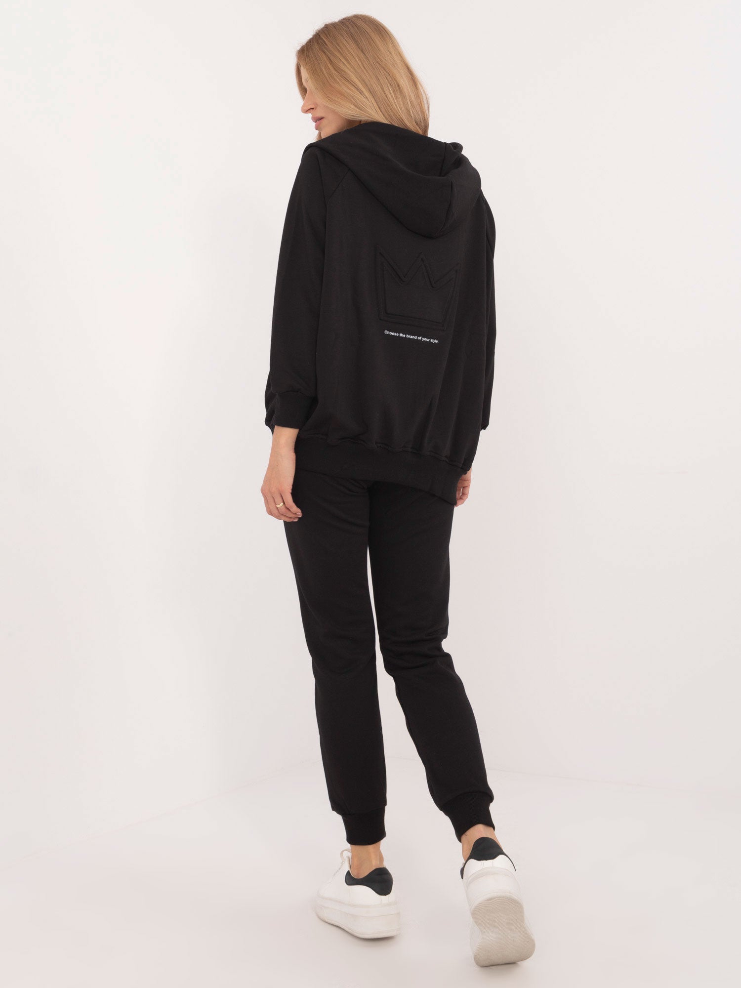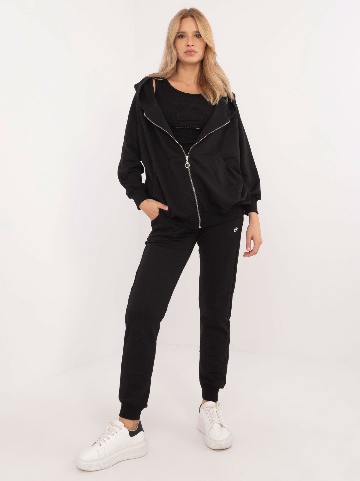 Wymiary kompletu w rozmiarze one size mierzone na płasko: szerokość bluzy pod pachami - 69 cm, długość rękawa - 60 cm, długość bluzy - 67 cm, szerokość topu pod pachami - 38 cm, długość topu - 45 cm, szerokość spodni w pasie - 31 cm, wysokość stanu - 32 cm (na płasko), szerokość spodni w pasie - 44 cm (po rozciągnięciu), długość spodni - 104 cm.