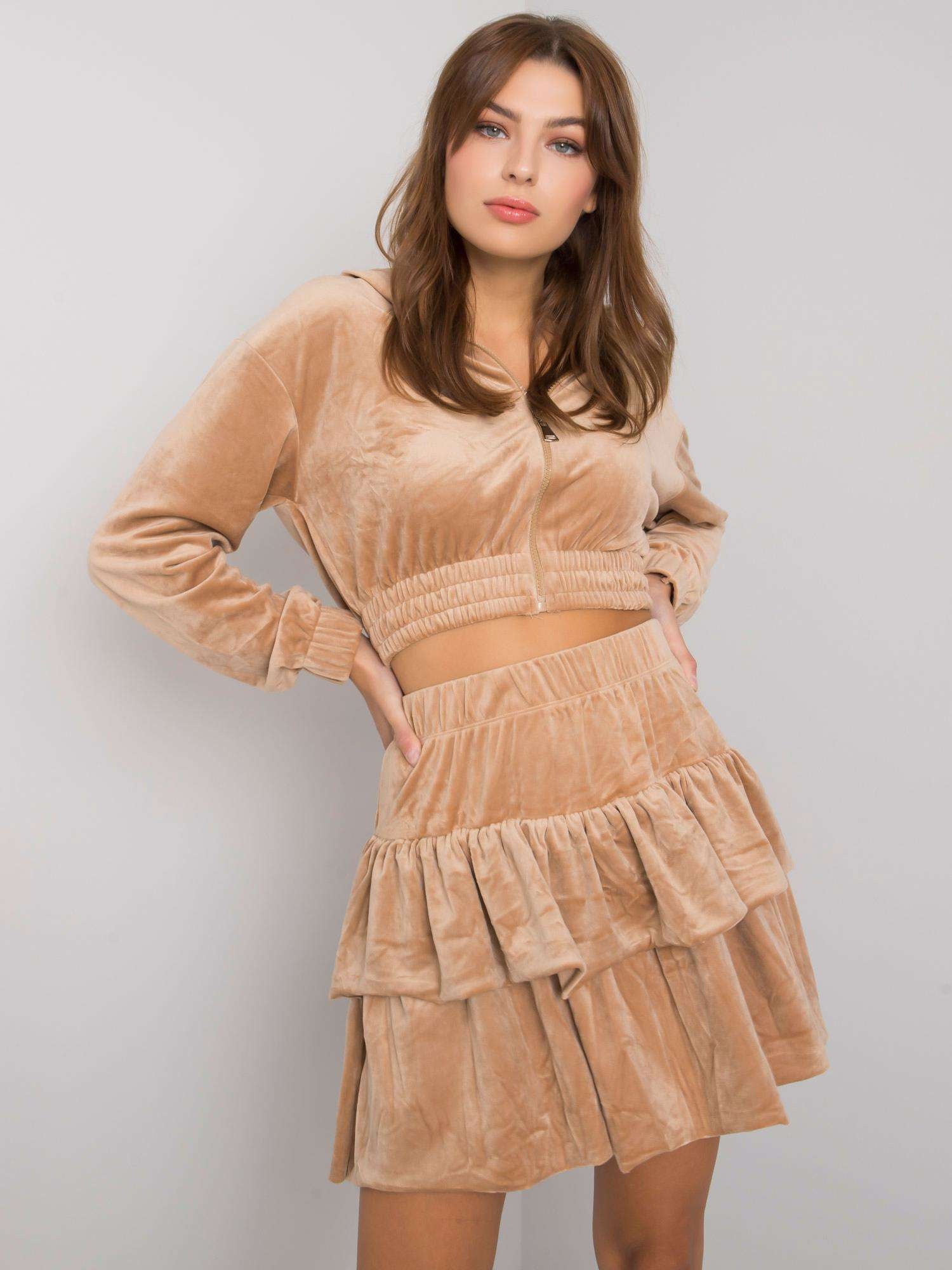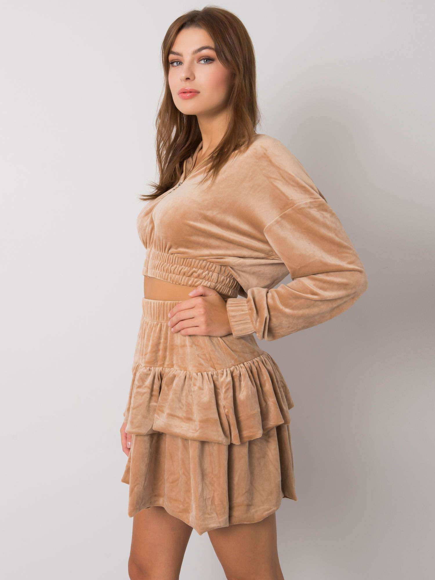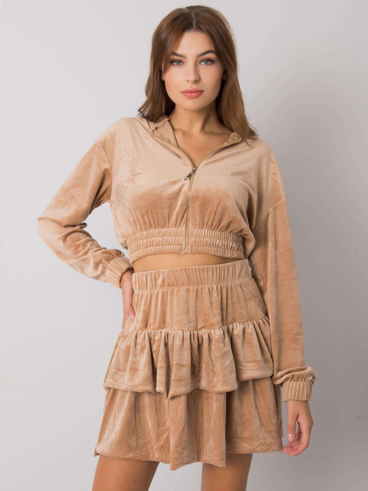 Ciemnobeżowy dwuczęściowy komplet z weluru.